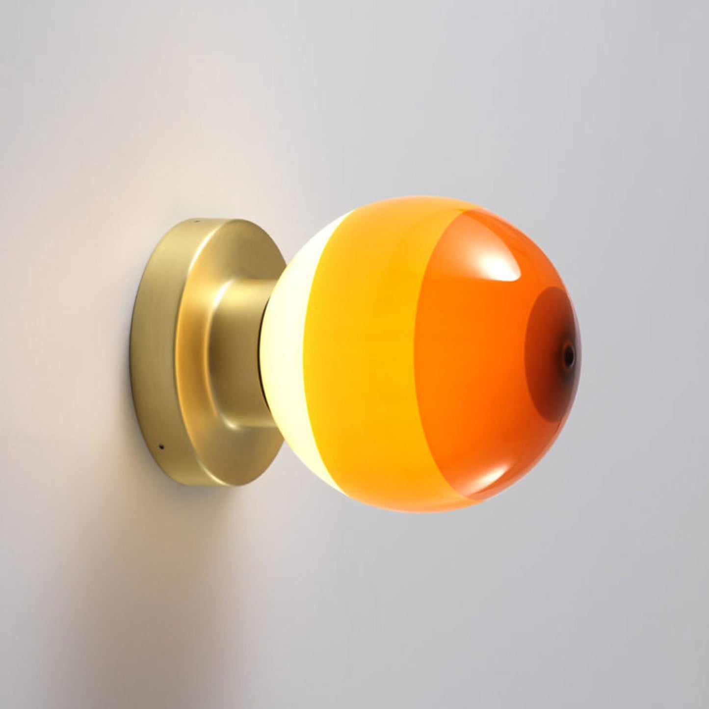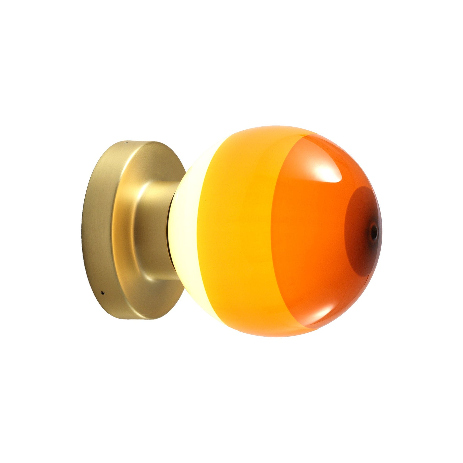 A charming motif conforming to basic geometric principles, the Dipping Light A2 LED Wall Light from Marset dots walls and hallways with whimsical yet artistic personality. Embrace the indulgent casual inspiration of a sconce-like fixture blending a rectangular metal wall mount with a glass globe shade decked out with gradient color shading that embellish lighting effects when lit and a tasteful palette when off.