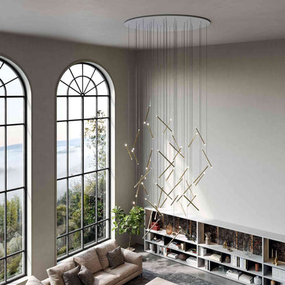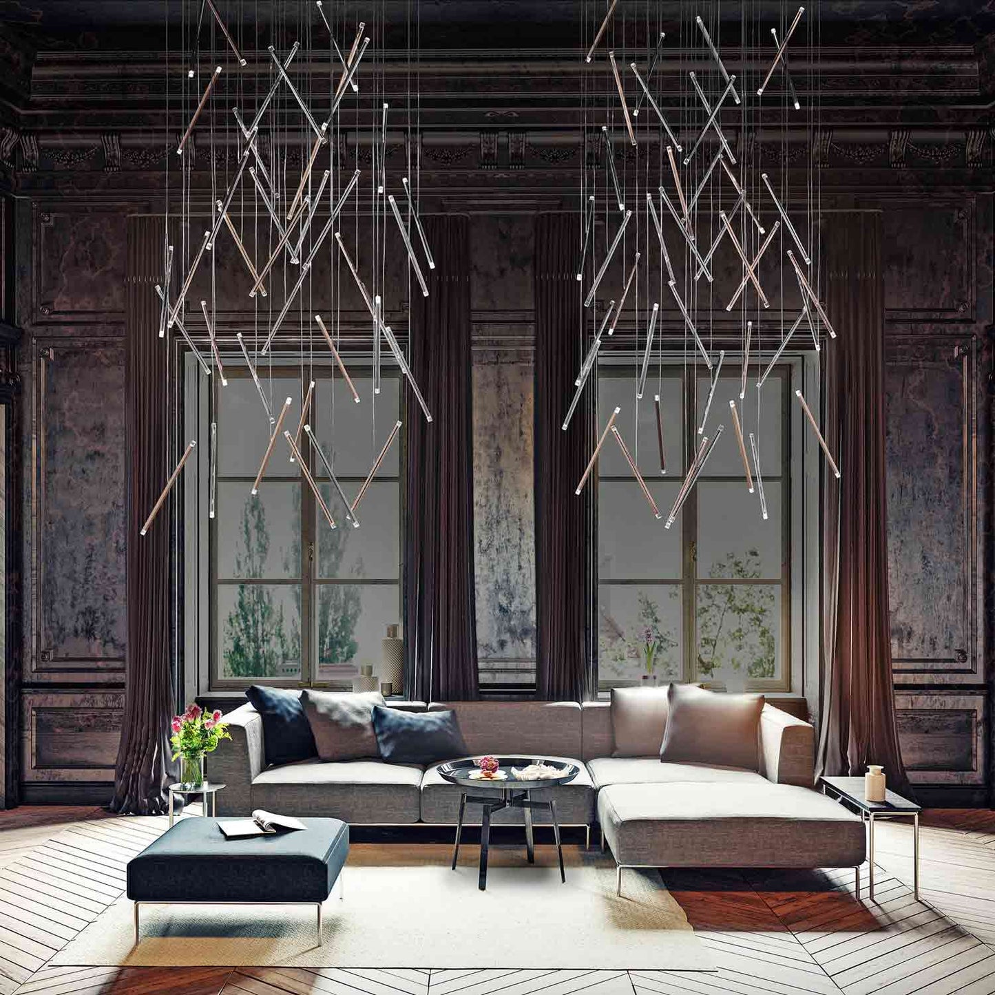 The A-Tube Nano Duo LED Pendant Light from LODES experiments with geometry and asymmetry, delivering a silhouette reminiscent of a tipped baton. This energy-efficient fixture features a lightweight build with a low-impact approach to high-impact interior design.