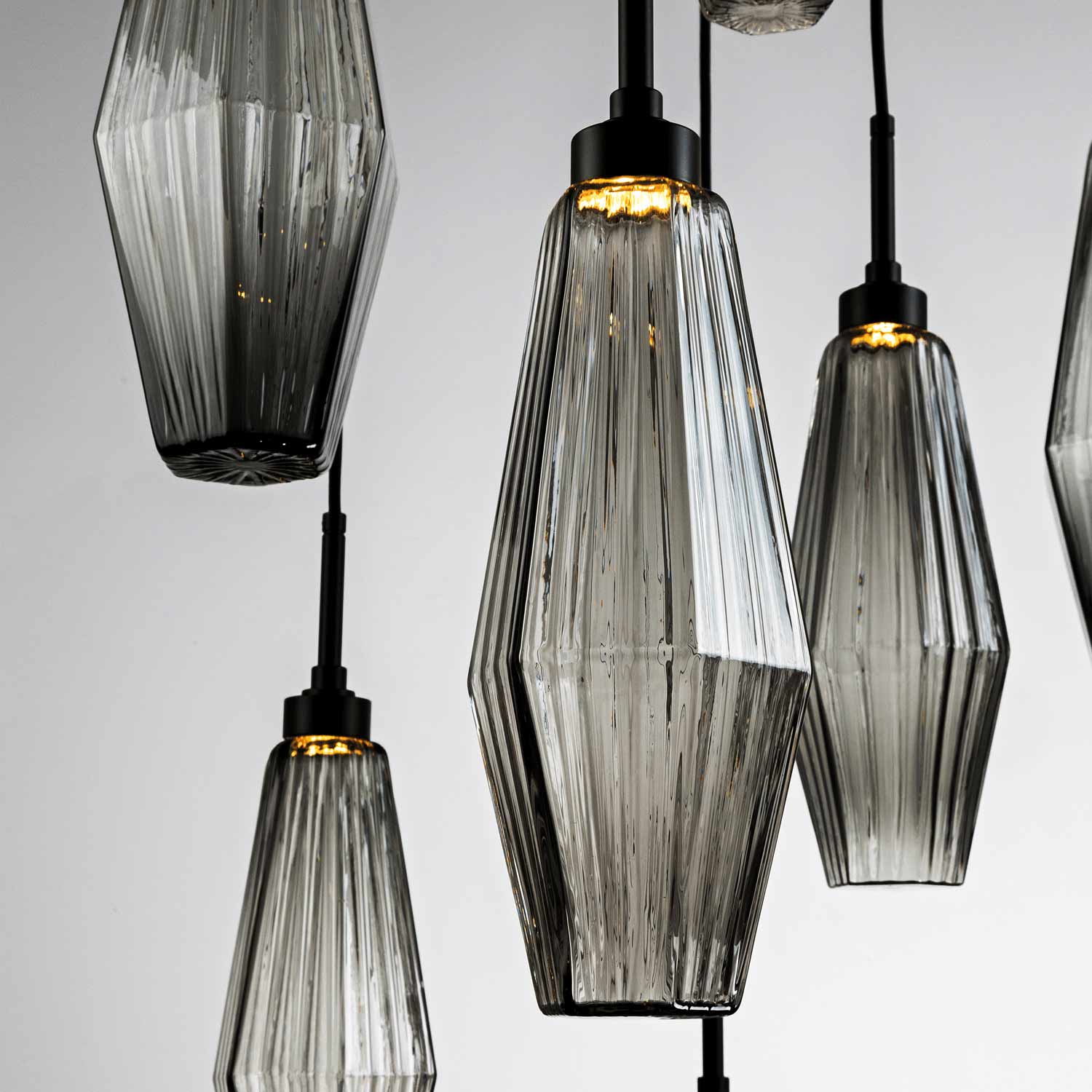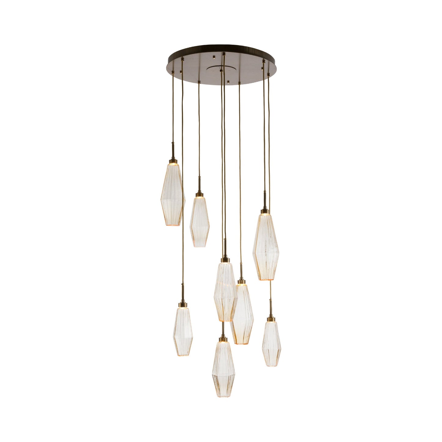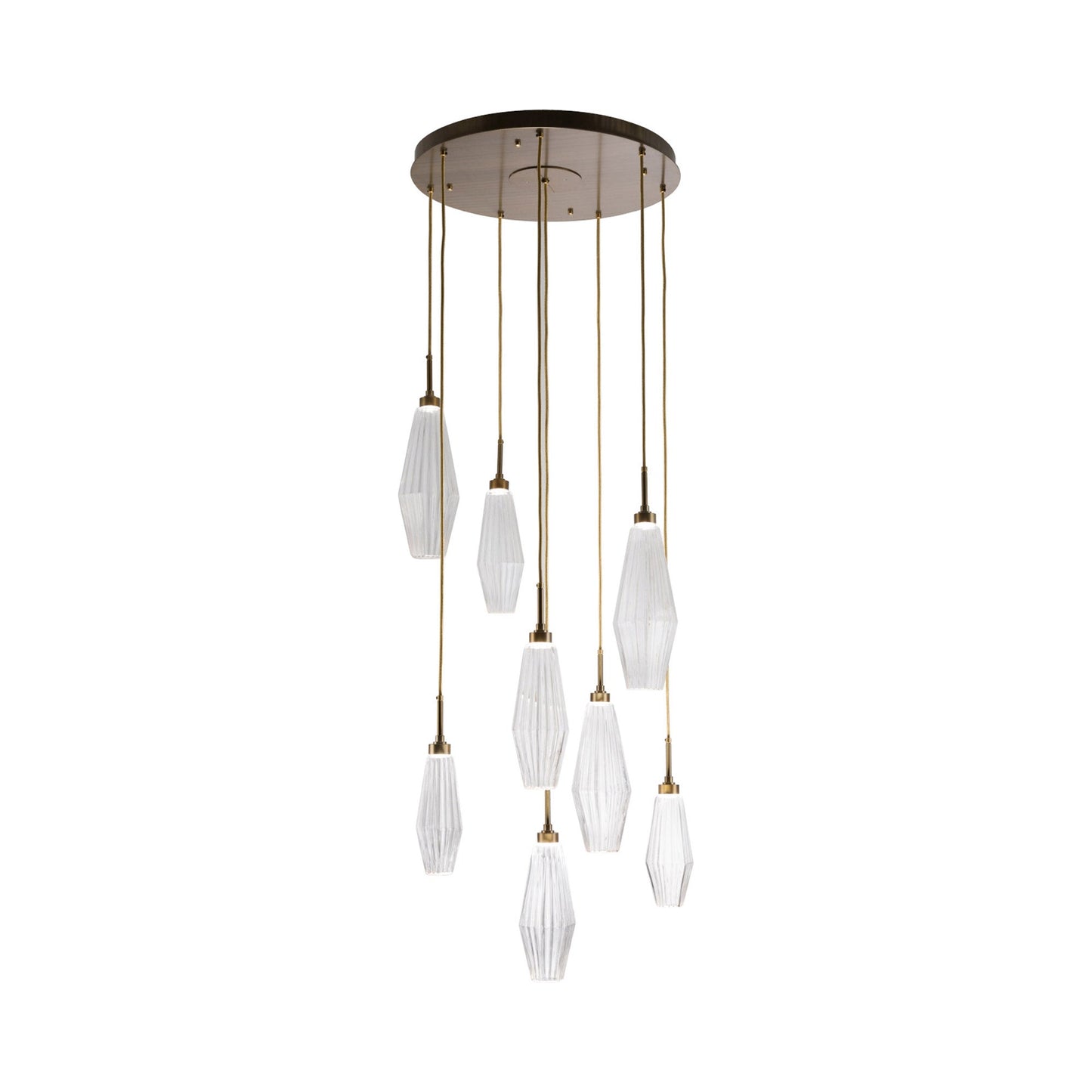 An artistic delicacy brings together ribbed, hand-blown glass shades and a sophisticated round canopy, forming the Aalto Round Grande LED Multi Light Pendant Light from Hammerton Studio. Deliver energy-efficient, ambient lighting in a contemporary space, adding an eye to glam gallery inspiration and an asymmetry in suspended lights with a soft glow.