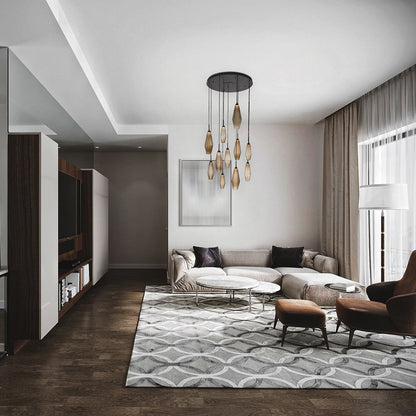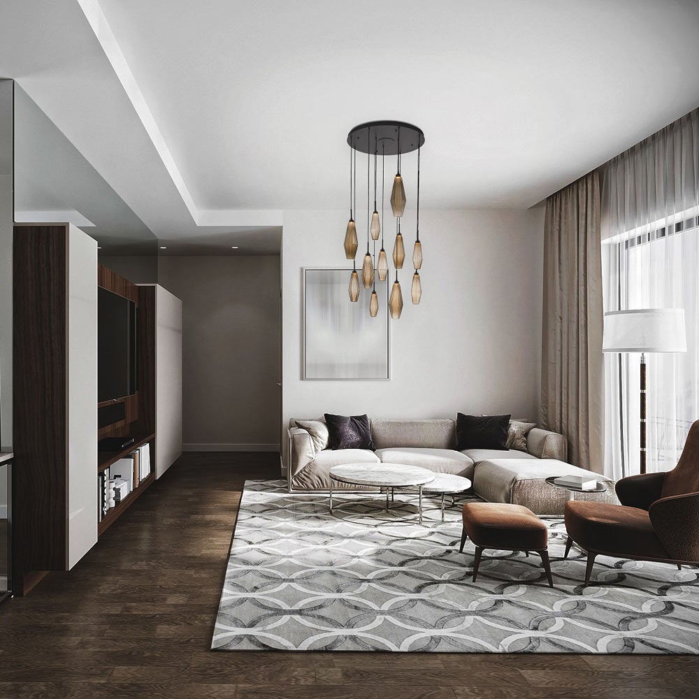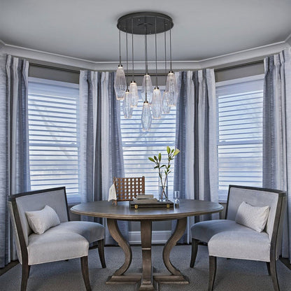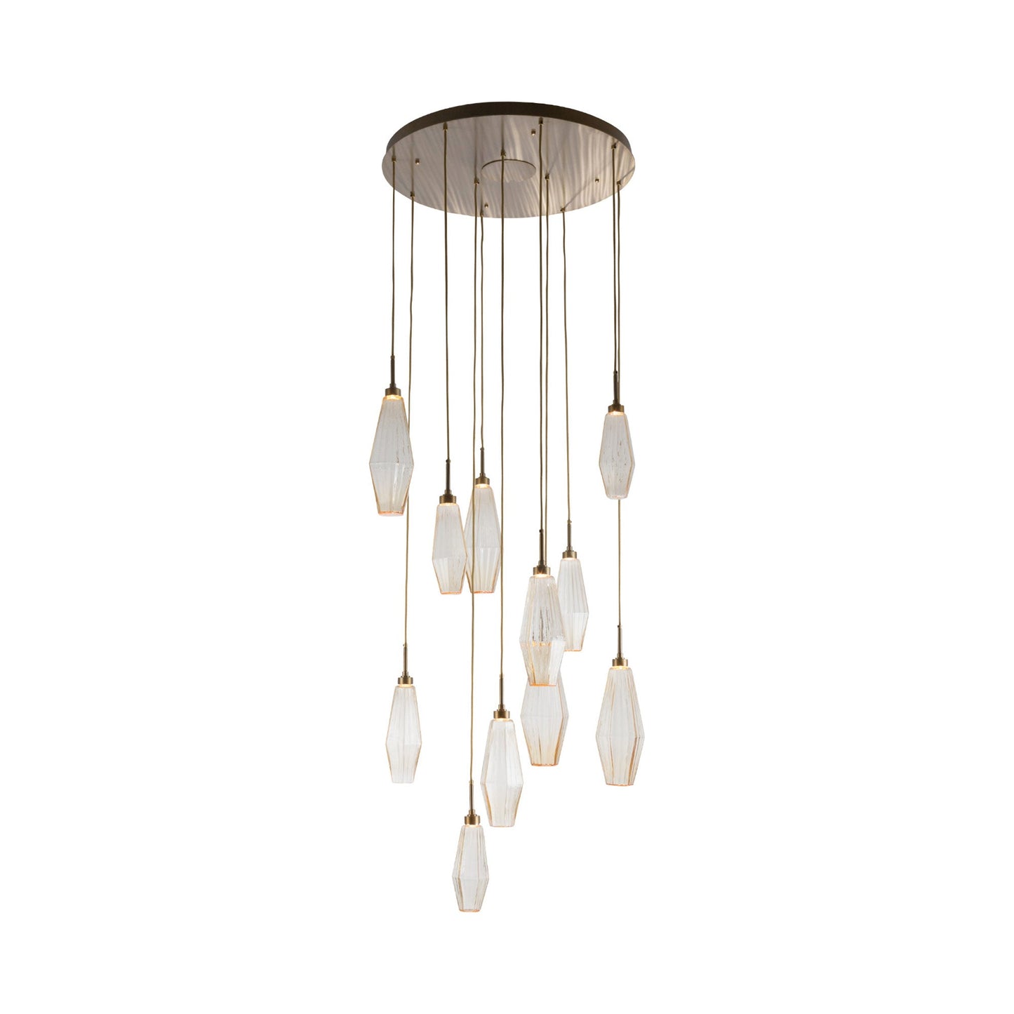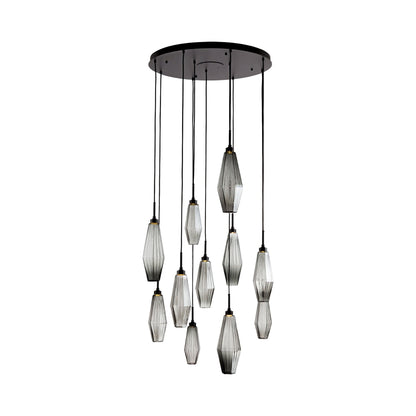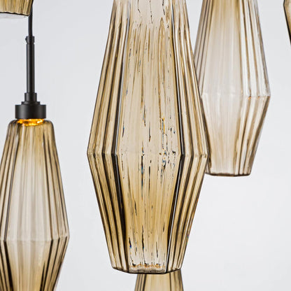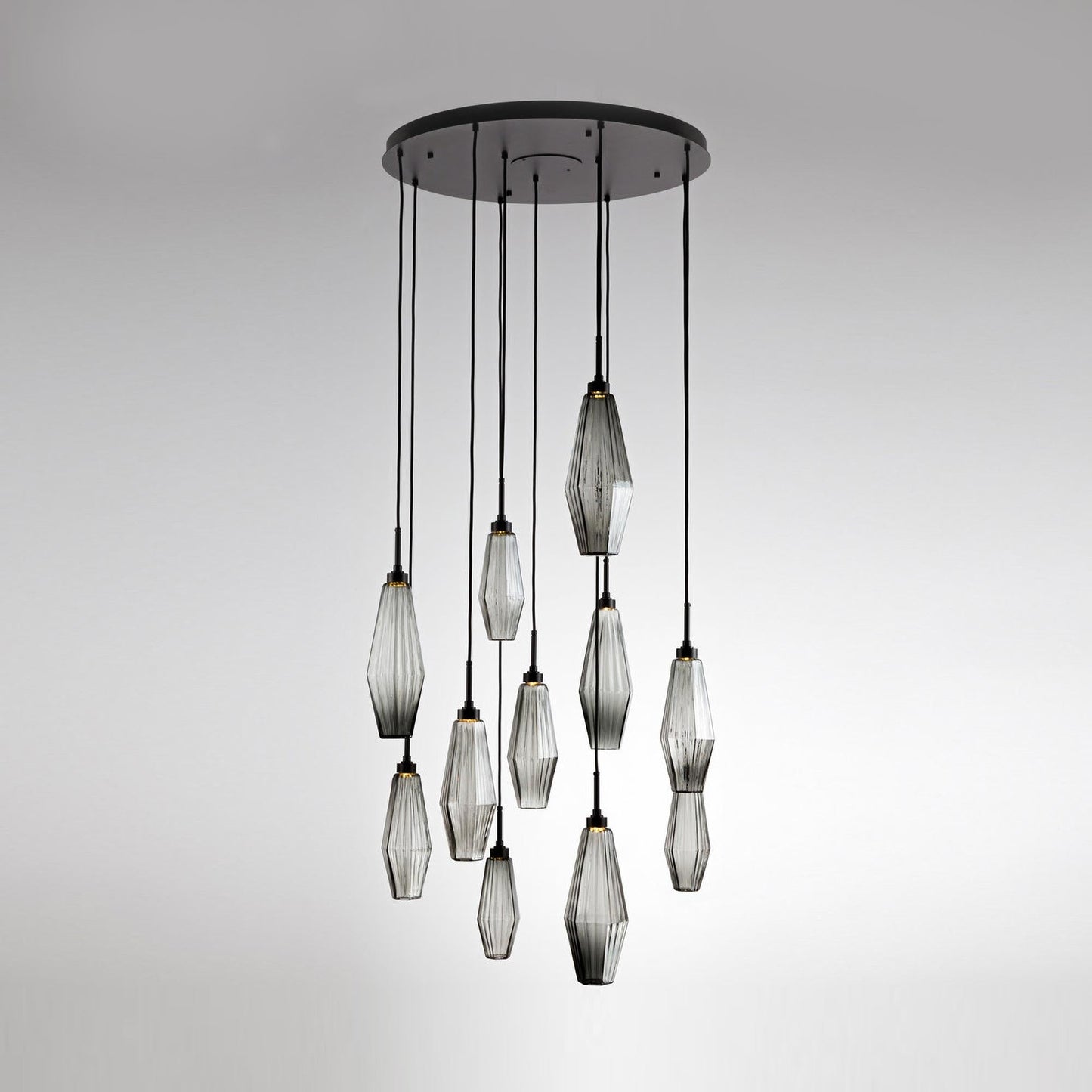 An artistic delicacy brings together ribbed, hand-blown glass shades and a sophisticated round canopy, forming the Aalto Round Grande LED Multi Light Pendant Light from Hammerton Studio. Deliver energy-efficient, ambient lighting in a contemporary space, adding an eye to glam gallery inspiration and an asymmetry in suspended lights with a soft glow.