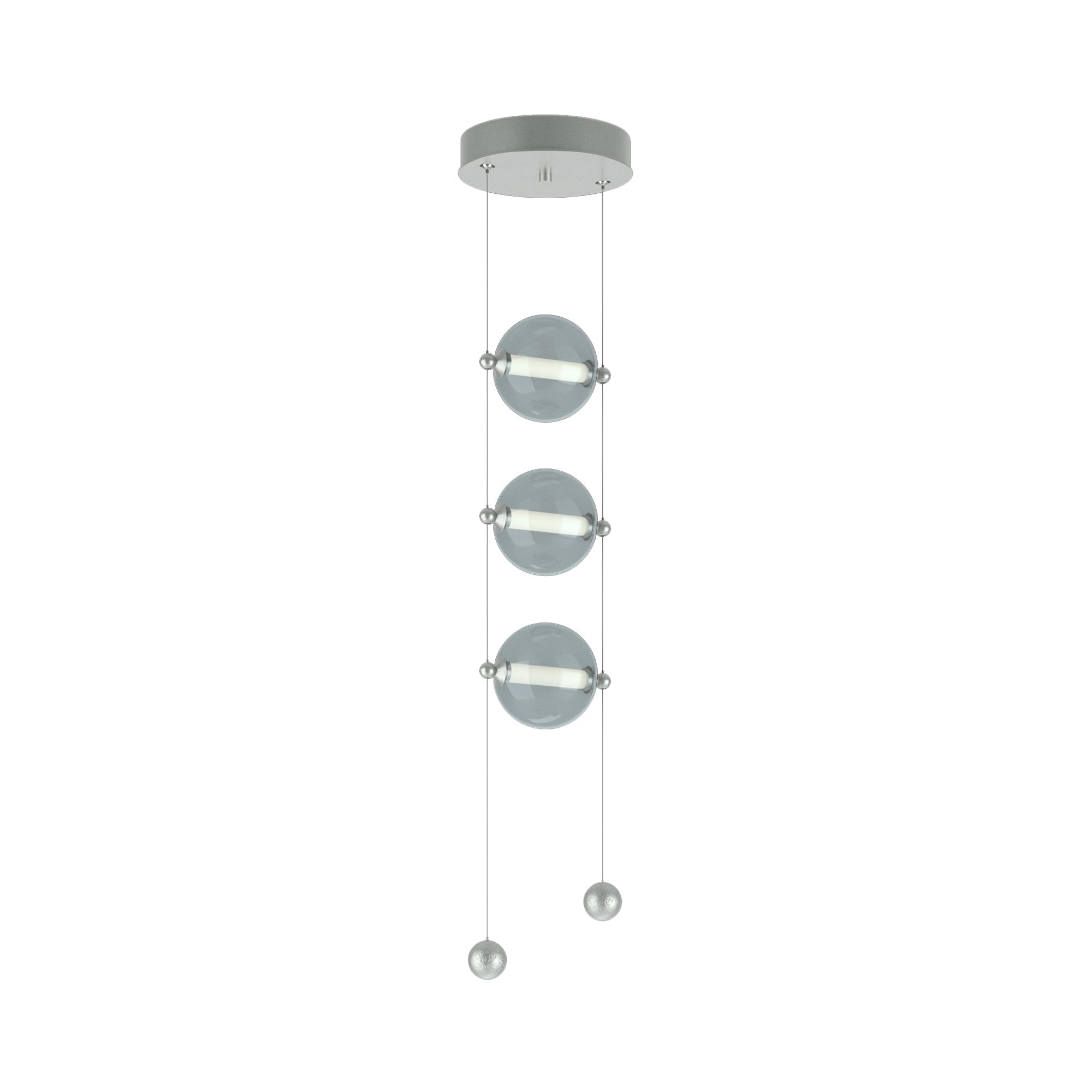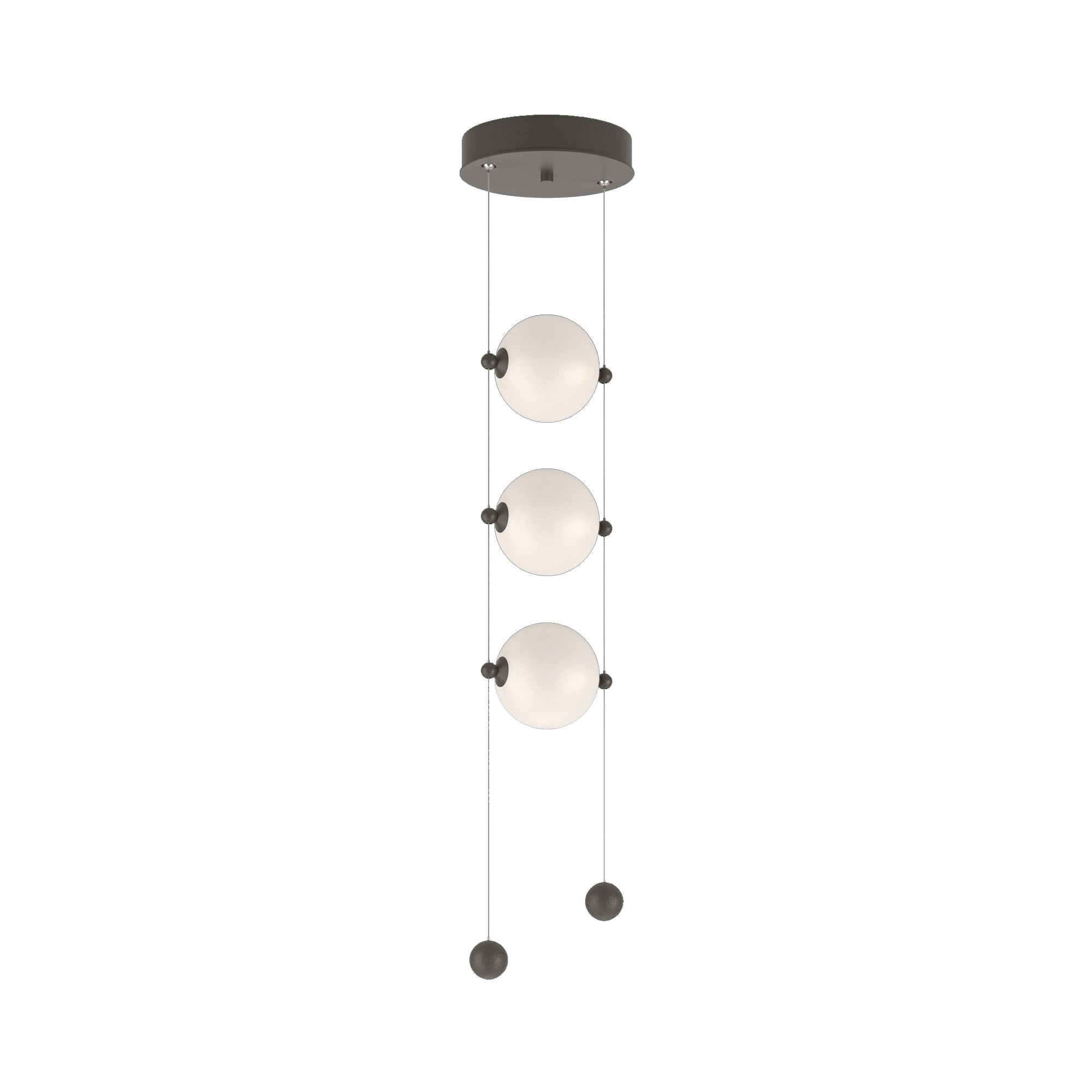 Captivating in its clever design, the Abacus 3-Light LED Pendant Light from Hubbardton Forge fulfills a quest for retro inspiration and simplicity wrapped up into a single light fixture. Industrial vibes create a festive look in a chic pendant with a diminutive metal canopy and glass globes suspending vertically with slender cables and accents forming an abacus-like motif. This energy-efficient fixture is a superb option for adding a charming look to reading corners and nooks.