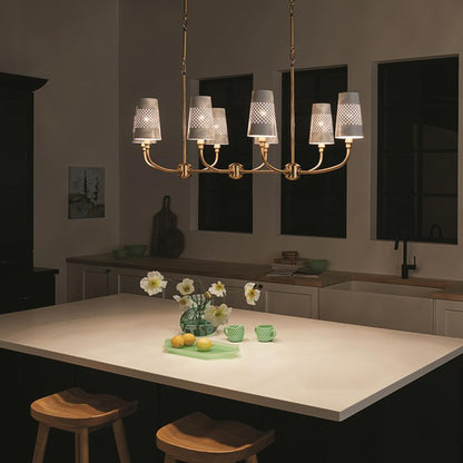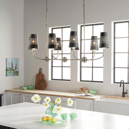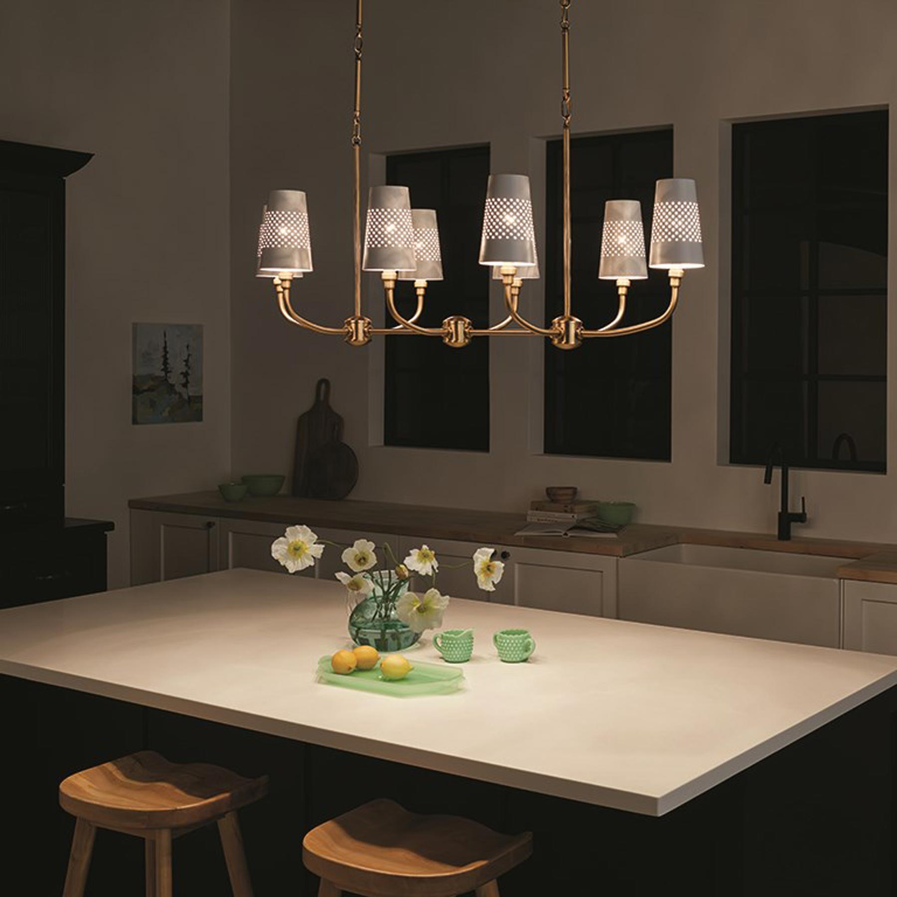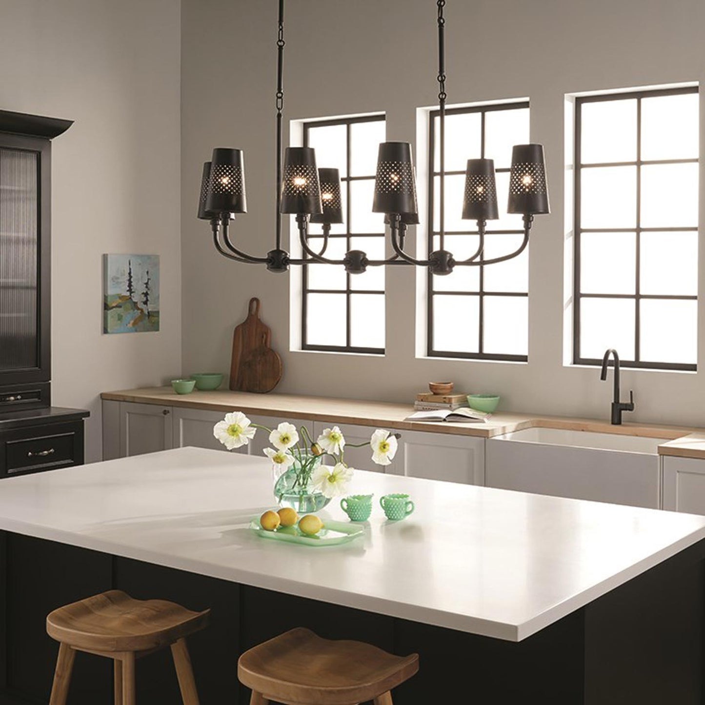 Introduce a sense of drama and modern elegance to your kitchen with the Adeena Linear Pendant Light from Kichler. Light sparkles through metal shades dotted with tiny perforations that create a striking effect. Casual but elegant, this pendant is a stellar focal point for a welcoming kitchen island or dining table.