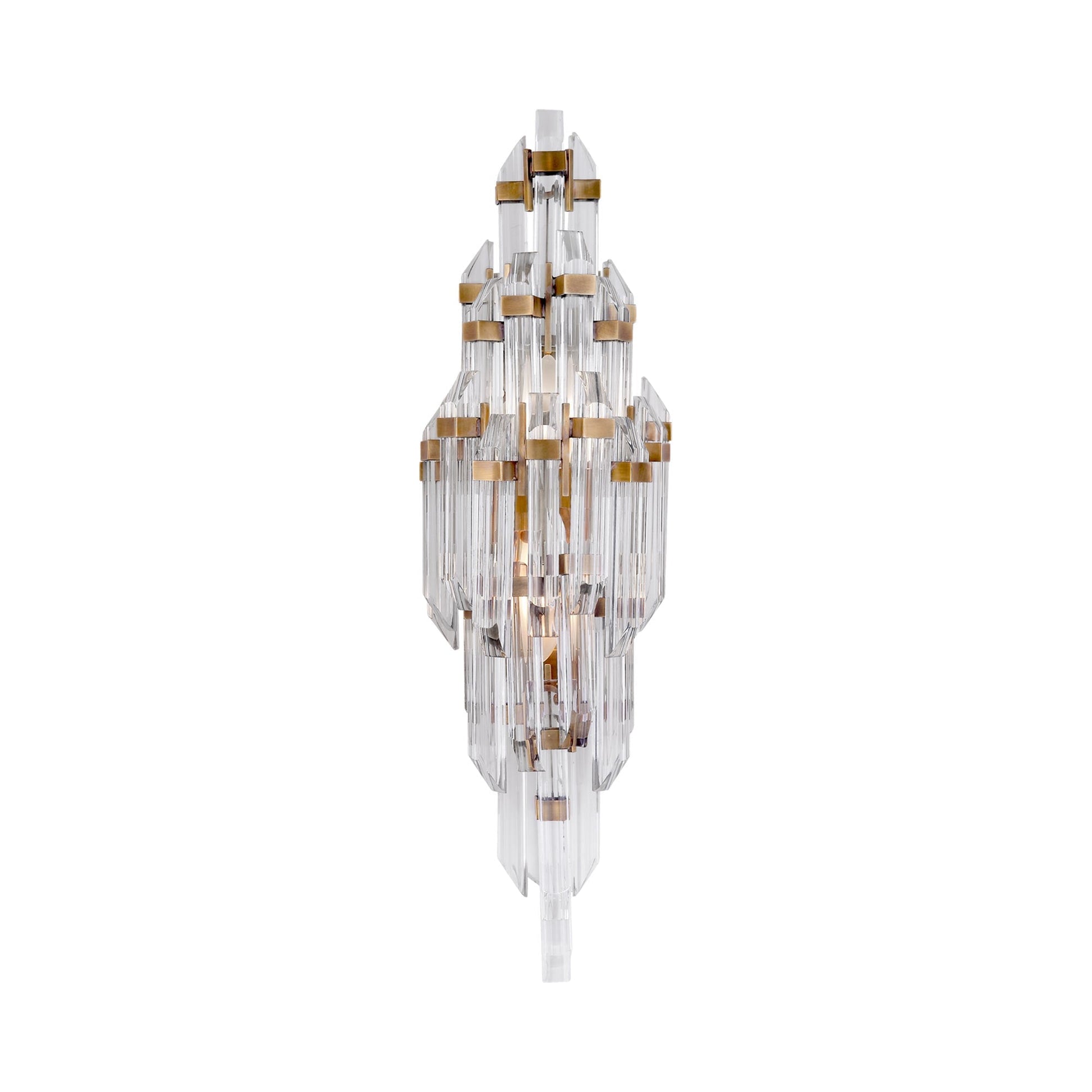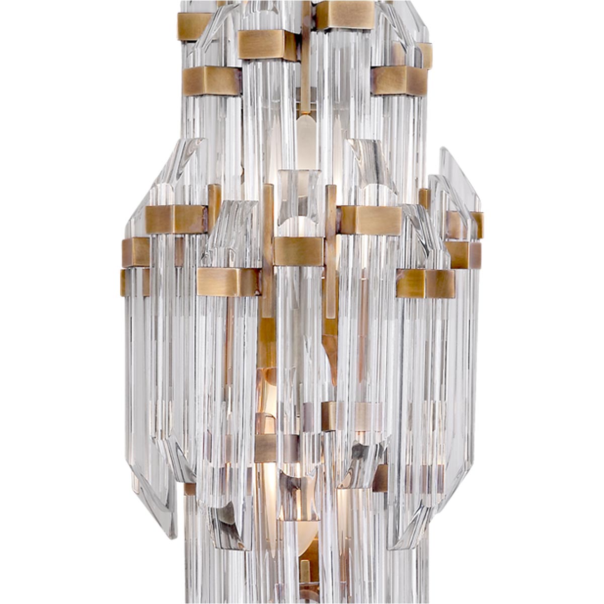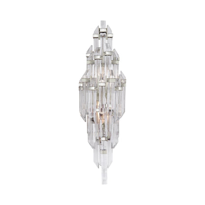 Beautiful elements come together to create this spectacular glamorous, Hollywood Regency style Adele Wall Light from Visual Comfort Signature. Covered in shaved clear acrylic rods held in place by metallic square rings, this contemporary wall light causes quite a stir with its revealing nature and luxe materials.