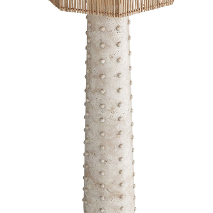 An immediate portion of organic artistry takes hold in a casual space as the Agnes Floor Lamp from Arteriors reflects a chic mushroom silhouette with all natural materials. Its carefree look is both coastal and modern, with an unlined natural coco rib shade and tapered base made of Mactan stone finish resin. Beaded sphere accents add texture to its versatile base, rounding out an earthy aesthetic sure to kick a casual setting into high gear.
