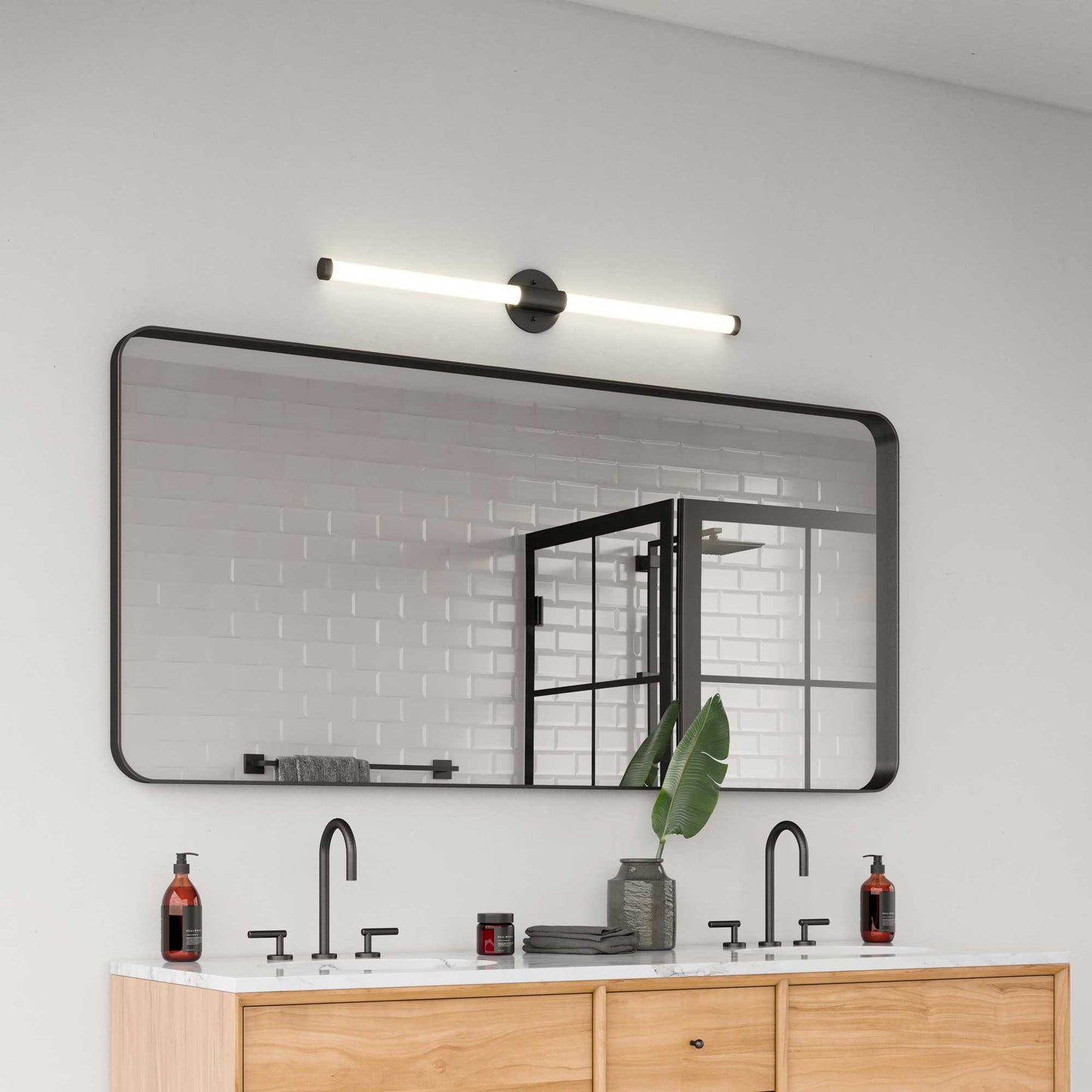 A tasteful nod to simplicity brings solid style with the Akari LED Bath Vanity Light from Kuzco Lighting and a fresh look for modern bathrooms. A powder-coat finish metal frame and frosted acrylic diffuser join to infuse soft, energy-efficient lighting in a casual bath space designed to impress.