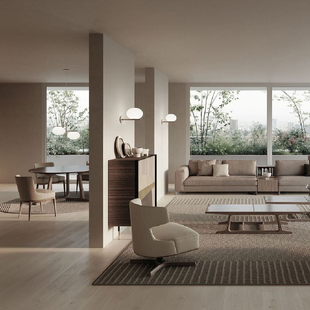 The concept of Alba starts with a very simple element: the designer’s imagination was inspired by a drop of water – which she puts to use in different ways, depending on the model. References to the world of nature, with soft shapes contrasted with square lines, together with the use of a satin brass finish, combine to create Alba, a pendant lamp with a strong visual impact.