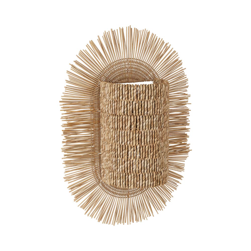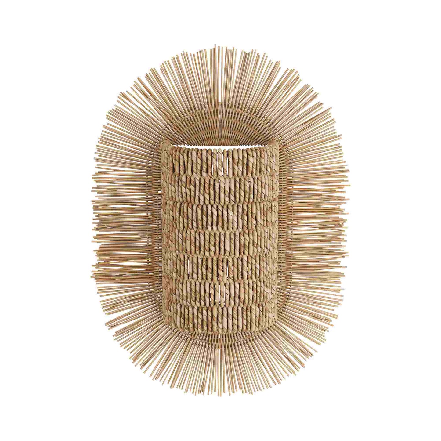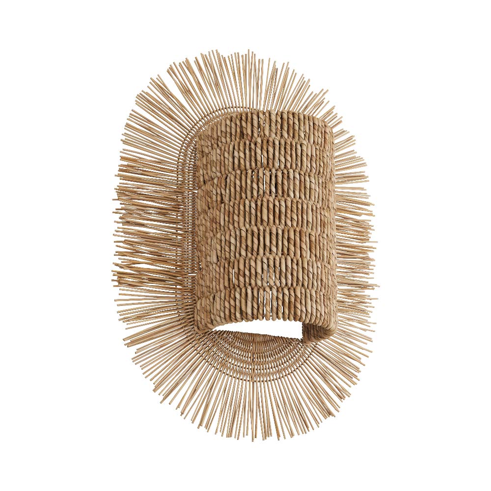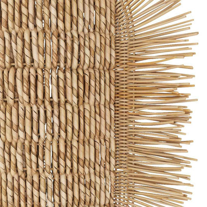 Turn coastal lightness into a festive tropical fixture as the Alexia Wall Light from Arteriors simplifies the inherent charm of nature. Backed with a sunburst-inspired array of fringe, this fixture features a cylinder shade fashioned of rattan woven coco rib and natural abaca.