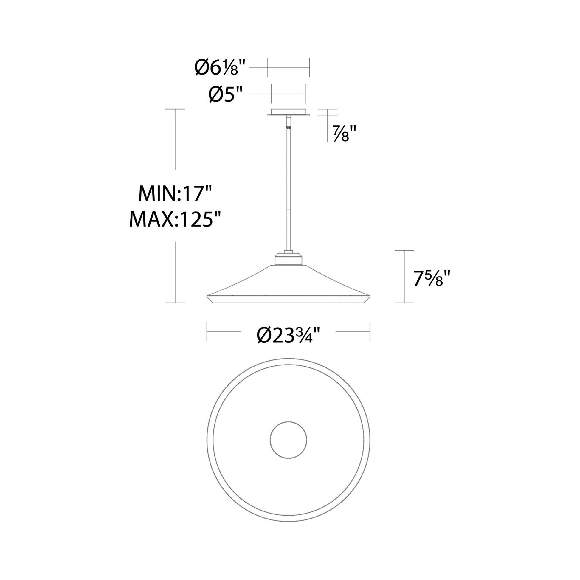 - Dimensions: 23.75"D X 7.63"H; 125" max height