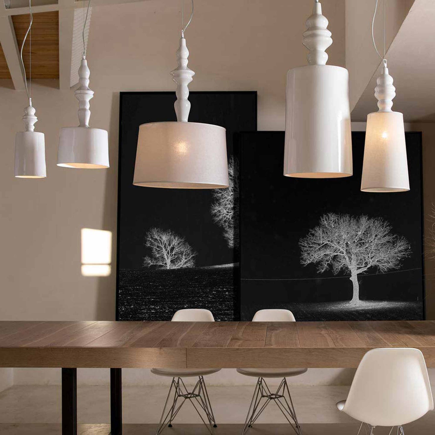 Stacked sculptural elements secure the cylindrical Ali' E Baba Pendant Light from Karman, lending an eye-catching lighting piece for kitchen islands and gathering spaces. Hang a series of these contemporary pendant lights in a room for a dramatic, clean ensemble for an understated appearance.