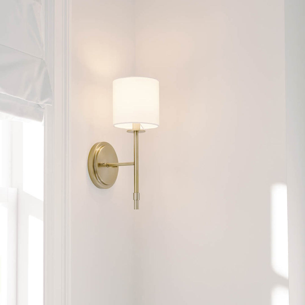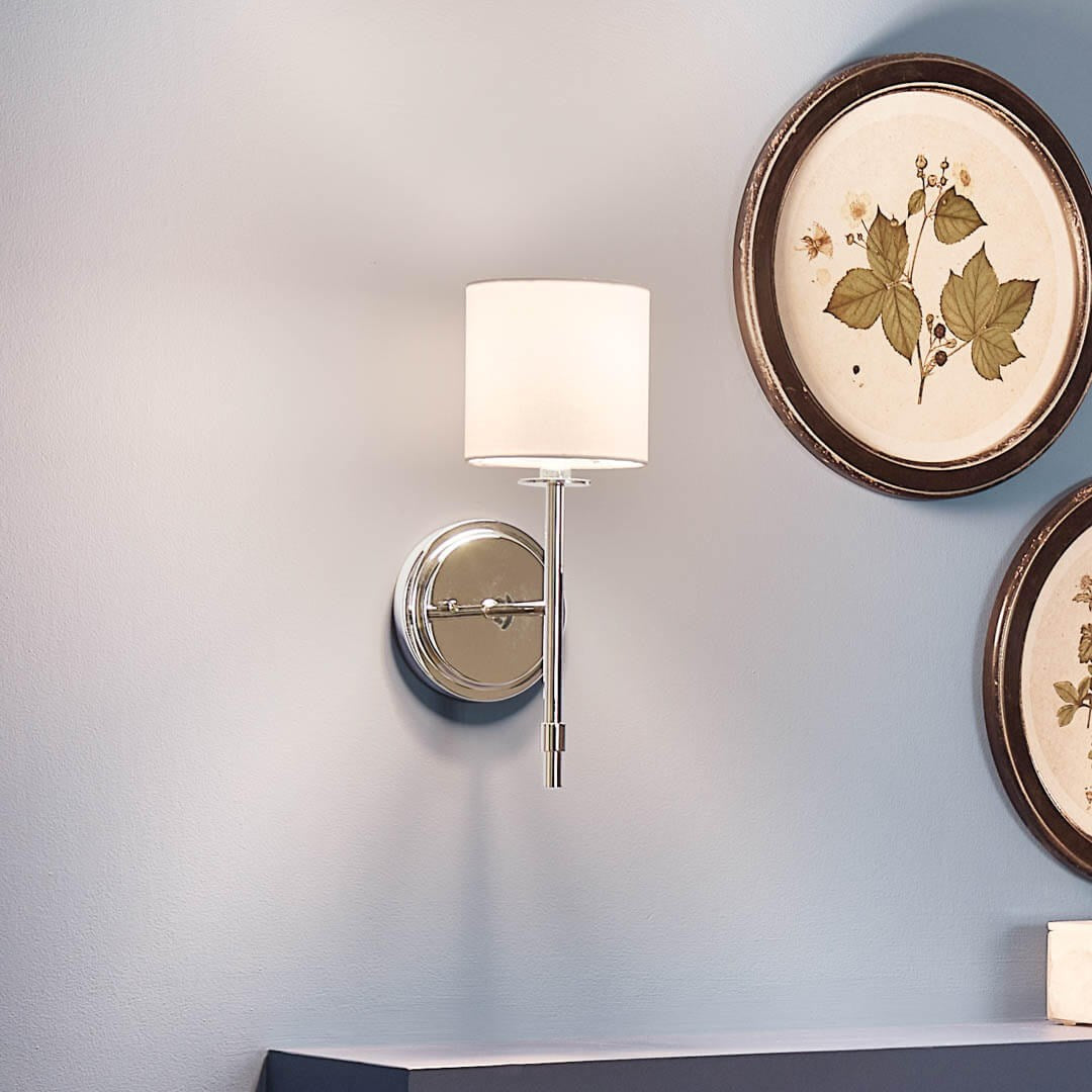 Infused with casual elegance, the Ali Wall Light from Kichler is right at home in a variety of spaces, from your entry to a master suite. Its torch-like silhouette is capped with a fabric drum shade to bring bright, diffused illumination that's perfect for both ambiance and daily tasks.