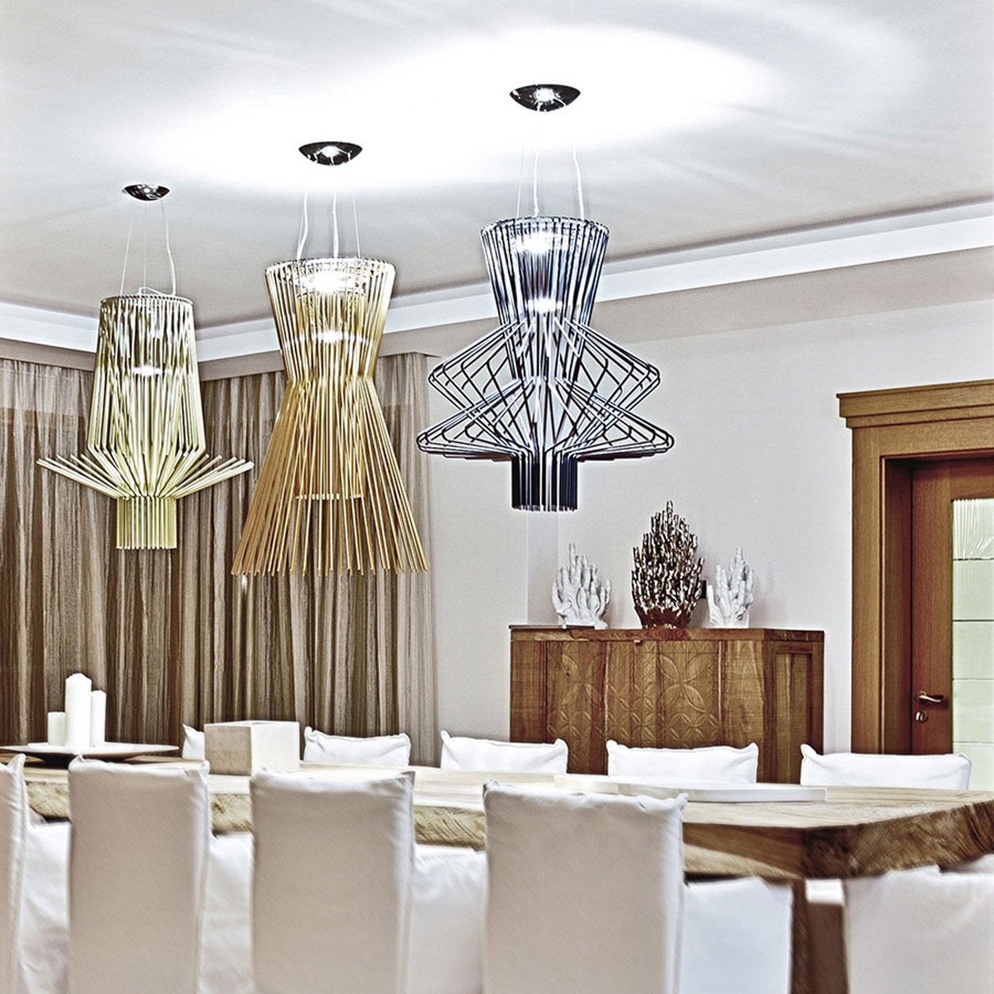 | Foscarini prizes freedom in design and imbues each of its pieces with a distinctly Italian flair. Foscarini prioritizes sustainable manufacturing, and its collaborations with international designers produce lights that bring beauty and stir emotions. Free your mind, your style, and your room with inventive suspension lamps, floor and table lamps, and more from Foscarini that City Lights will show you. |