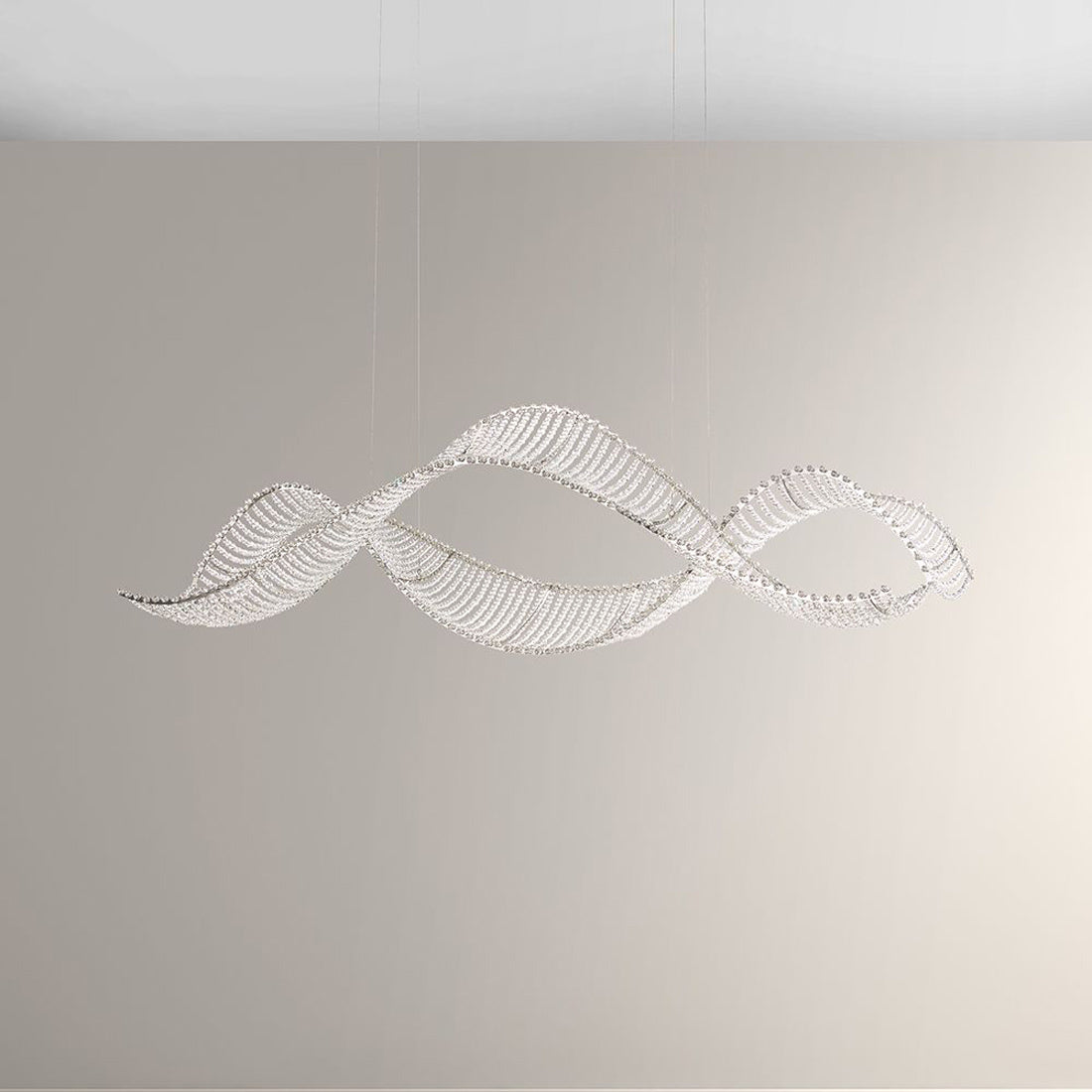 Follow the spiraling silhouette of an ethereal design as it becomes a focal point in interior lighting. The Alon LED Linear Pendant Light from Schonbek breaks the rules of conventional styling with a ribbon-like frame made of stainless steel finish metal, creating a ladder-inspired look with slender grids and delivering artistry and energy-efficient lighting with sculptural elegance.