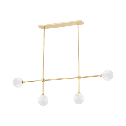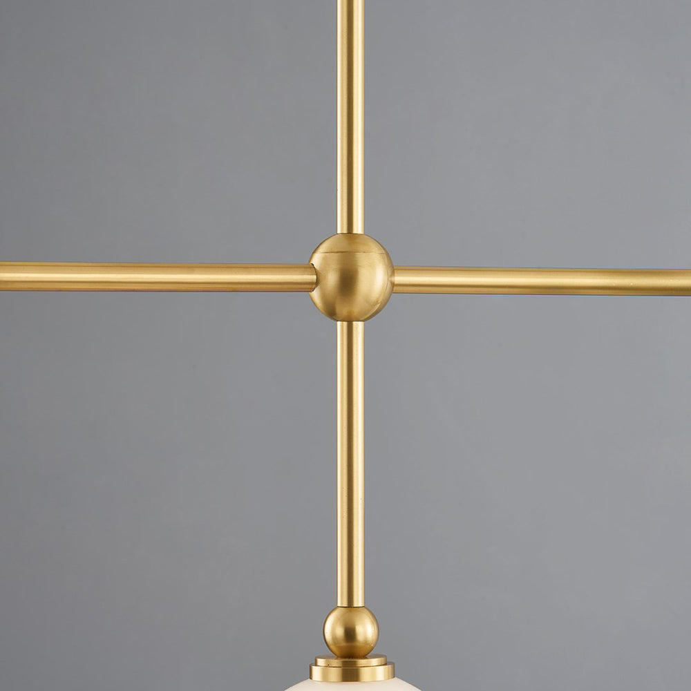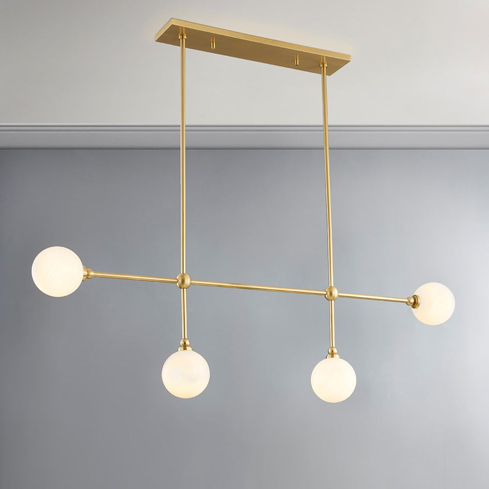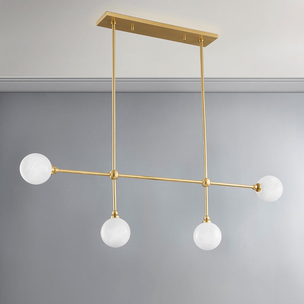 The simplicity of perpendicular linear styling is upended with glam construction materials, offering a striking modern look in lighting. The Andrews Linear Pendant Light from Hudson Valley Lighting chooses a minimalist vibe to fashion a fabulous upscale impact with aged brass finish framing and delicate white opal glass spherical shades. Energy efficiency adds another check mark to the festive feel of this decadent linear pendant.