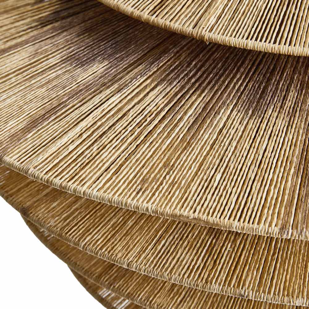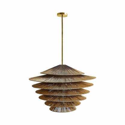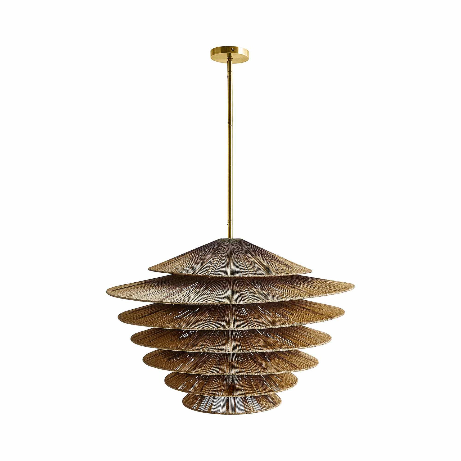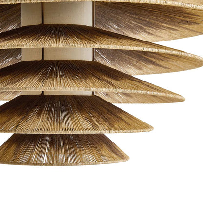 Enticing layers positioned with purpose create a pinecone silhouette as the Andria Pendant Light from Arteriors embraces natural, tropical style. Natural and tobacco-stained raffia weaves into chic hat-shaped tiers aligned vertically as they fashion a striking look. Organic gallery influence with metal framing and a coastal motif delivers no shortage of versatility.