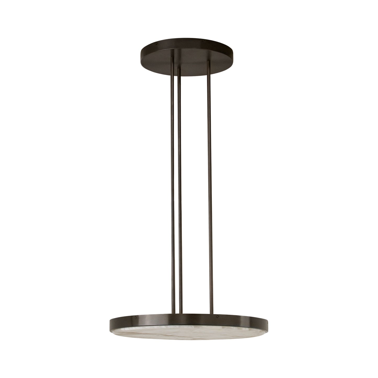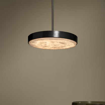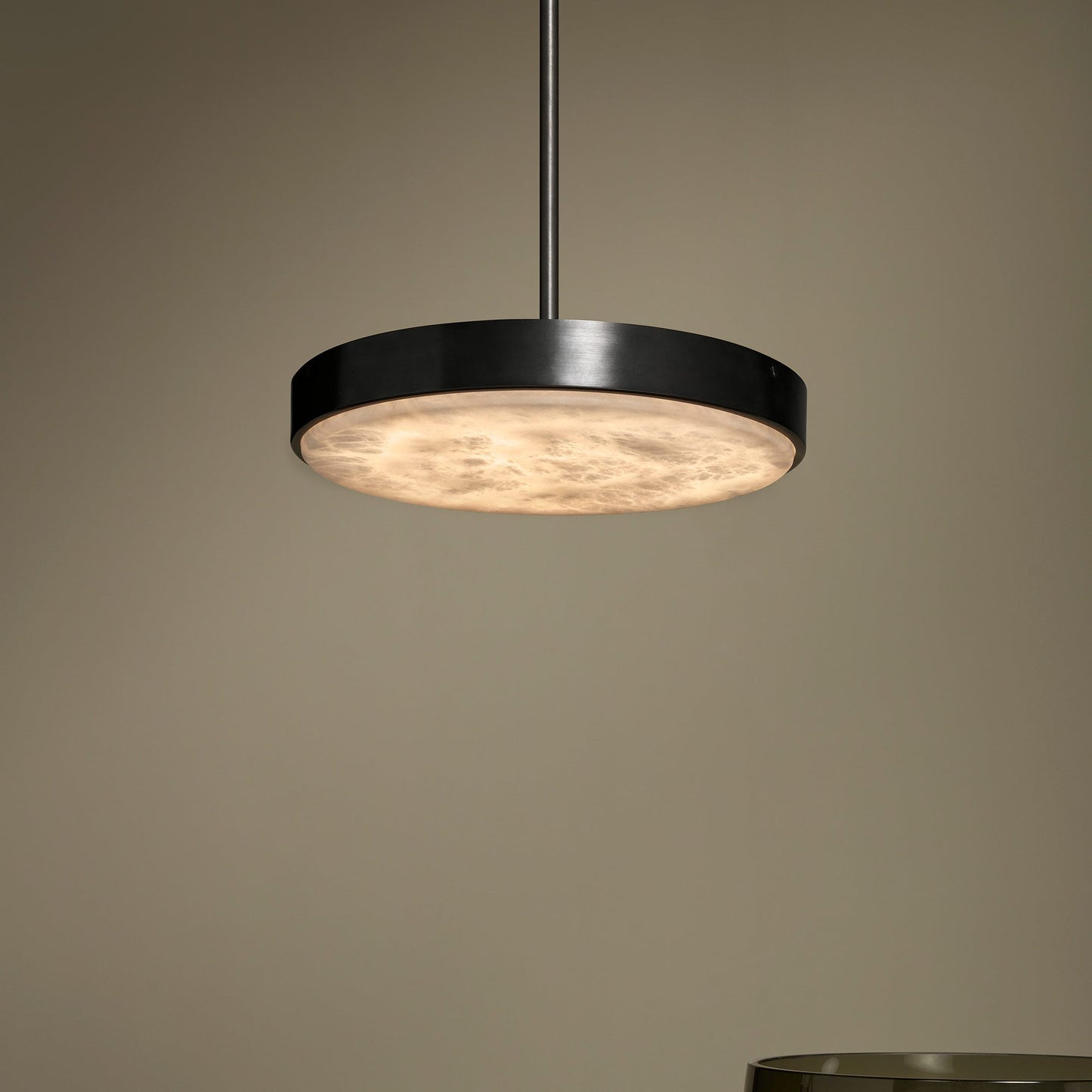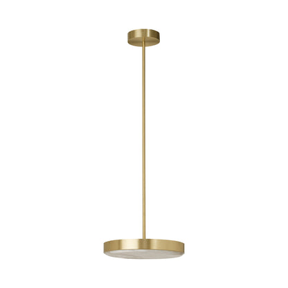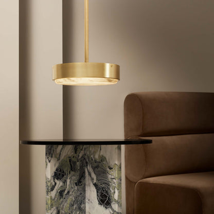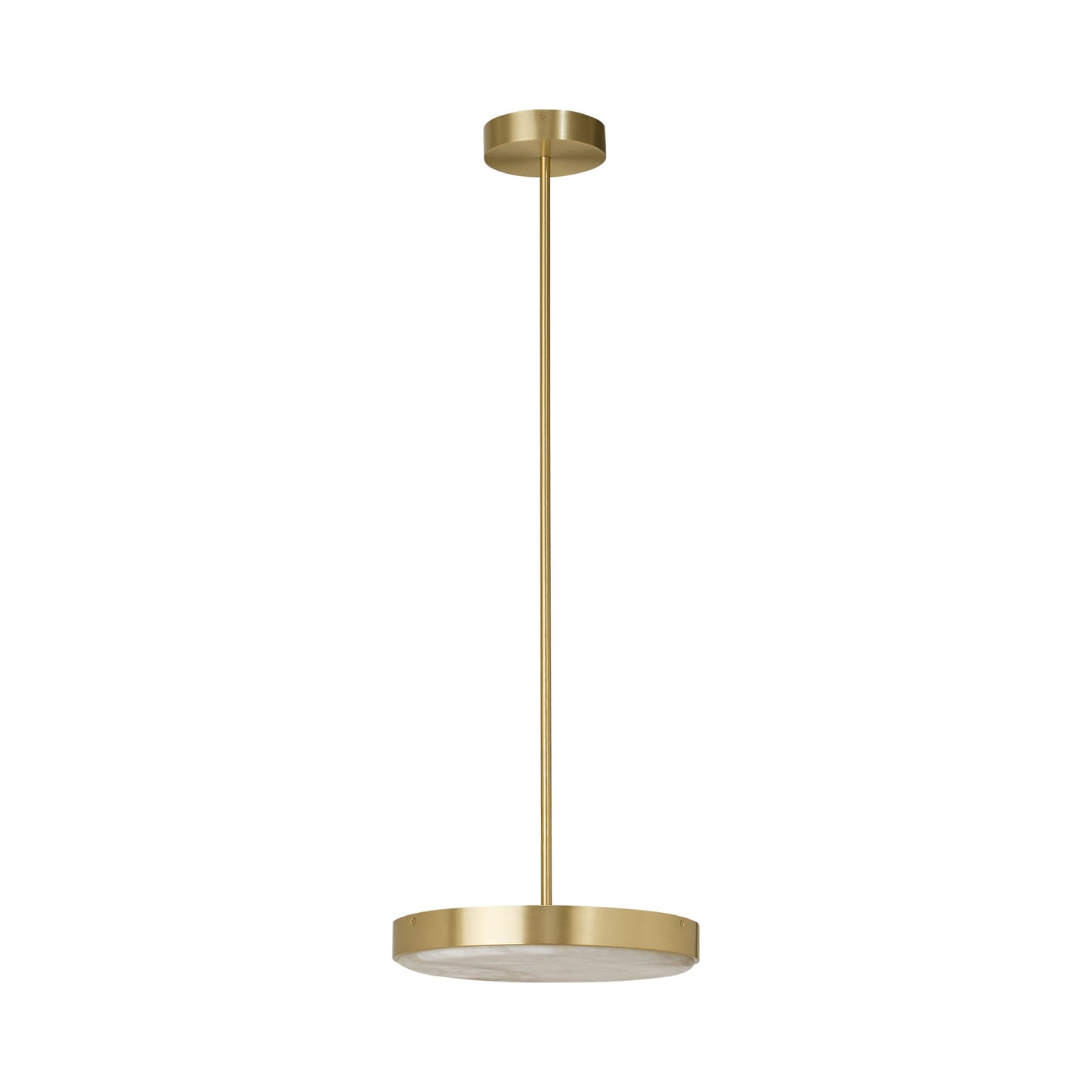 A refined design harnesses the whimsical power of circles in design décor, transforming the Anvers LED Pendant Light from CTO Lighting into a work of livable art for modern spaces. Emitting energy-efficient illumination, its disk-like silhouette blends translucent natural alabaster with solid brass to embody a gallery influence.