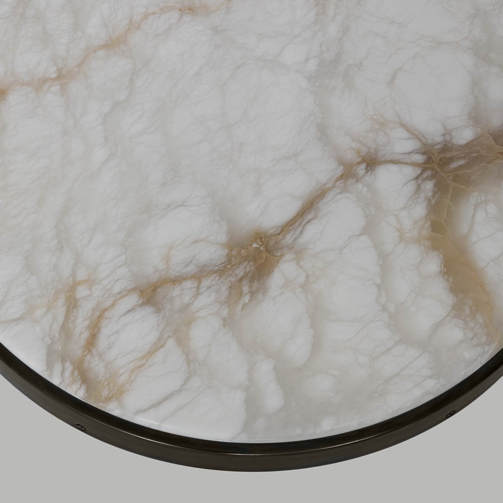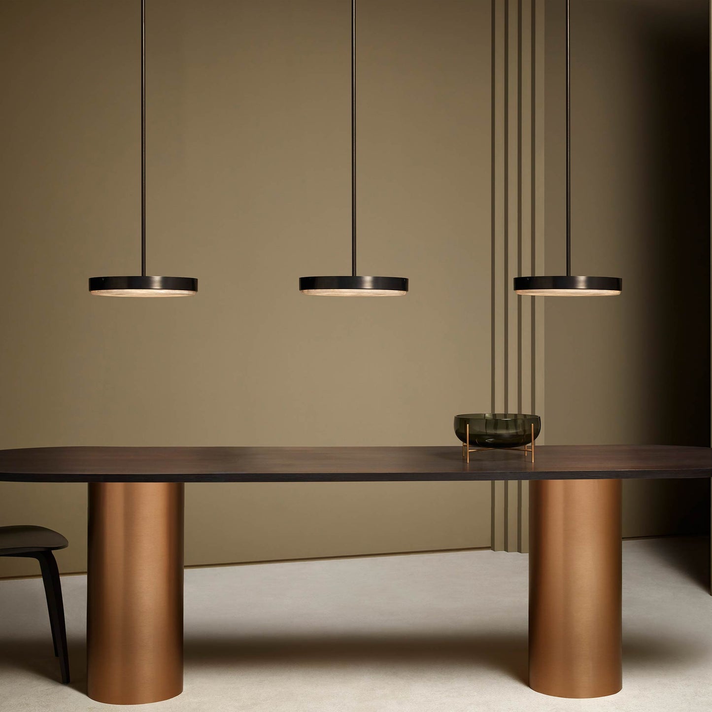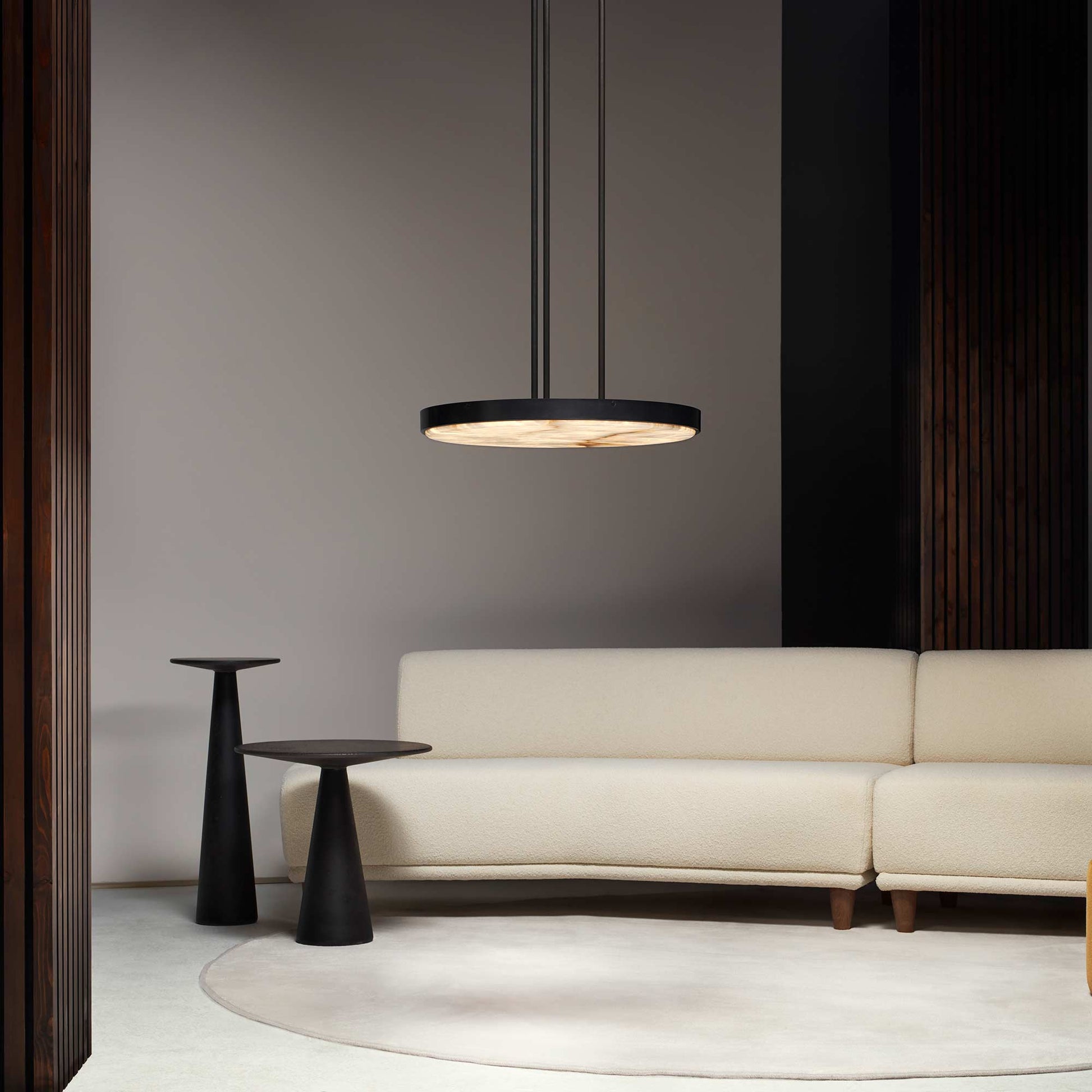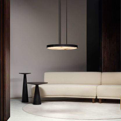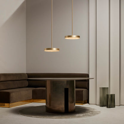 A refined design harnesses the whimsical power of circles in design décor, transforming the Anvers LED Pendant Light from CTO Lighting into a work of livable art for modern spaces. Emitting energy-efficient illumination, its disk-like silhouette blends translucent natural alabaster with solid brass to embody a gallery influence.