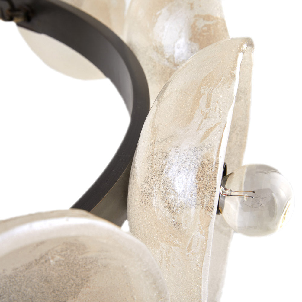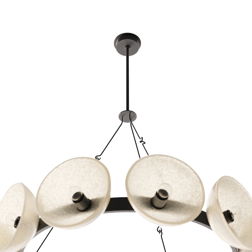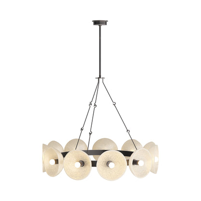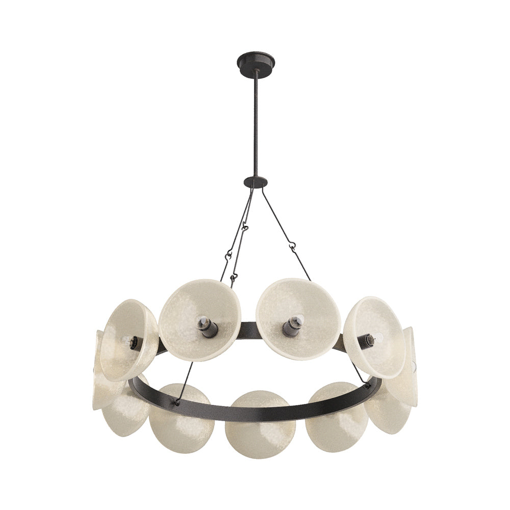 A quirky design greets interior stylists with endless options as the Apollo Chandelier from Arteriors broadens the range of artisan organic flavor possible for light fixtures. Chic seedy slump glass semi-orbs surround luxe bronze finish metal framing, with silhouetting adding proportion and symmetry. This chandelier is a superb choice for illuminating dining ensembles, living rooms, and foyers.