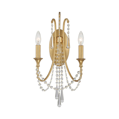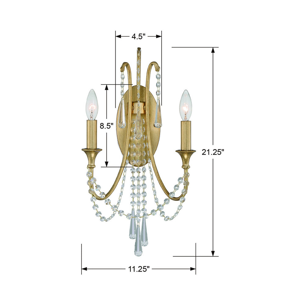 Embellished with artisan and articulated design, the Arcadia Wall Light from Crystorama reflects the best of glam as it colors the impact of lighting. Go for the ultimate look in beauty with a fixture blending gleaming metal and hand-cut crystal strands with drops, all arranged in a symmetrical silhouette.