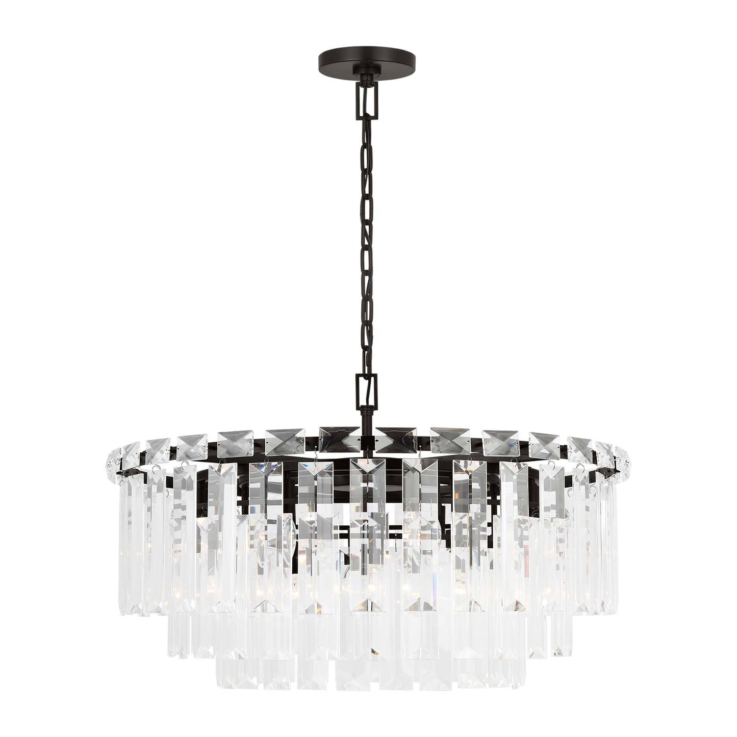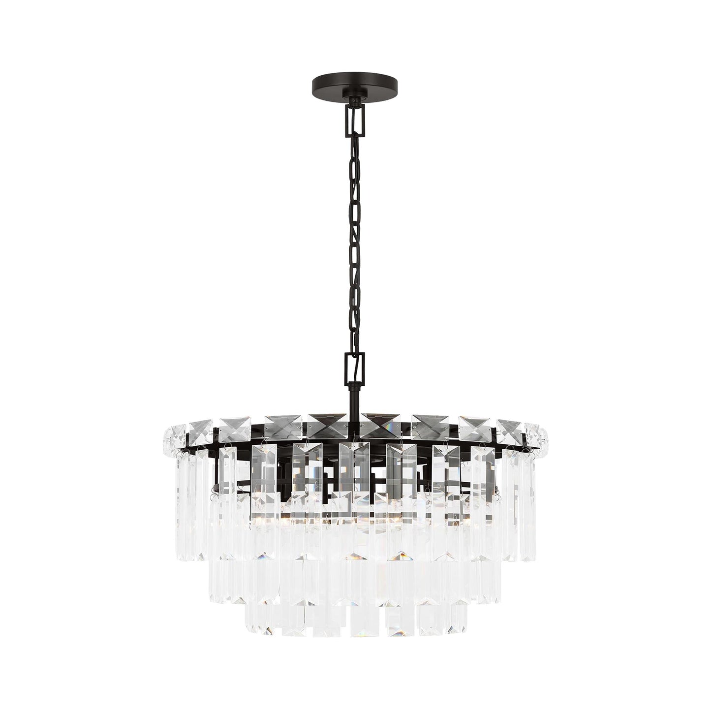 Glittering rainbows bring a playful touch to the modern glam appeal showcased in the Arden Chandelier from Visual Comfort Studio. Layers of crystal prisms cast gorgeous patterns while hidden bulbs brighten up an entry or dining area.