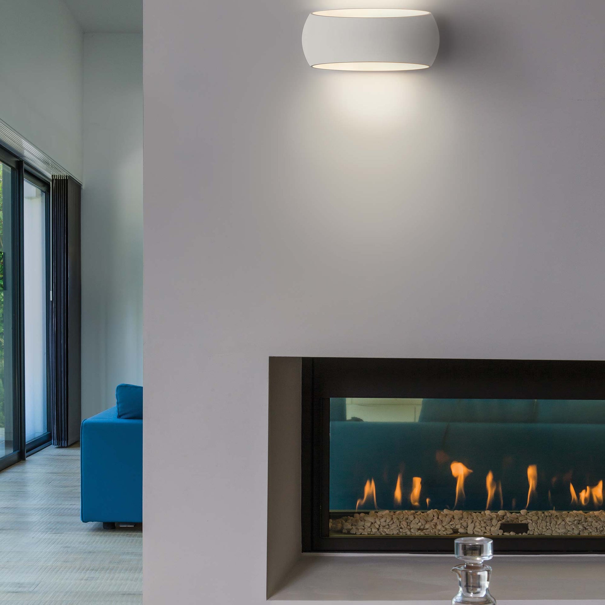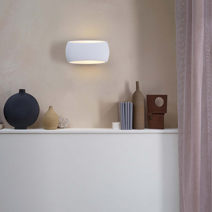 The sleek look of polished plaster forms a delectable and asymmetrical frame creating artful simplicity. The Aria 370 Wall Light from Astro Lighting delivers ultra-contemporary elegance with tasteful simplicity, ideal for making the most of an upscale, updated setting. Up light and downlight illumination doubles the glowing radiance of a gallery-inspired fixture.