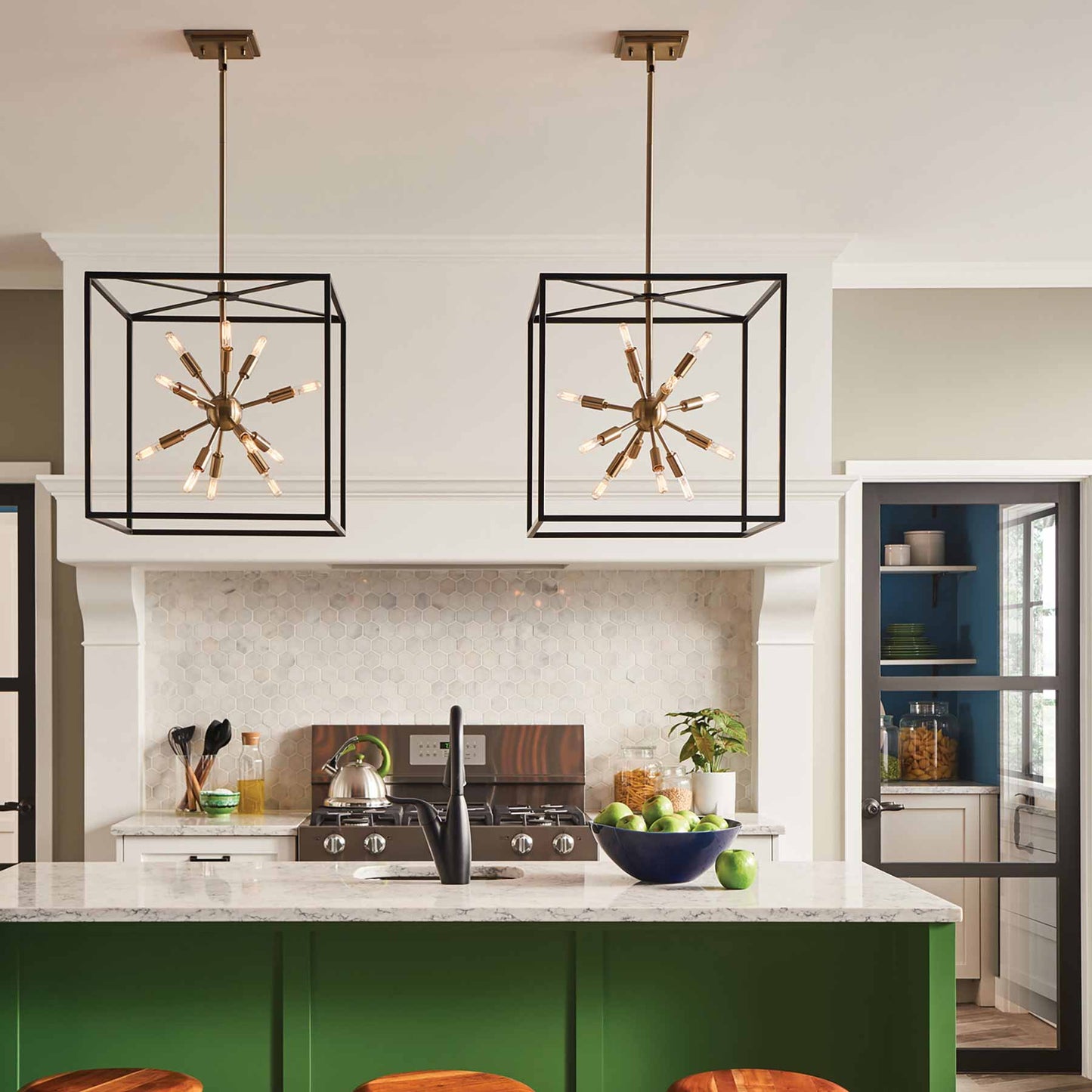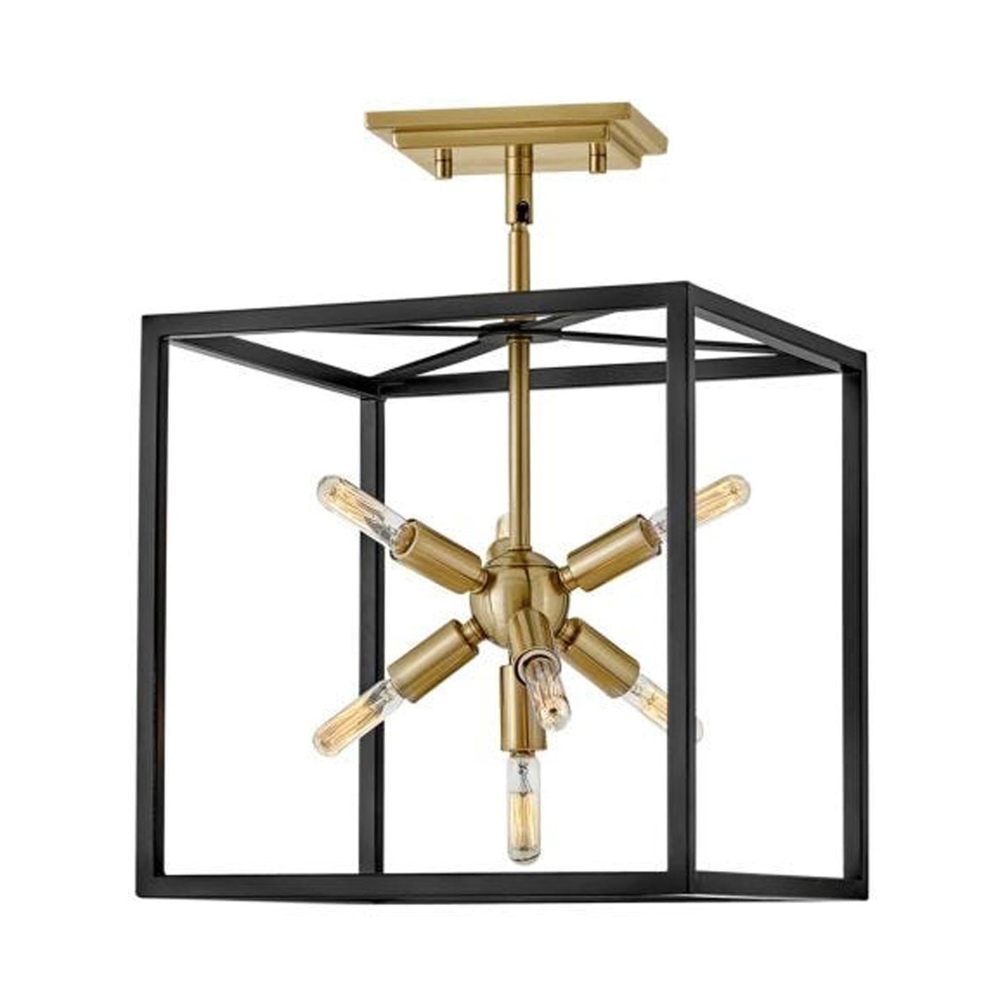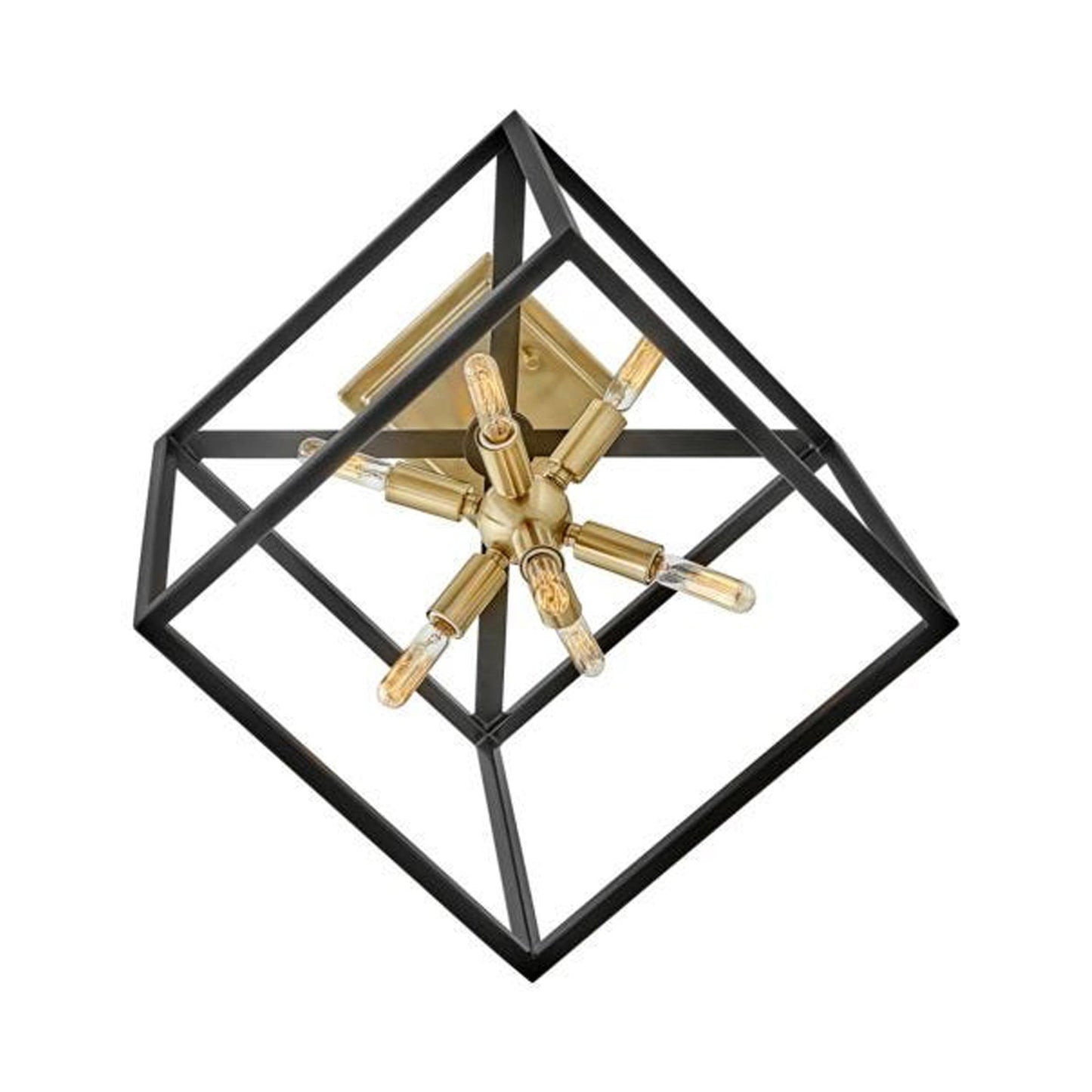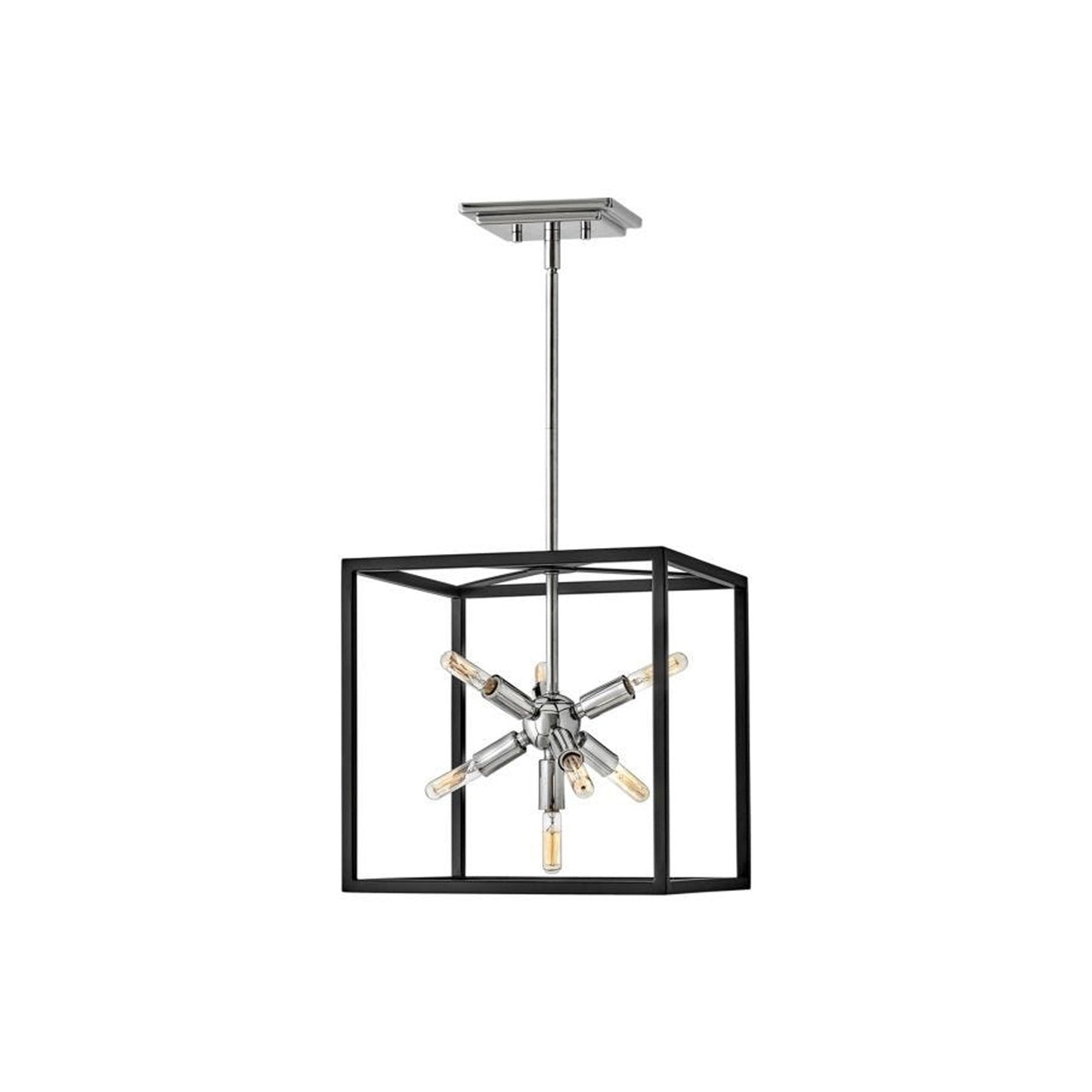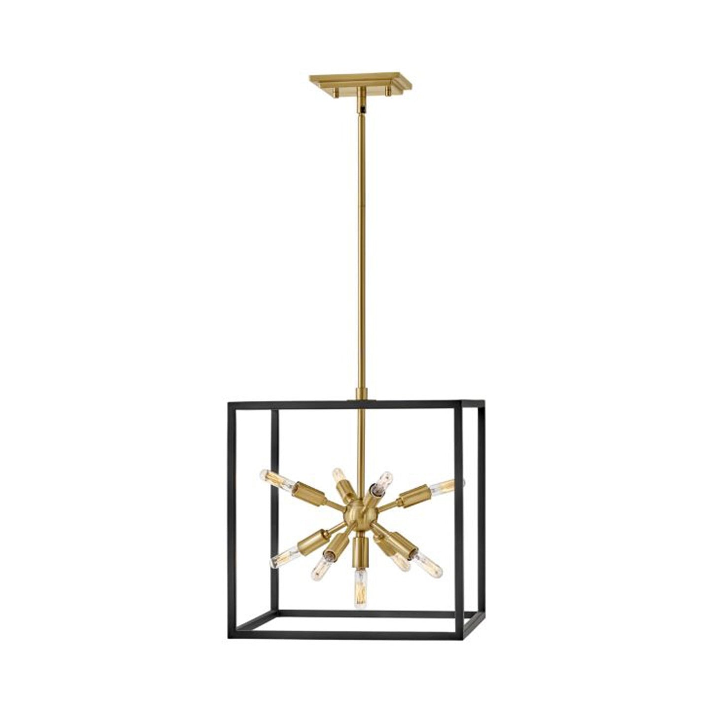 Some views are better than others. The striking Aros pendant showcases a provocative mid-century modern starburst cluster in a luxurious warm brass or polished nickel framed by an articulating, angular cage in prominent black. For added drama, the sophisticated pendants dazzle with dimension to fill unique spaces or higher ceilings. Aros is part of the Lisa McDennon Collection.