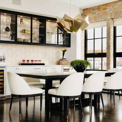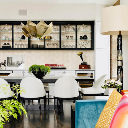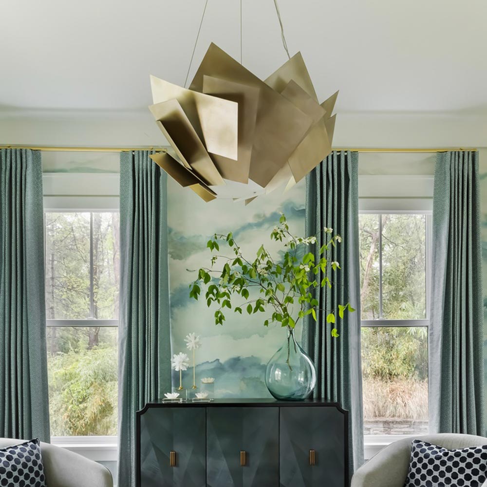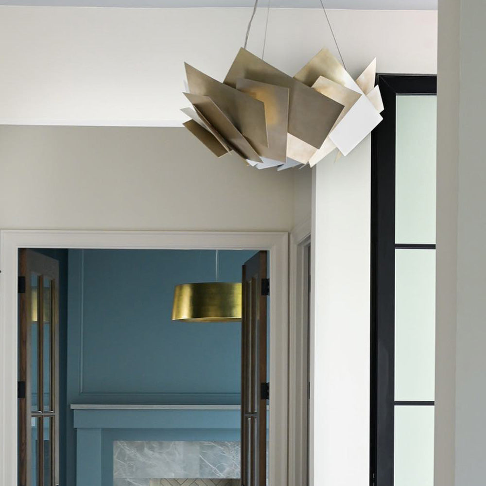 Playing with elements of modern and industrial design, the Artiste Chandelier from Currey and Company is a striking arrangement of metal sheets surrounding three lights and gleaming in a silver leaf finish. The angularity of the fixture creates a sculptural sensibility while an acrylic diffuser underneath softens the illumination it provides over an entry or breakfast nook.