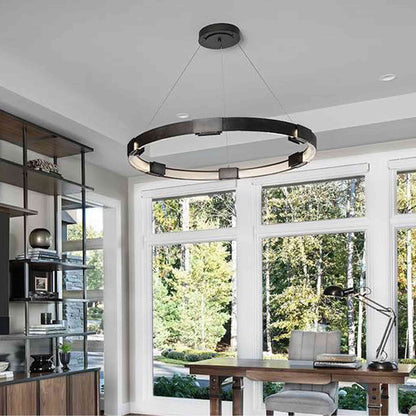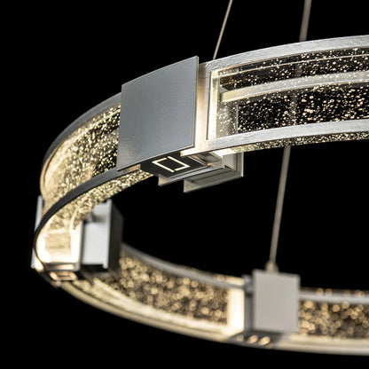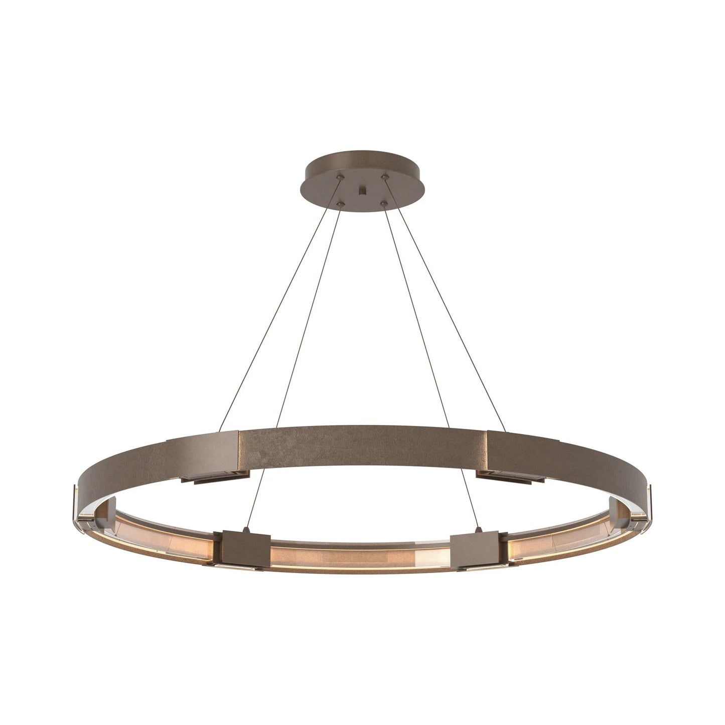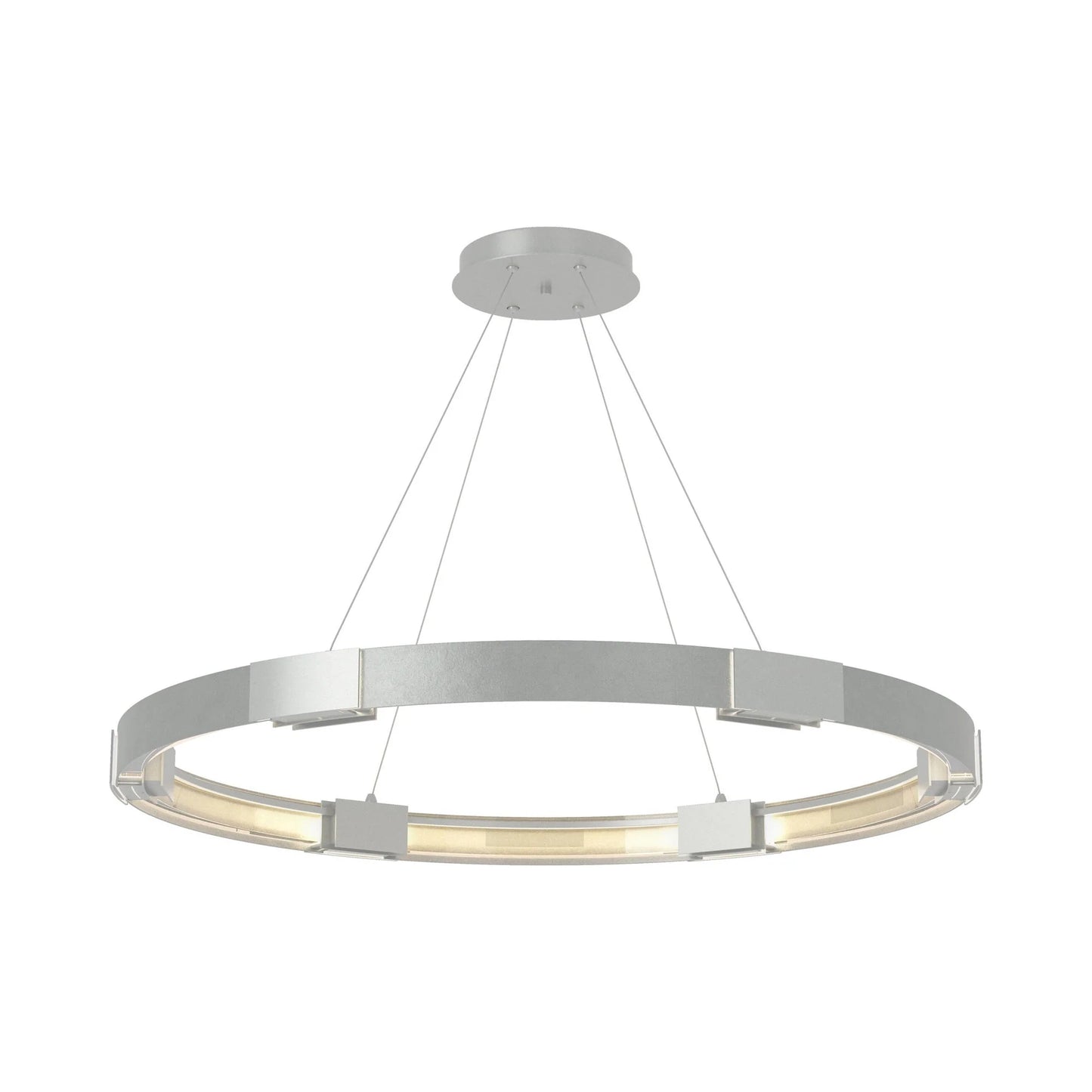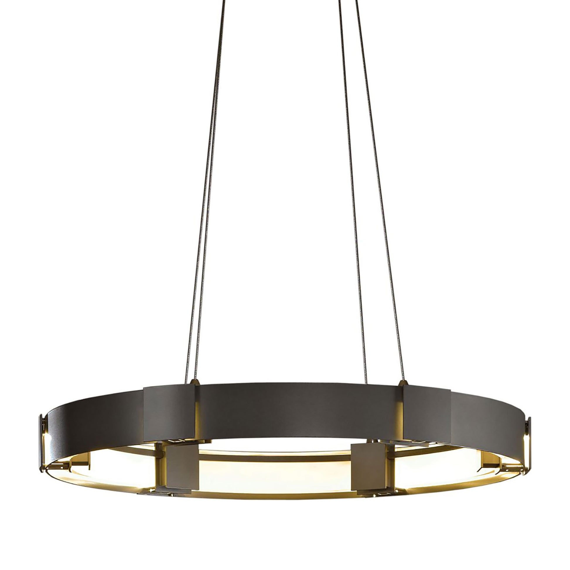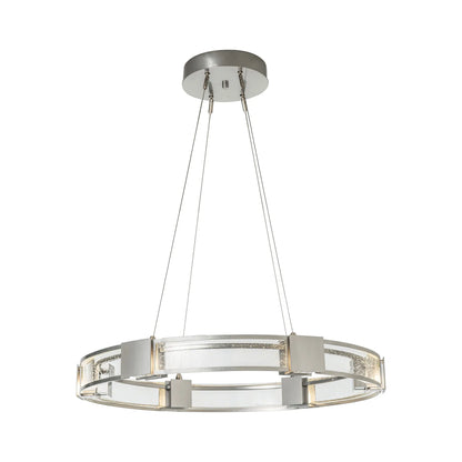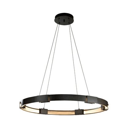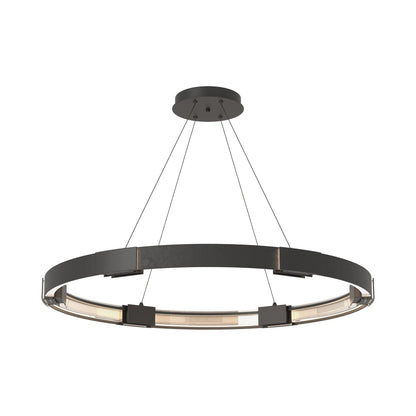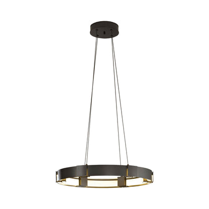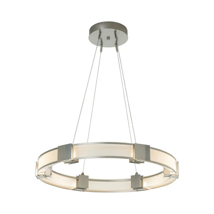 The Aura LED Pendant Light from Hubbardton Forge creates a soft and even glowing light that sets the tone in a welcoming space.