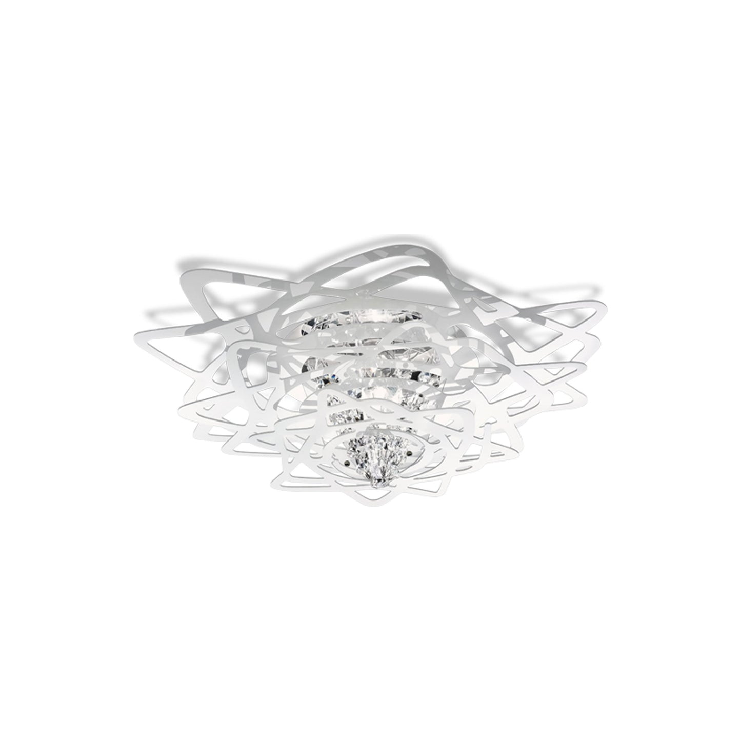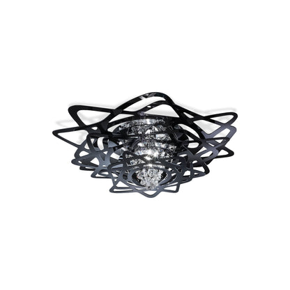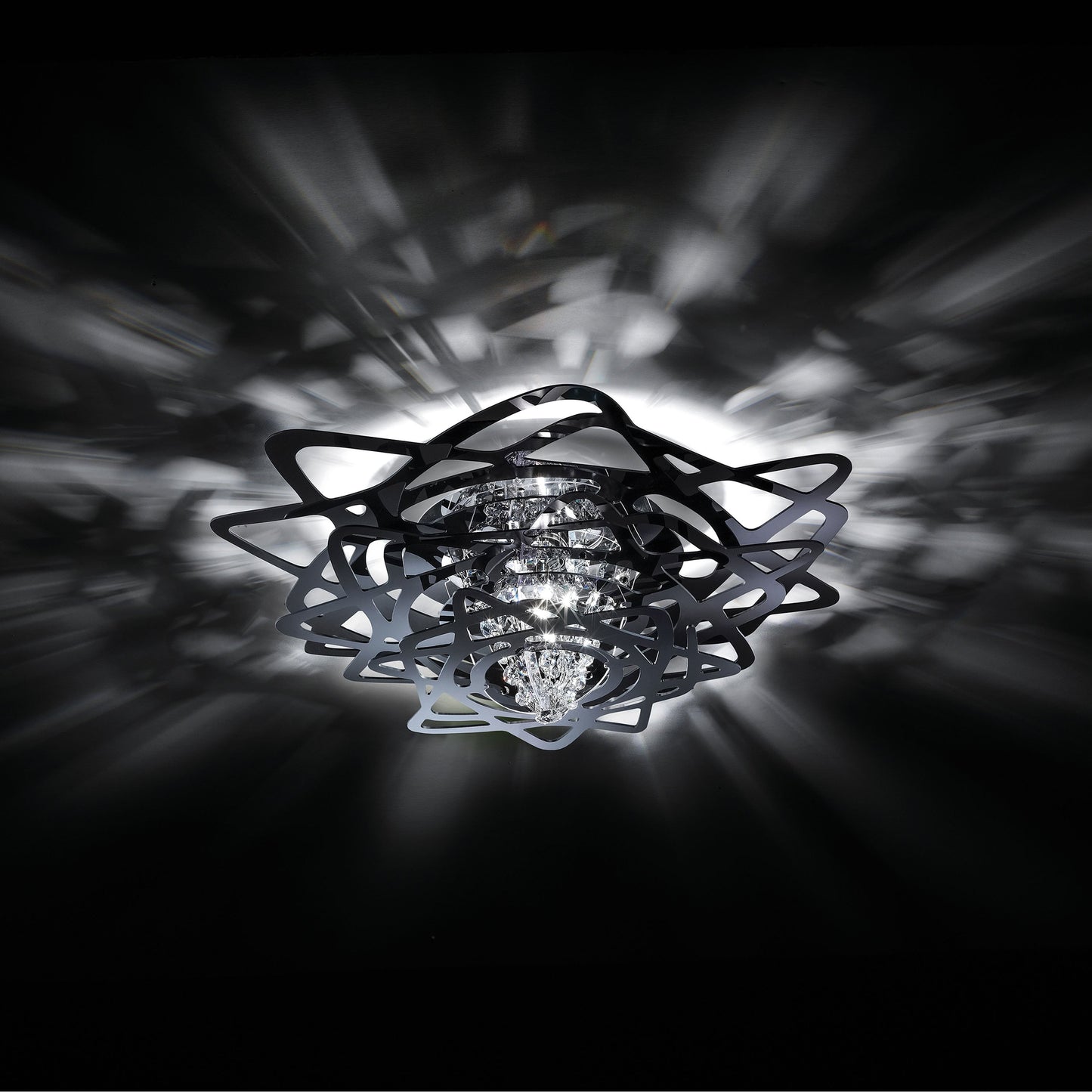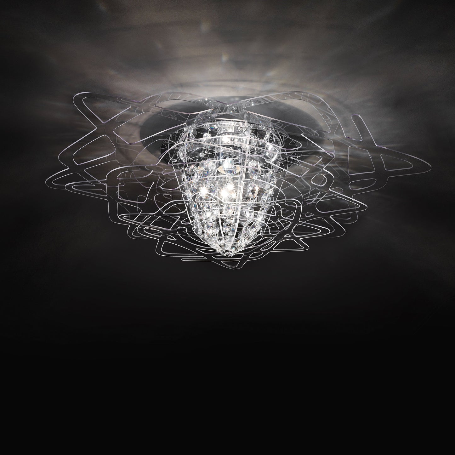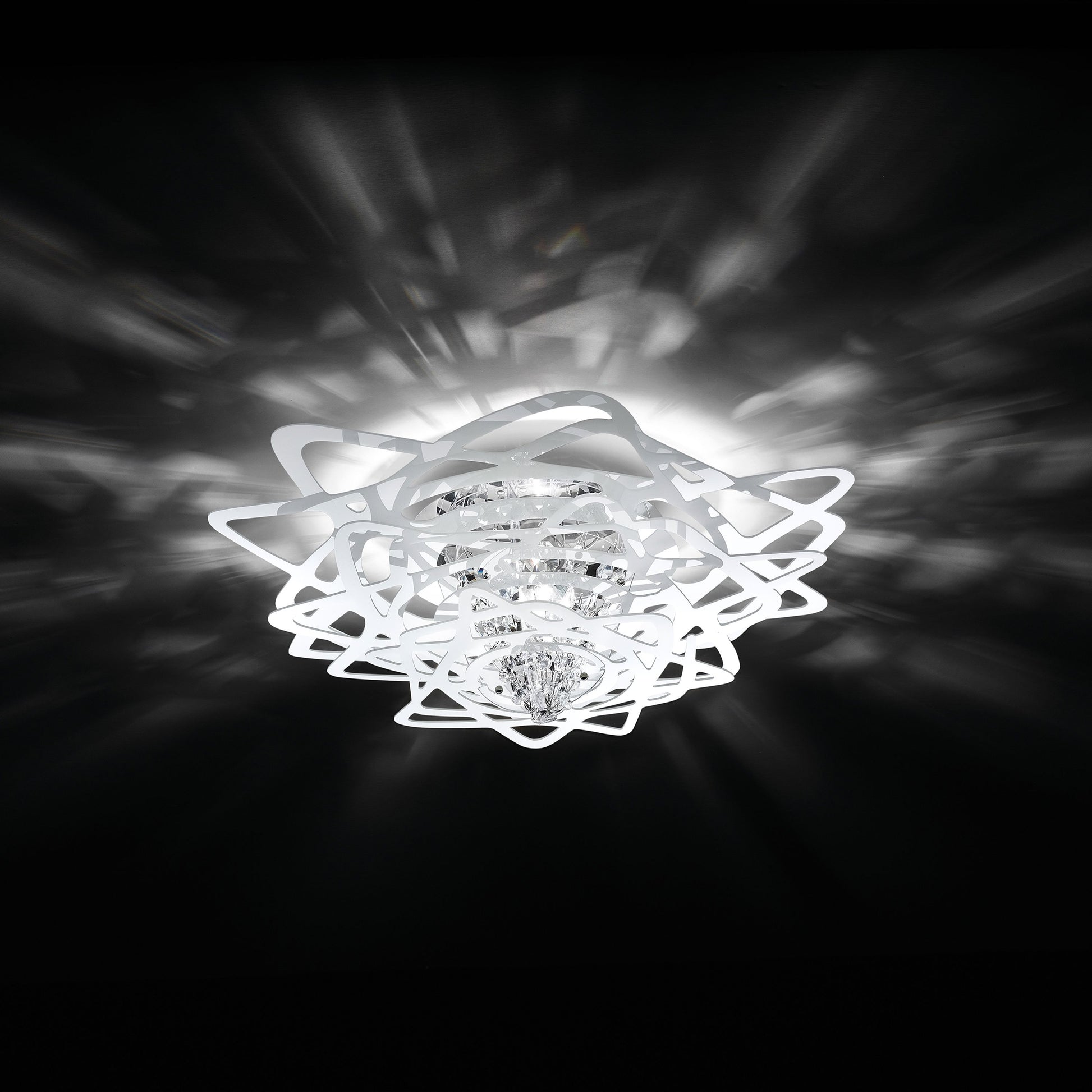 Glittering crystals cast gorgeous light across the abstract swirls that give the Aurora Flush Mount Ceiling Light from Slamp its intriguing silhouette.