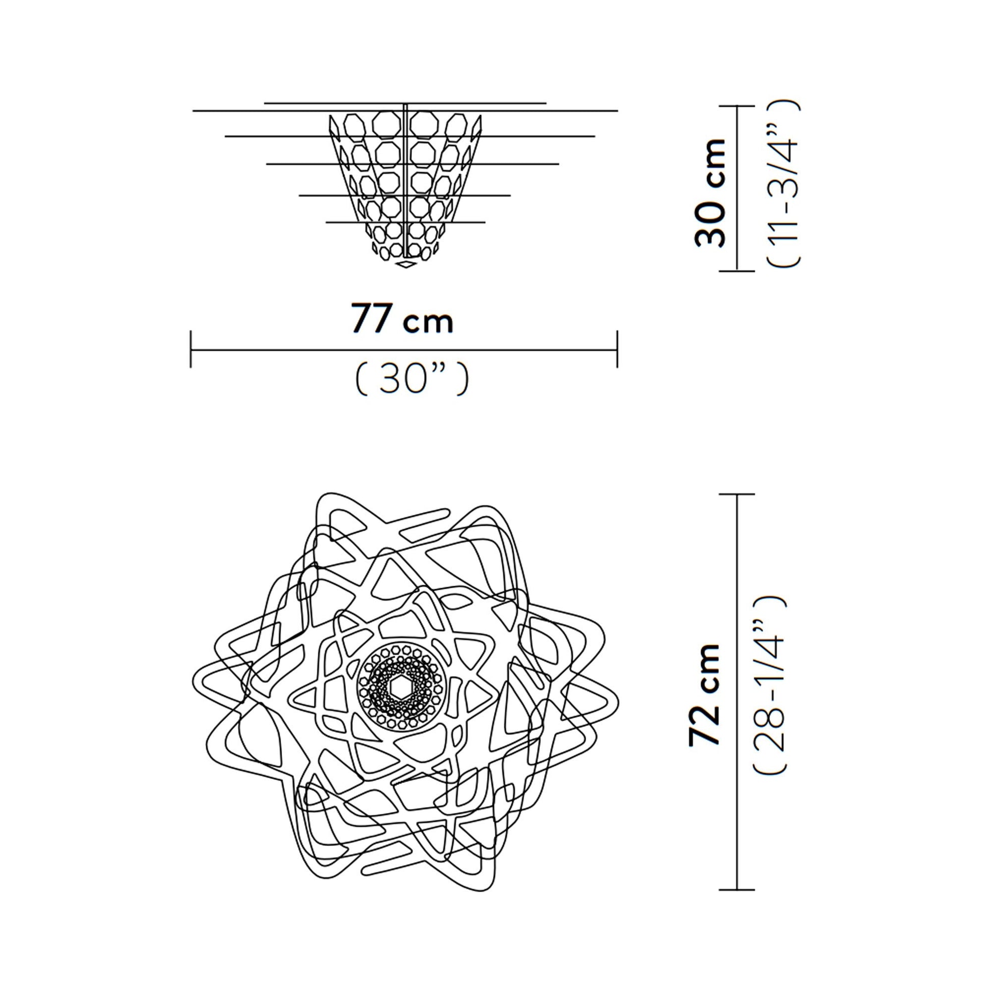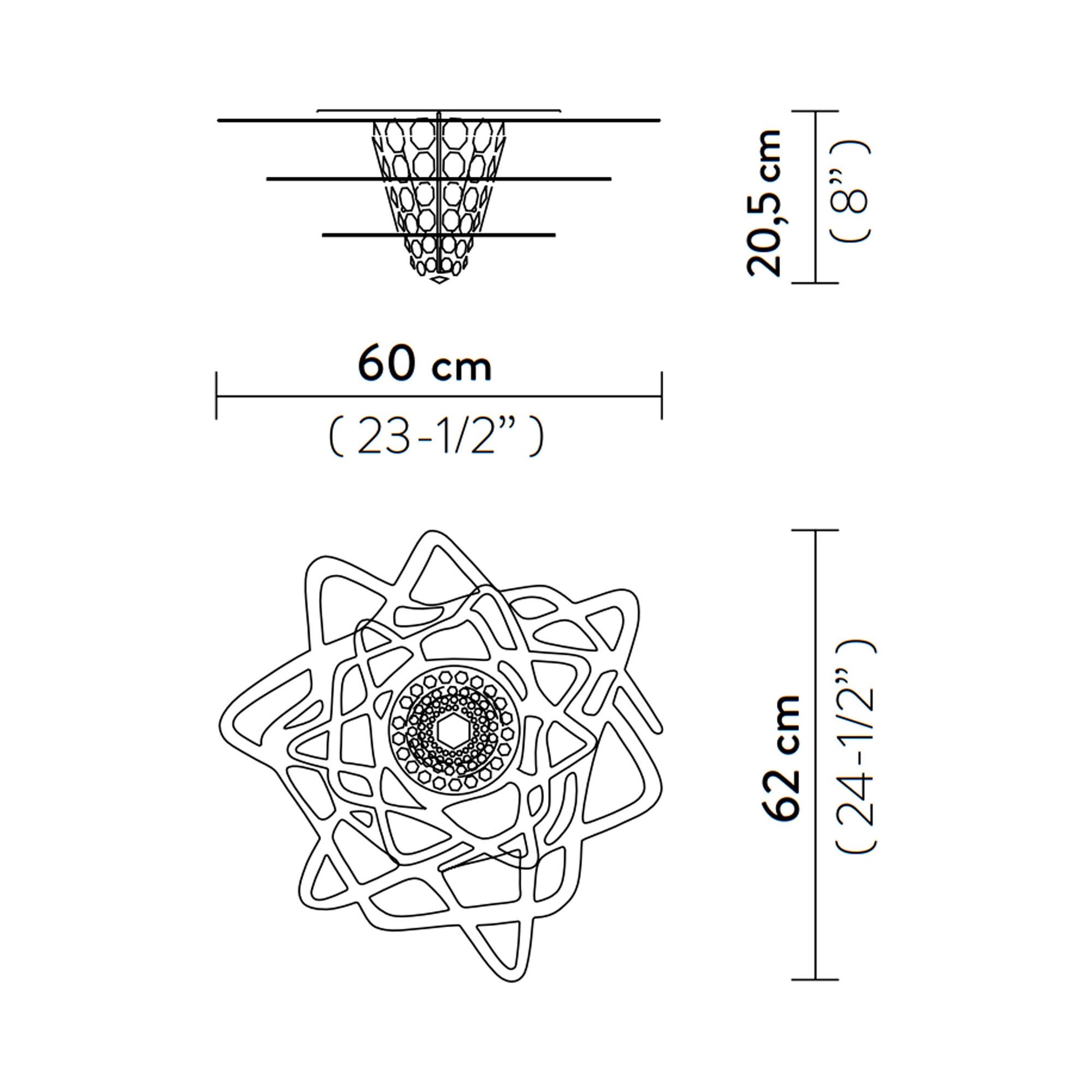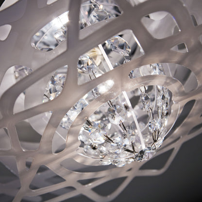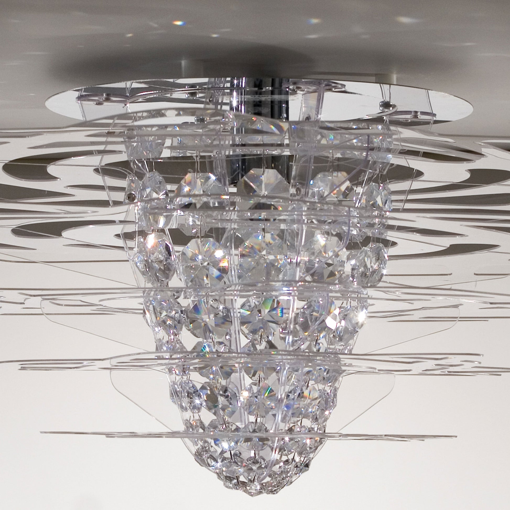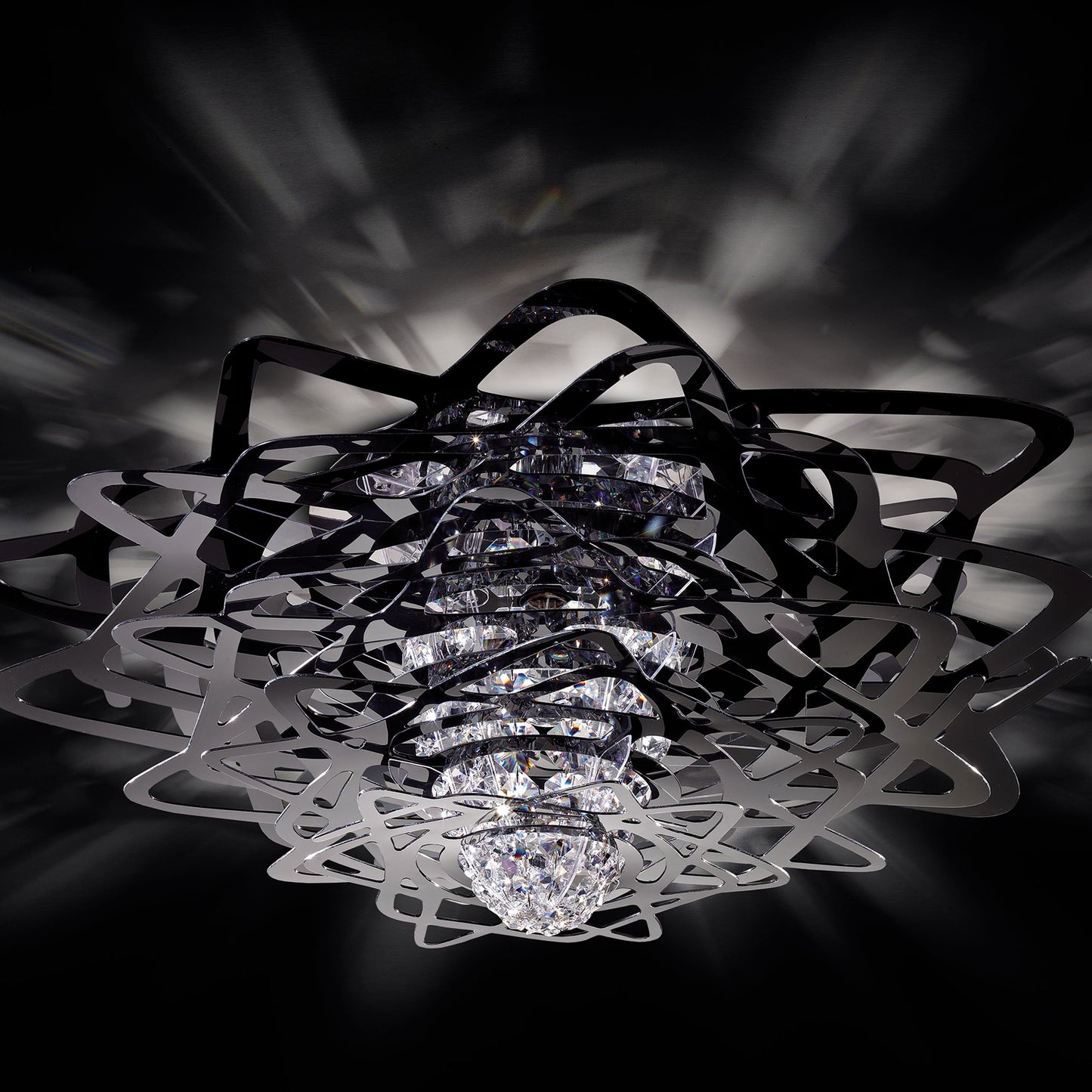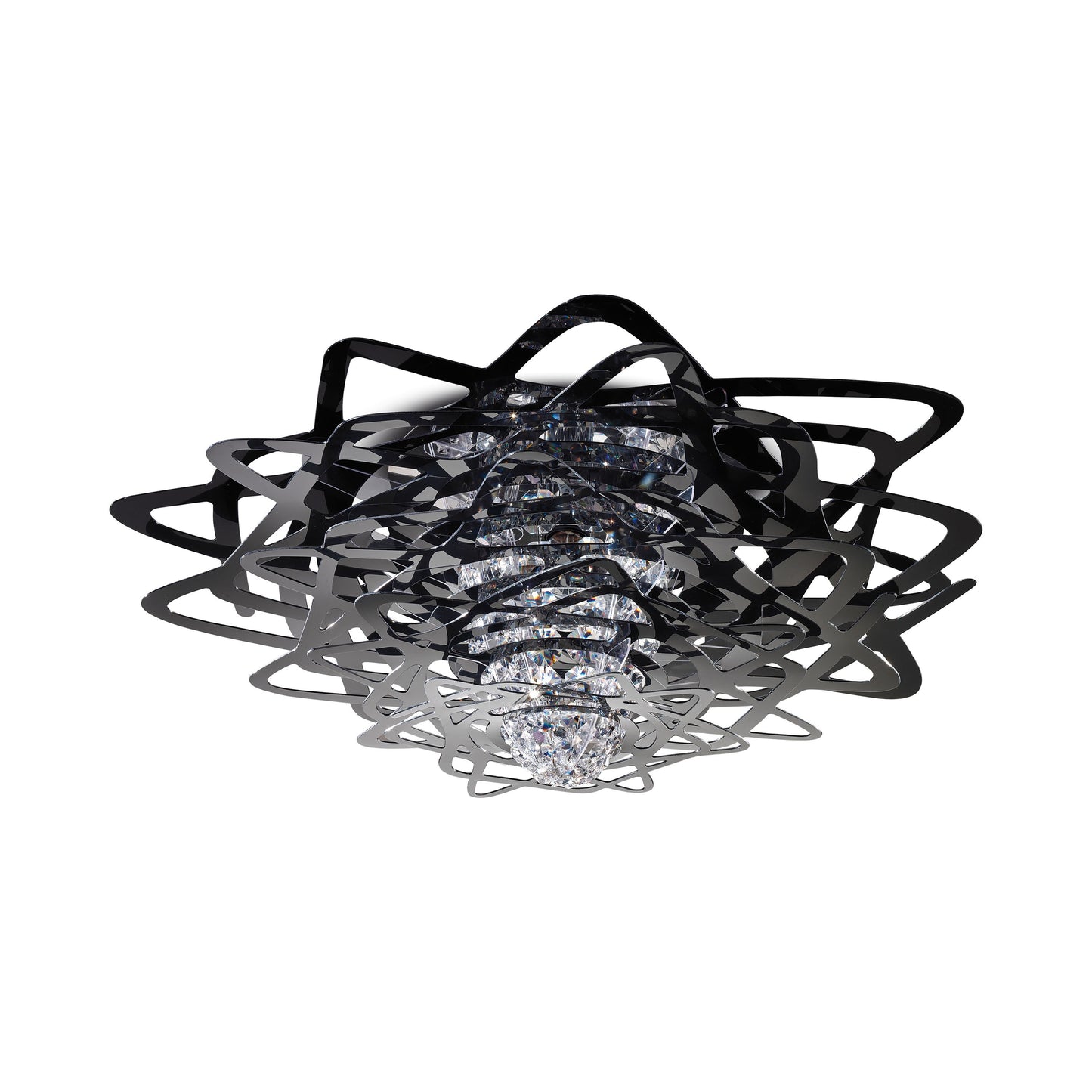Glittering crystals cast gorgeous light across the abstract swirls that give the Aurora Flush Mount Ceiling Light from Slamp its intriguing silhouette.