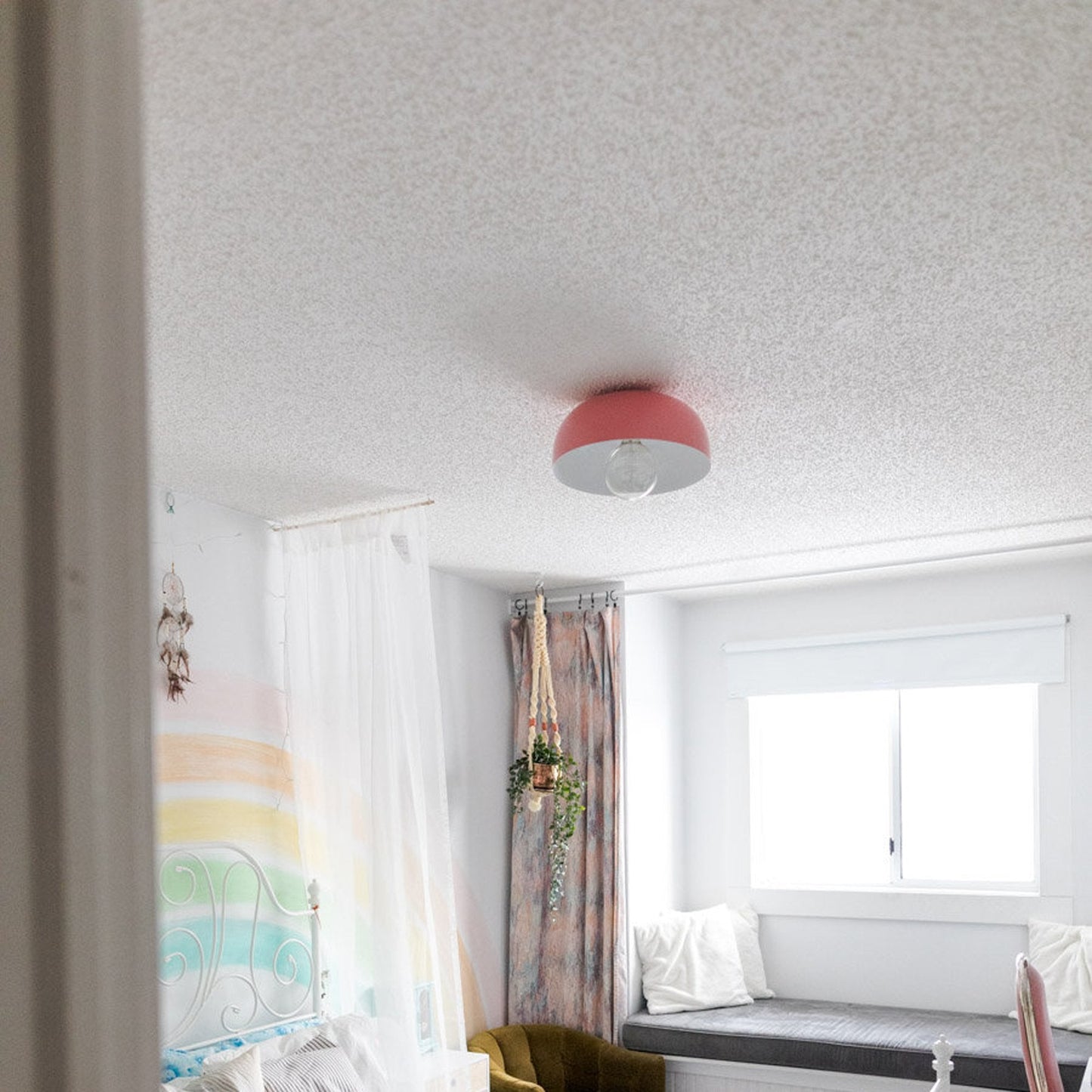 With a cheerfully vintage vibe, the Avery 1-Light Semi-Flush Mount Ceiling Light from Mitzi lends a harmonious look with its two-tone design and metallic accents. Available in playful, cheeky color combinations that offer a diner-esque nostalgia, the Avery ceiling mount fixture provides ample lighting for retro-inspired homes.