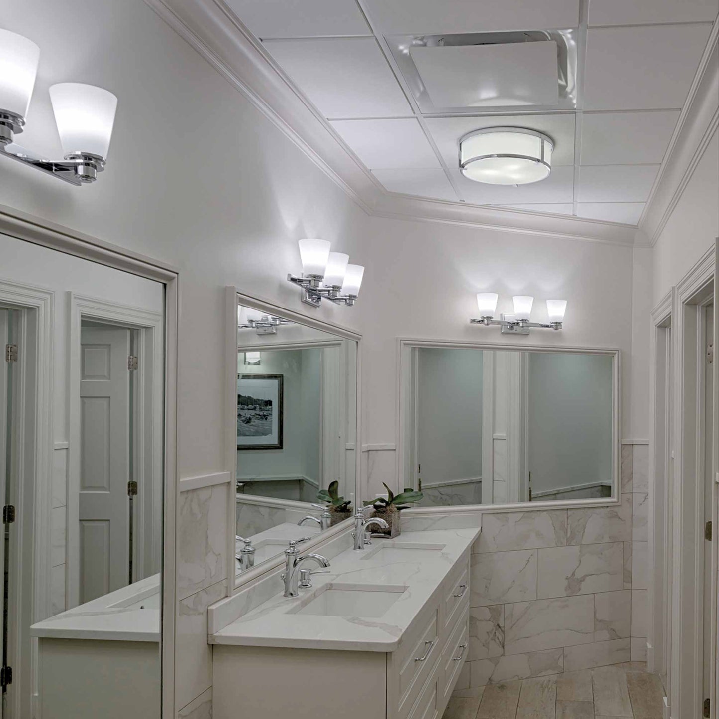 Clean lines define the updated traditional style of the Avon Bath Vanity Light from Hinkley. Etched opal glass shades exude contemporary ambiance while ensuring bright but diffused illumination.
