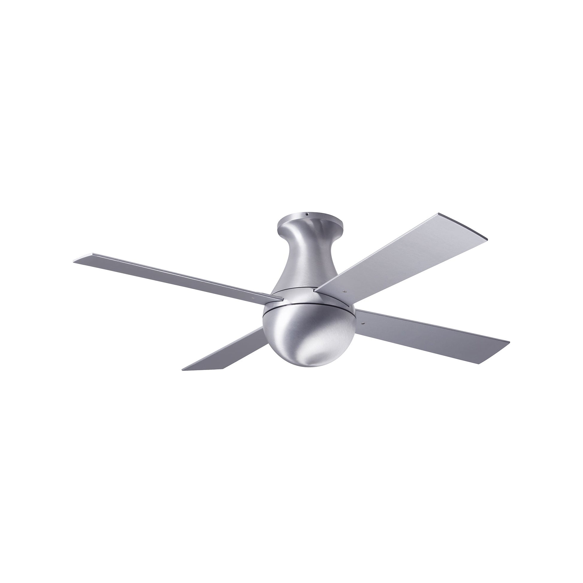 The Ball 42-Inch Flush Mount Ceiling Fan from Modern Fan Company suits low ceilings and low-clearance spaces while still offering the benefits of a ceiling fan. Four blades and a shapely motor assembly are efficient in both cooling and in distributing warmer air using its reverse blade setting in colder seasons. Choose this fan created of die-cast aluminum as a great fit for flat ceilings.