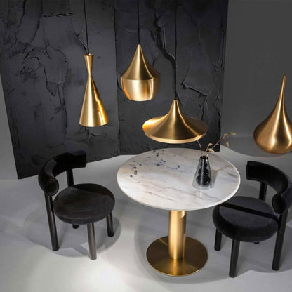 Clean lines and captivating curves form the graceful silhouette of the energy efficient Beat Fat LED Pendant Light from Tom Dixon.