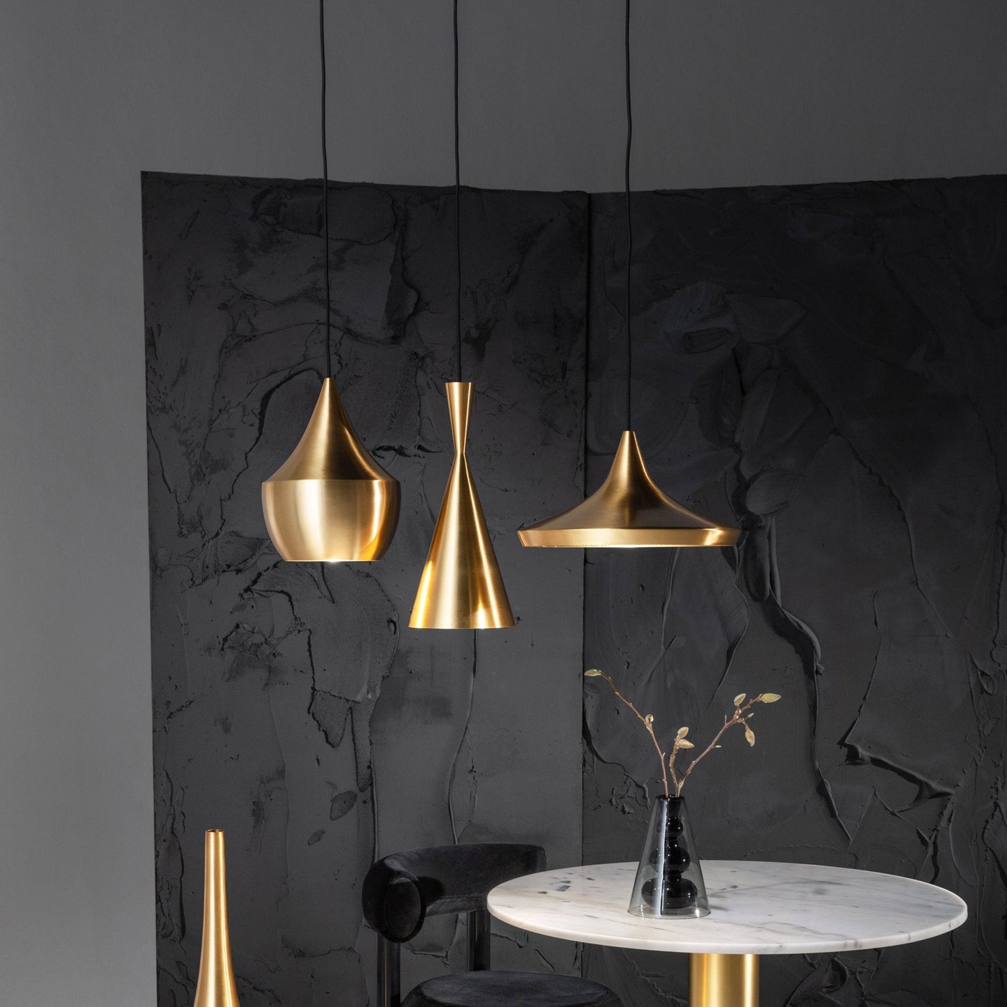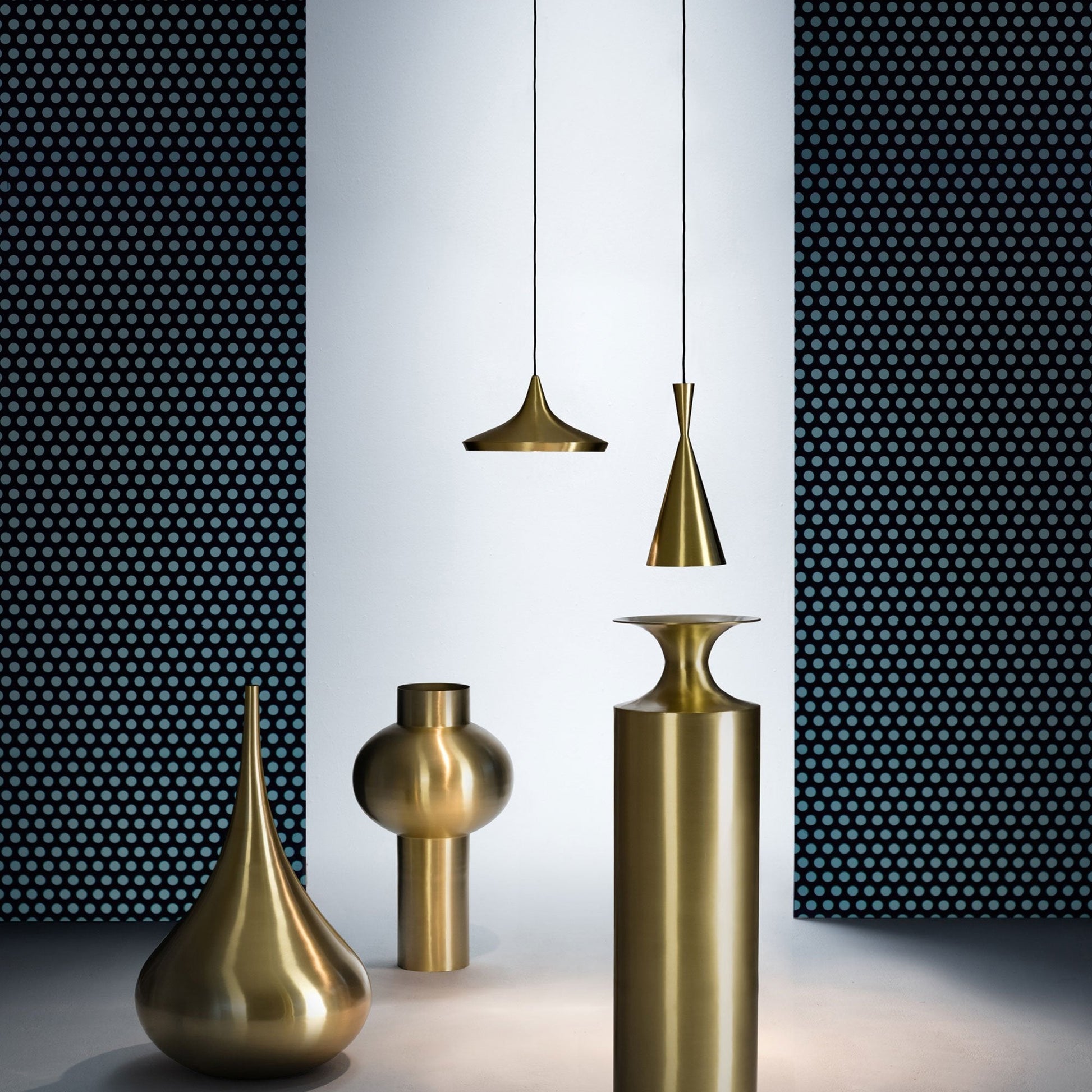 Boldly geometric, the energy efficient Beat Wide LED Pendant Light from Tom Dixon makes an exceptional display over a breakfast bar.