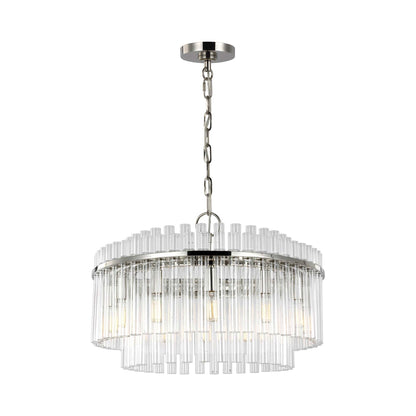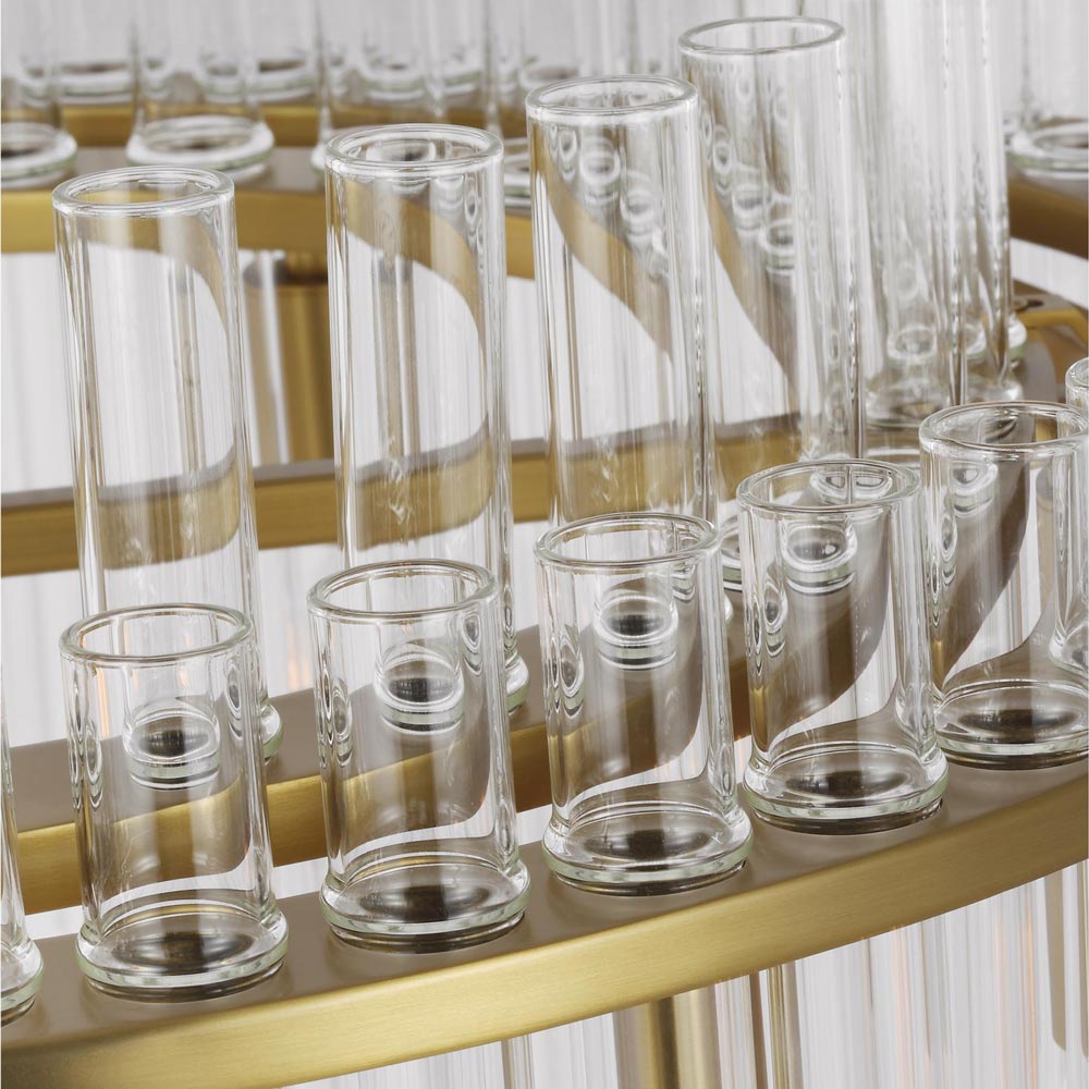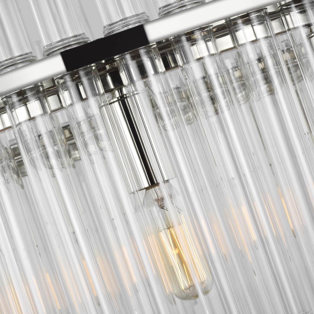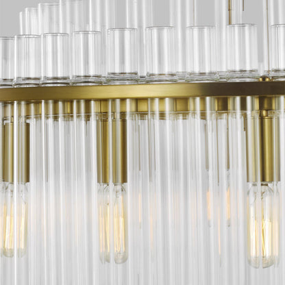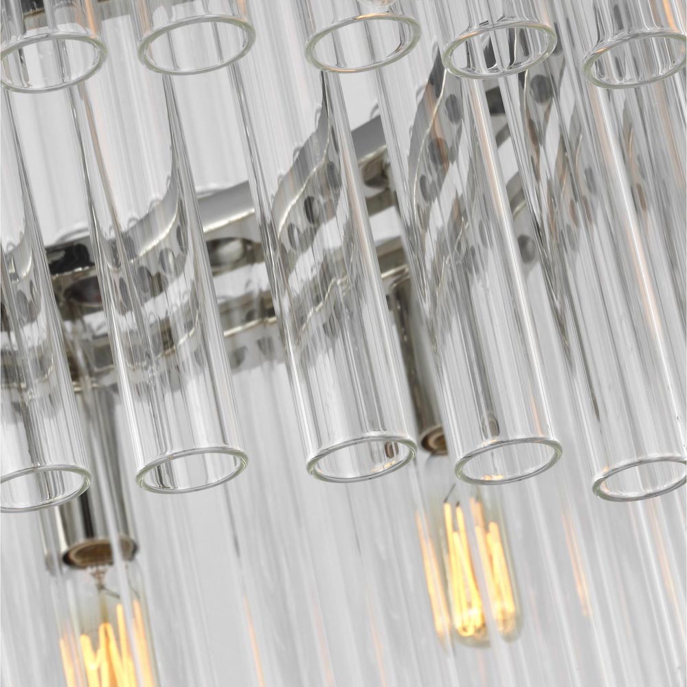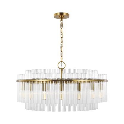 Tiers of glass tubes sparkle as they refract the light from within the Beckett Chandelier from Visual Comfort Studio. A traditional look perfect for a dining room or entry, the chandelier is simple and sophisticated, perfect for glam flair.
