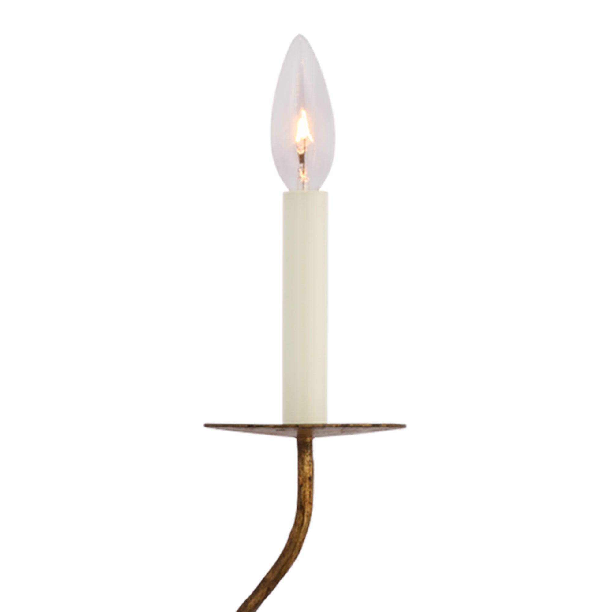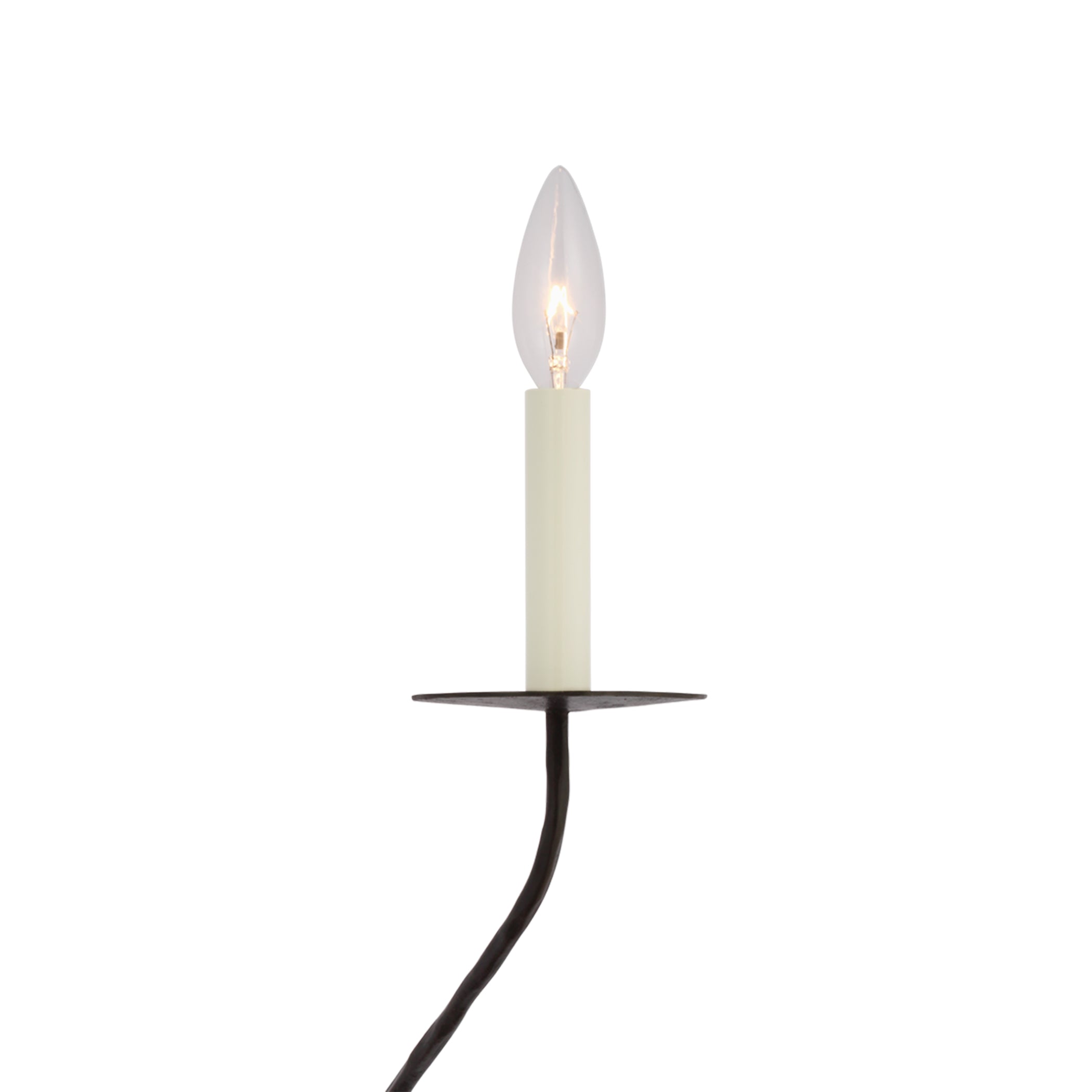A barebones hand forged artisan feel shines through in the energy-efficient minimalist Belfair Tail Wall Light from Visual Comfort Signature. This slender and unapologetically simple wall light features a single exposed candelabra, offering a hint of lighting and dramatic silhouette to interiors.