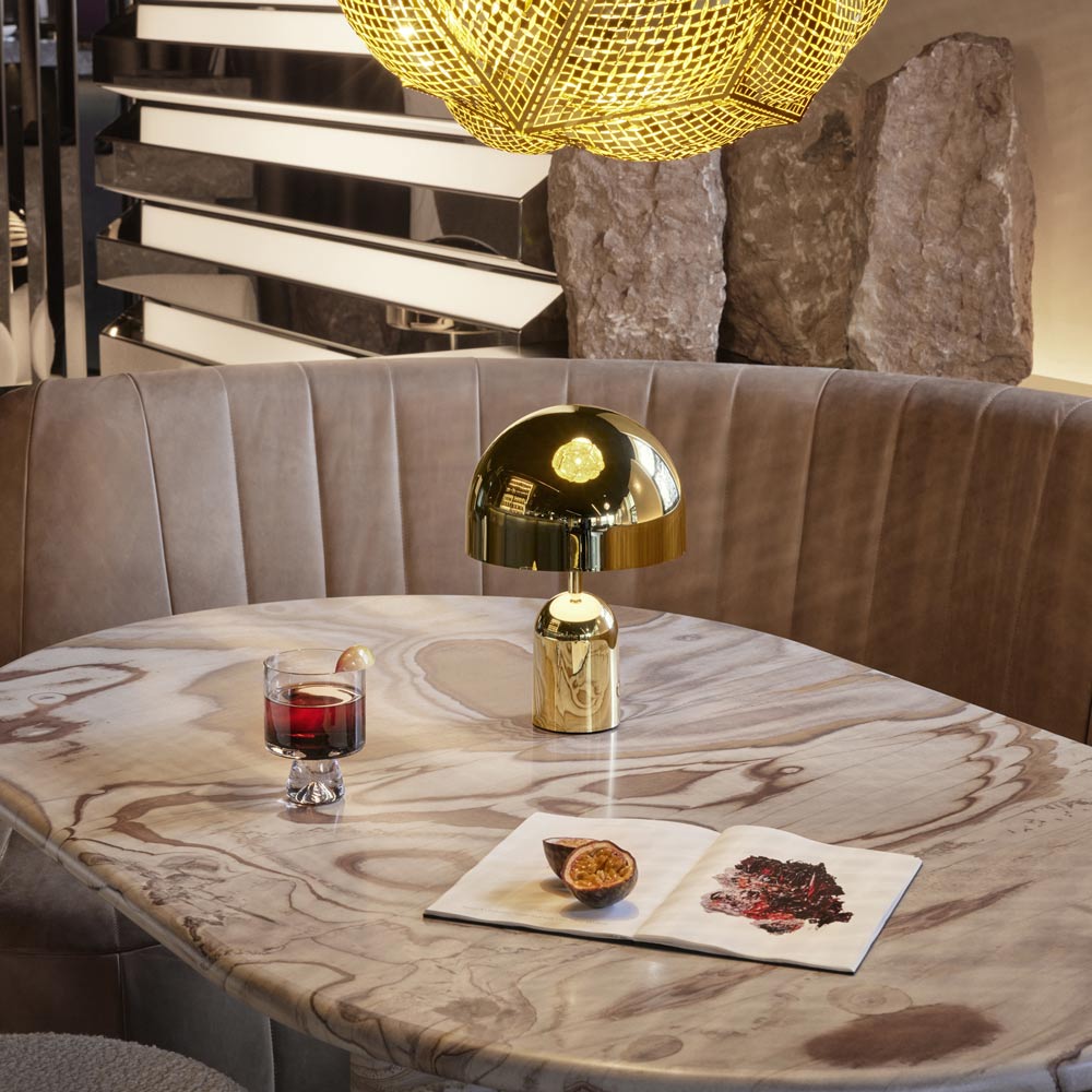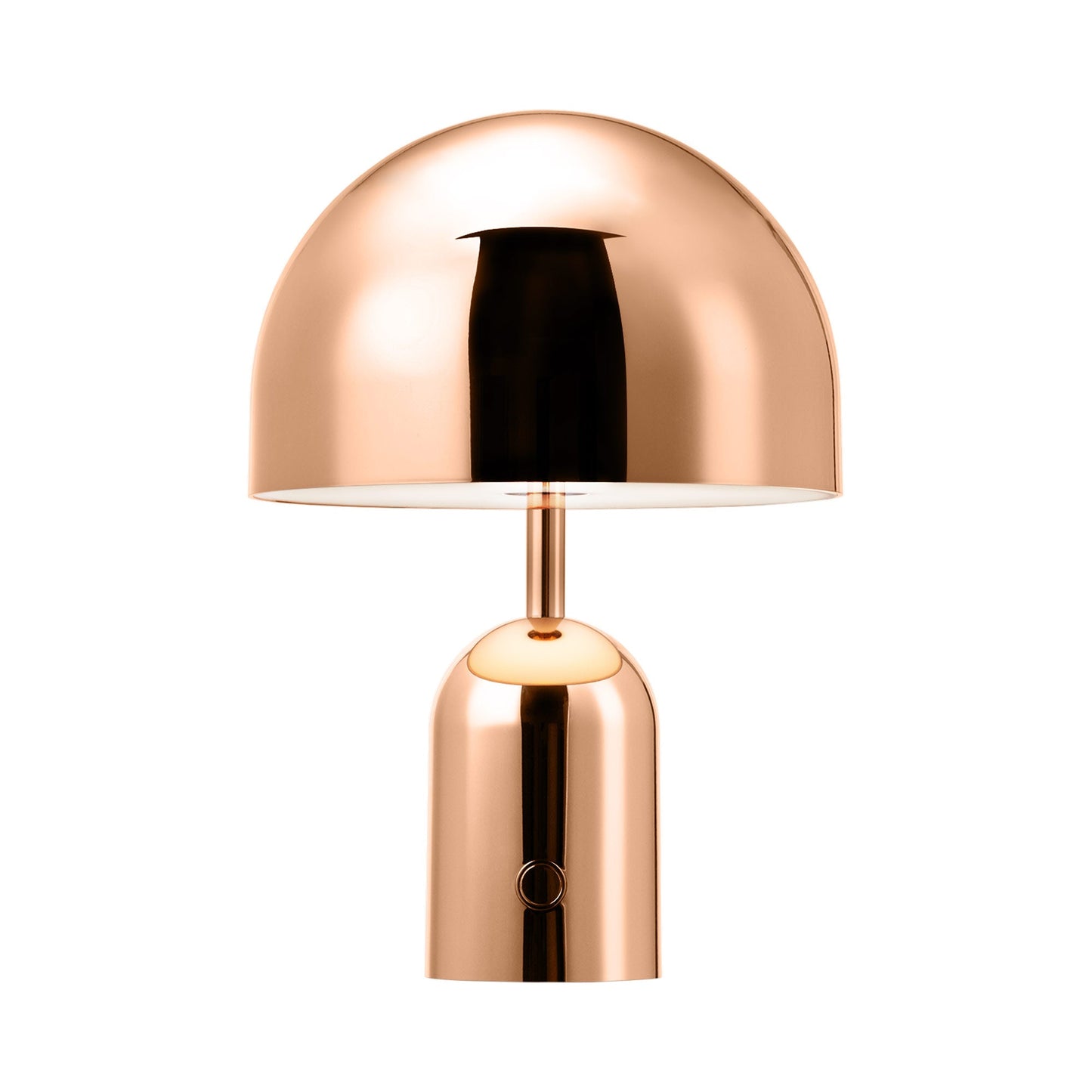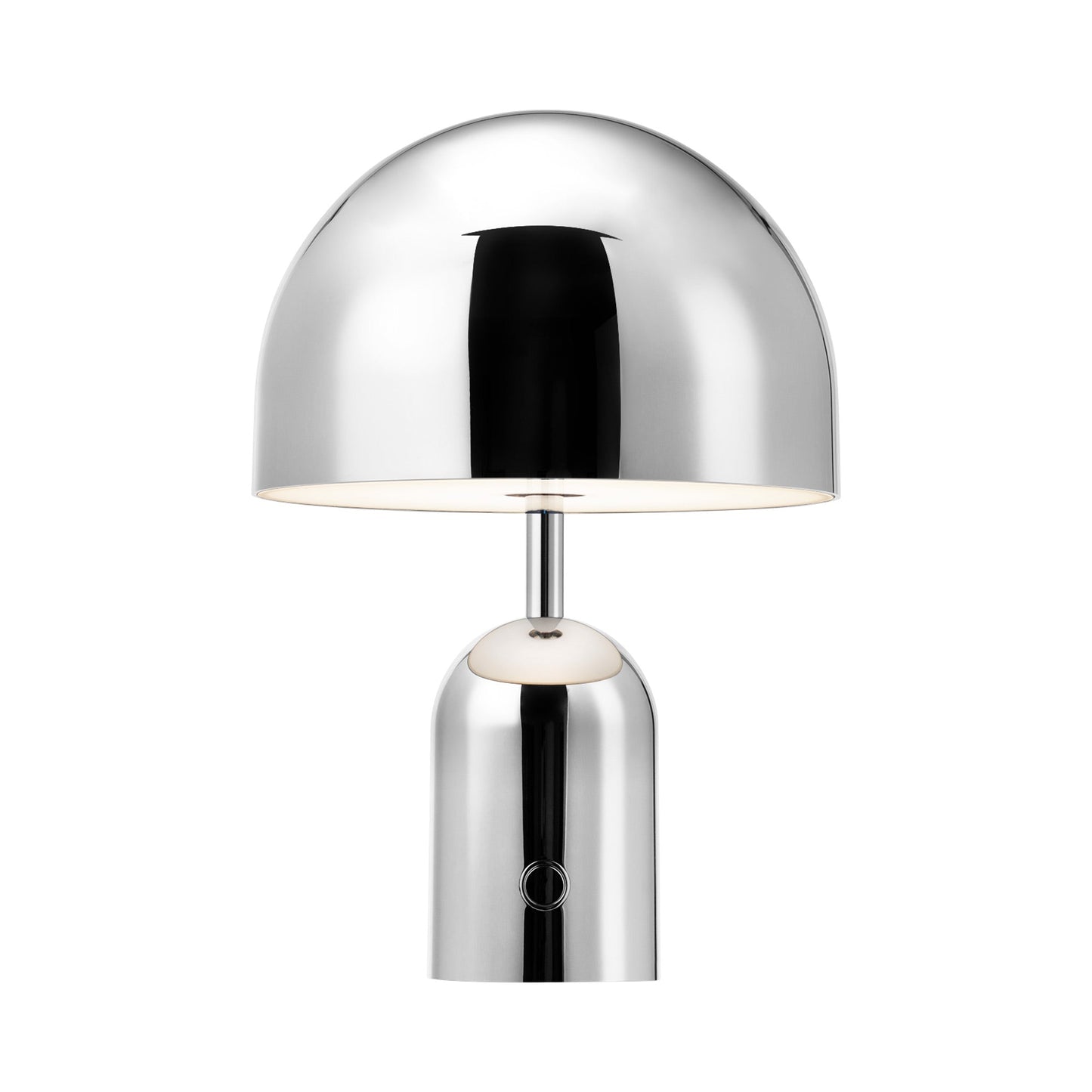 Bring a surprise element to a modern space with the Bell LED Portable Table Lamp from Tom Dixon. All focus averts to shiny color with a pair of geometric shapes assemble to create festivity in design. A concealed diffuser measures light flow from this portable lamp, creating a warm glow perfect for any space.