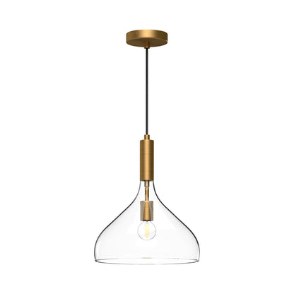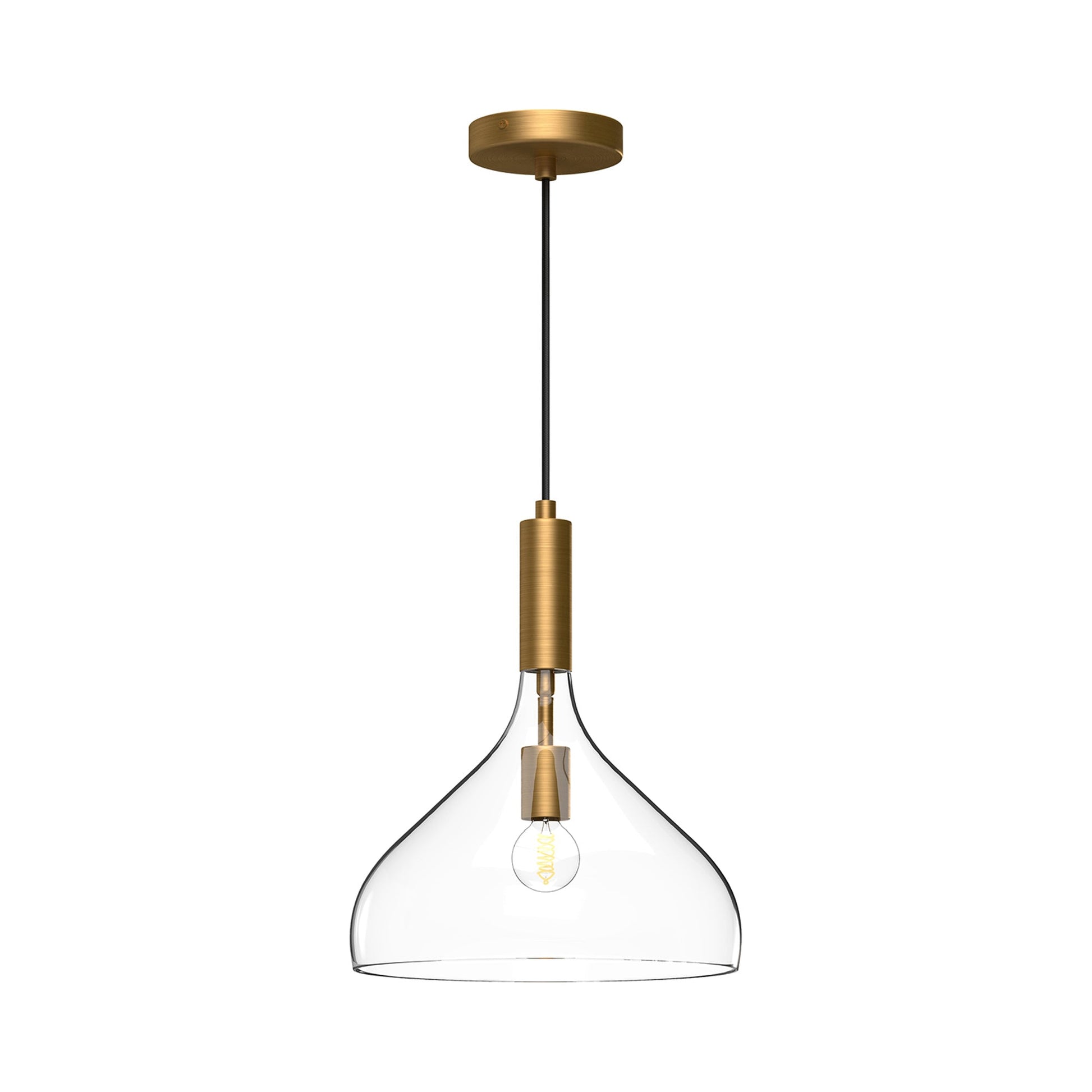 With an exquisitely exaggerated genie-inspired silhouette, the glass shade of this chic Belleview Pendant Light from Alora Mood captures attention and serves as a focal point in a classic, timeless room design. Metal details skirt carefully to embellish and not overpower the glam shade, building a tasteful, sophisticated fixture.