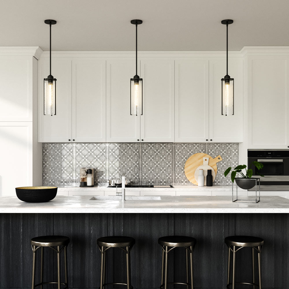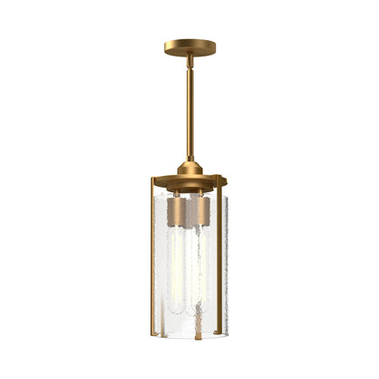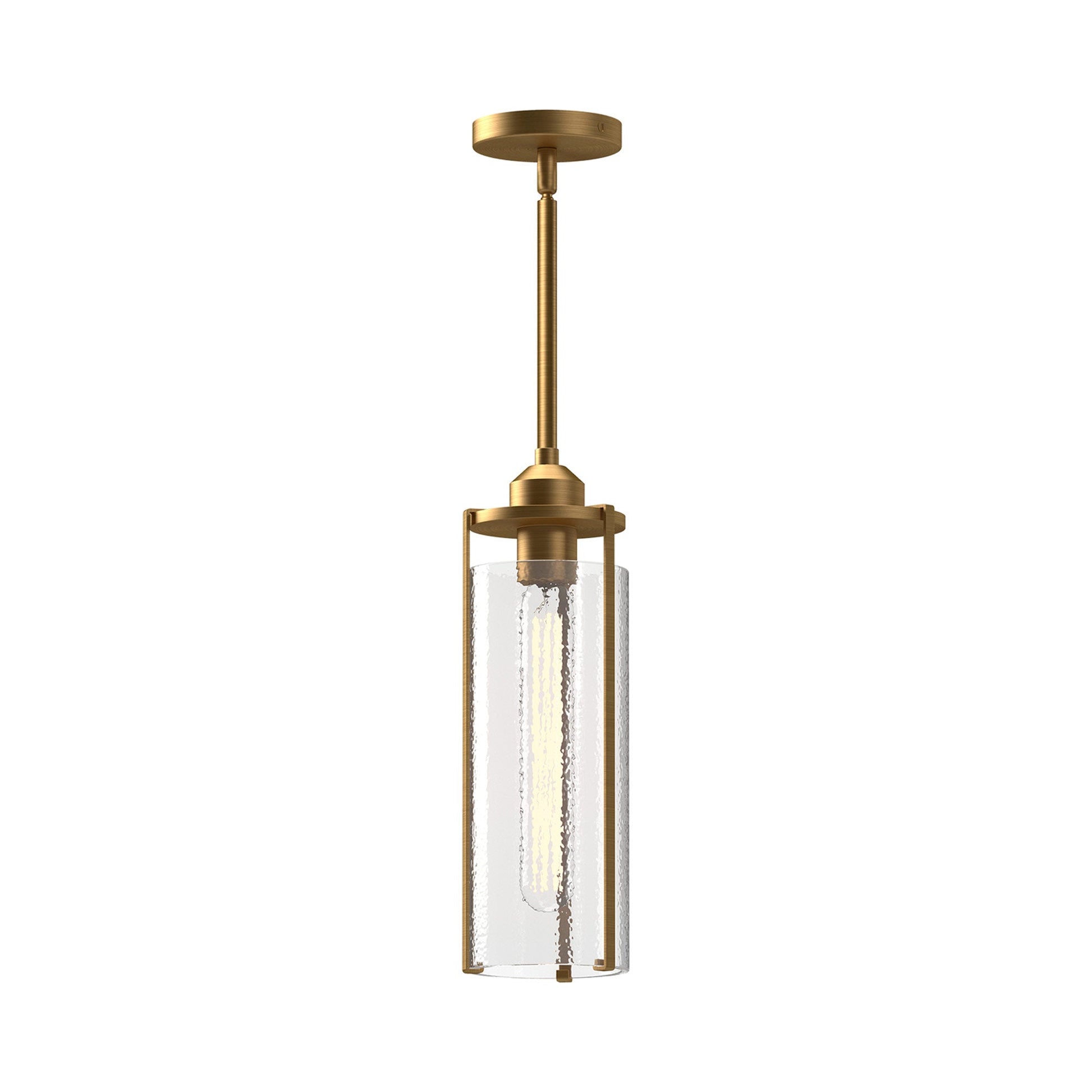 Romantic in its texture, a water glass cylinder shade stands out as a central focus to the Belmont Pendant Light from Alora Mood. This compelling fixture plays with the iconic marriage of glass and metal, carefully balancing each element to complement the other.