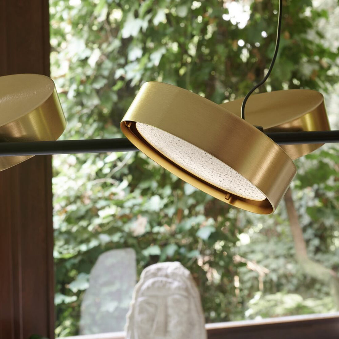 Mixing Art Deco influence with industrial style, the Berlin LED Pendant Light from Oluce offers both an energetic vibe and classic artisan personality. Metal construction includes framing and chic round, adjustable shades that accommodate targeted light direction. This energy-efficient fixture becomes an independently quirky interior design element.