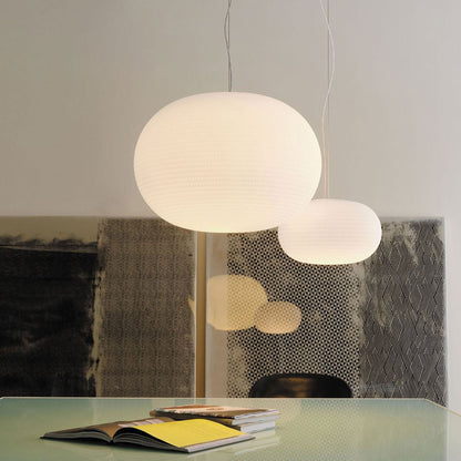 Delicate grooves are etched in the white glass shade that defines the Bianca Pendant Light from FontanaArte. Exquisite in a modern space, it produces warm, diffused illumination to envelop your space in elegance.