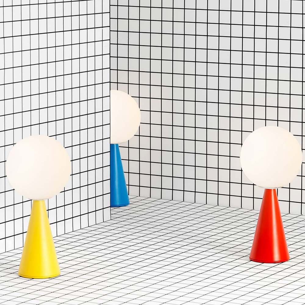Nothing more than a sphere, set in an apparently impossible feat of balance, upon a cone that serves as the base. One of Gio Ponti’s many compositional magic tricks, designed in 1932. The counterbalancing of two elementary geometric forms results in an original, perfectly proportioned object. An unpretentious composition, enriched by the extraordinary balance of its proportions and the stylish discretion of non-reflective materials. The light is diffused and valorized by the geometrical simplicity of the design. In designing Bilia, Gio Ponti imagined a smaller version in a range of “spray colours”. From those handwritten notes of the original project, FontanaArte presents Bilia Mini in new breathtaking chromatic variations.