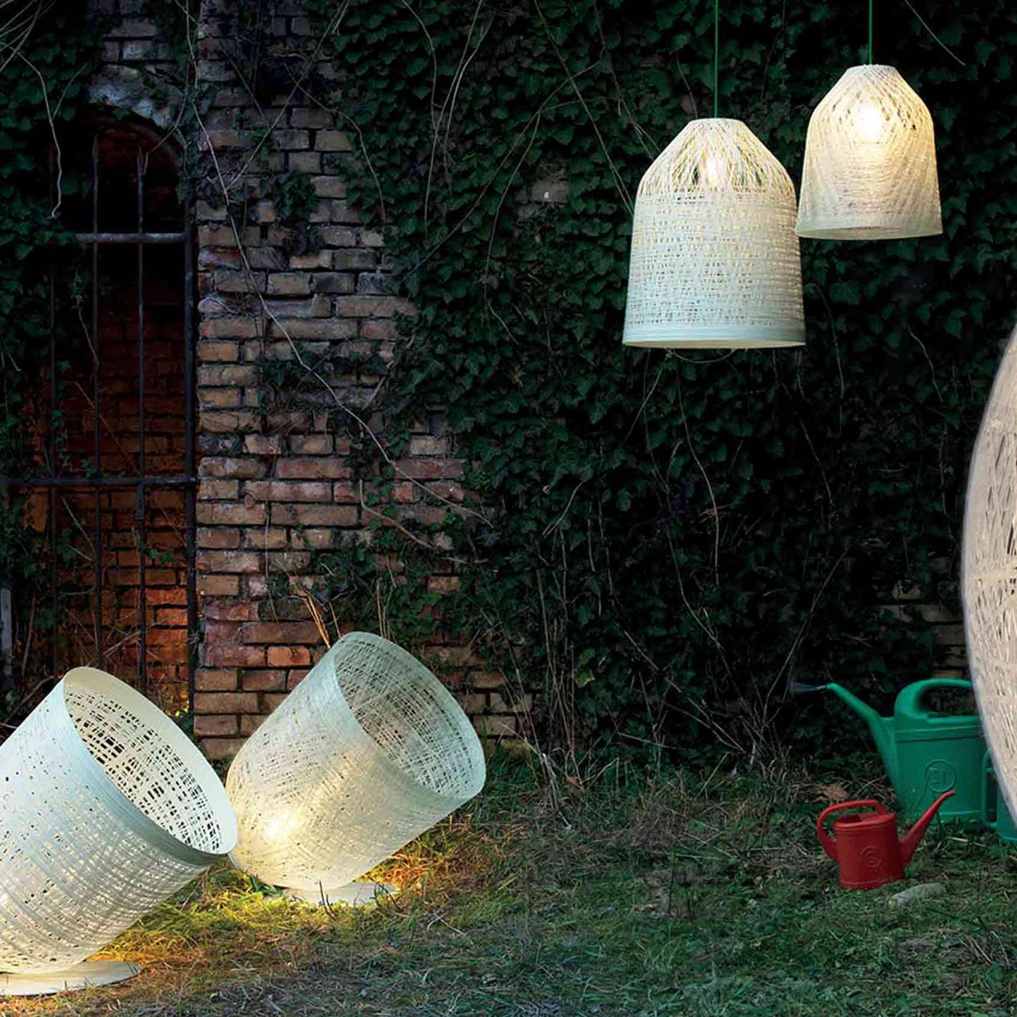 Swathed in fiberglass strands, the bell shape shade of the Black Out Outdoor LED Pendant Light from Karman provides an environment with global, tropical-inspired influences. The textured glowing pendant suspends gracefully above an outdoor living area, providing the perfect amount of ambience.
