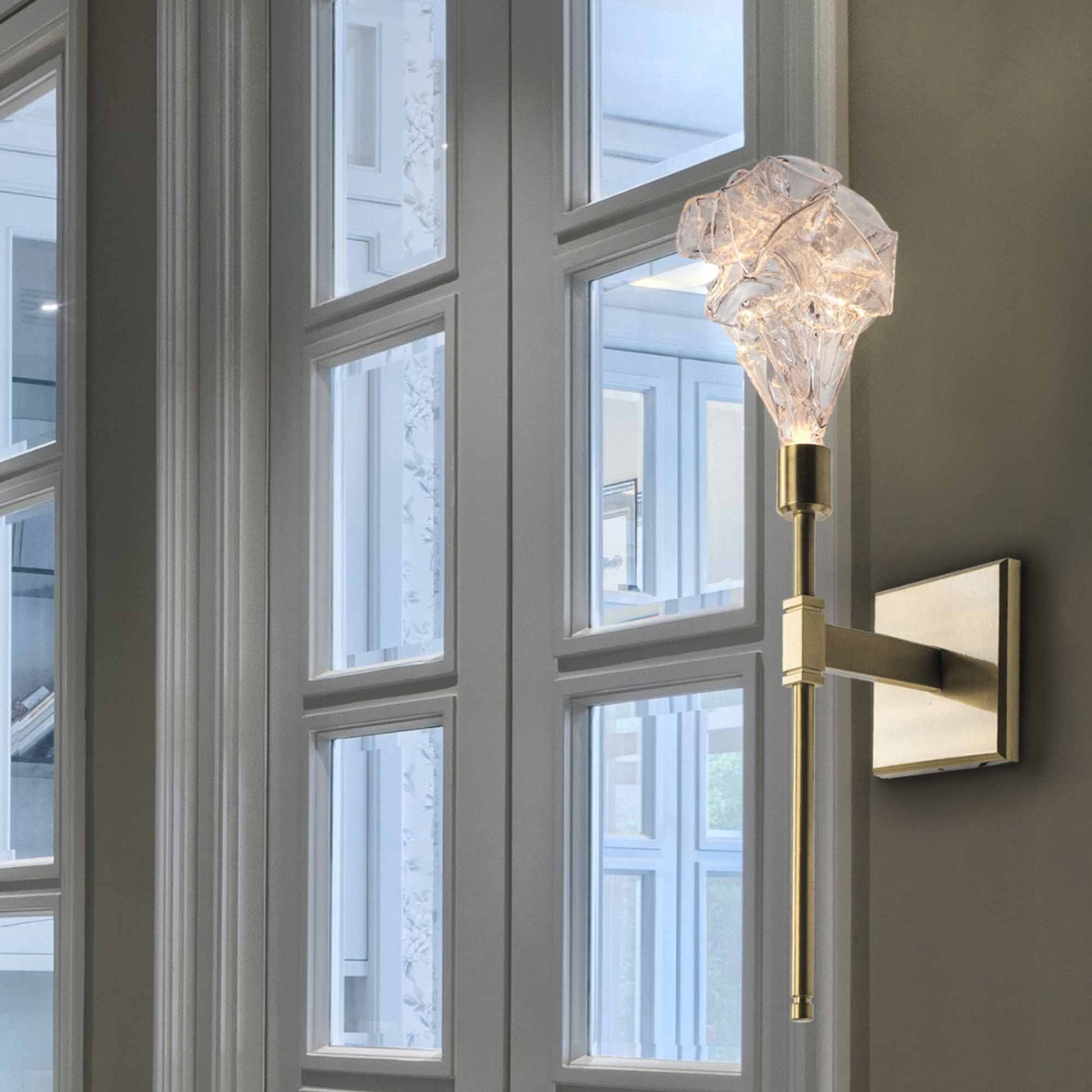 Uncomplicated yet abstract, the Blossom Belvedere LED Wall Light from Hammerton Studio offers a frosty aesthetic with fine art character. Infuse energy-saving accent lighting with this fixture featuring hand-blown clear glass and an assortment of metal metal finishes.