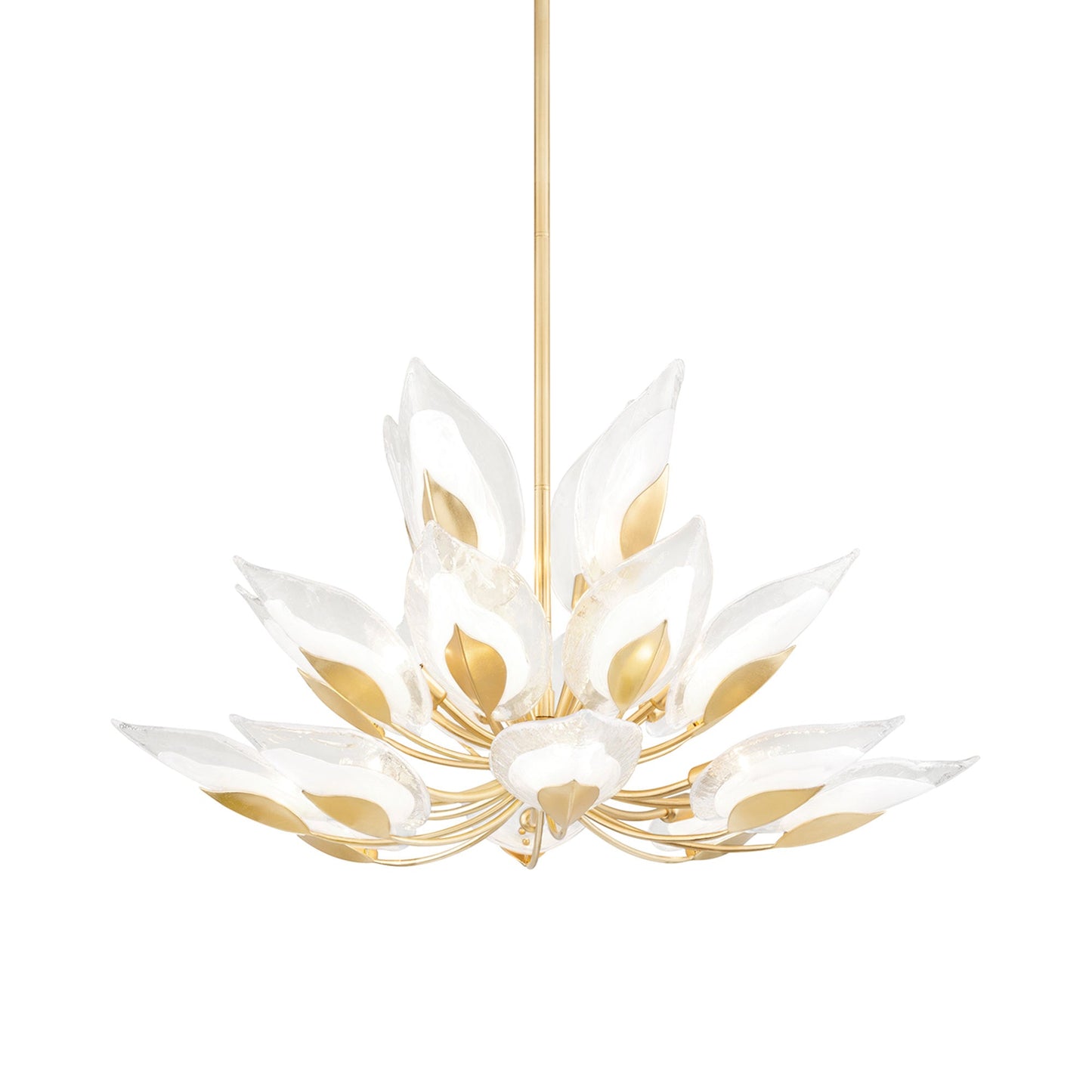 Artisanal Piastra glass is hand-crafted to bring exceptional elegance and sparkling sophistication to the Blossom Chandelier from Hudson Valley Lighting.