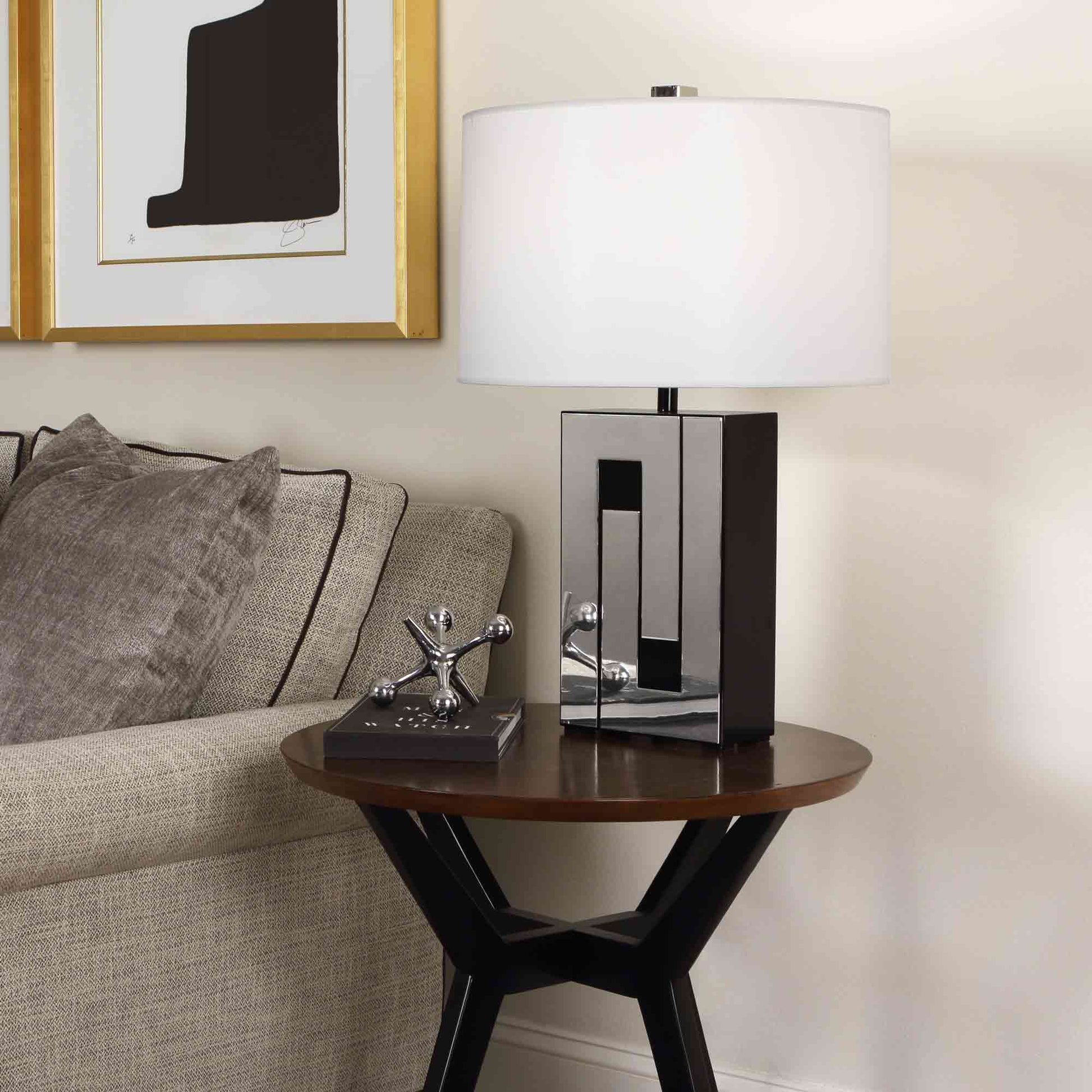 The best in contemporary verve shapes a linear silhouette with glam materials and finishes, turning the Blox Table Lamp from Robert Abbey into a primary décor element that also adds ambient lighting to a custom space.