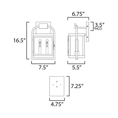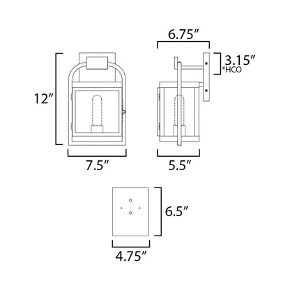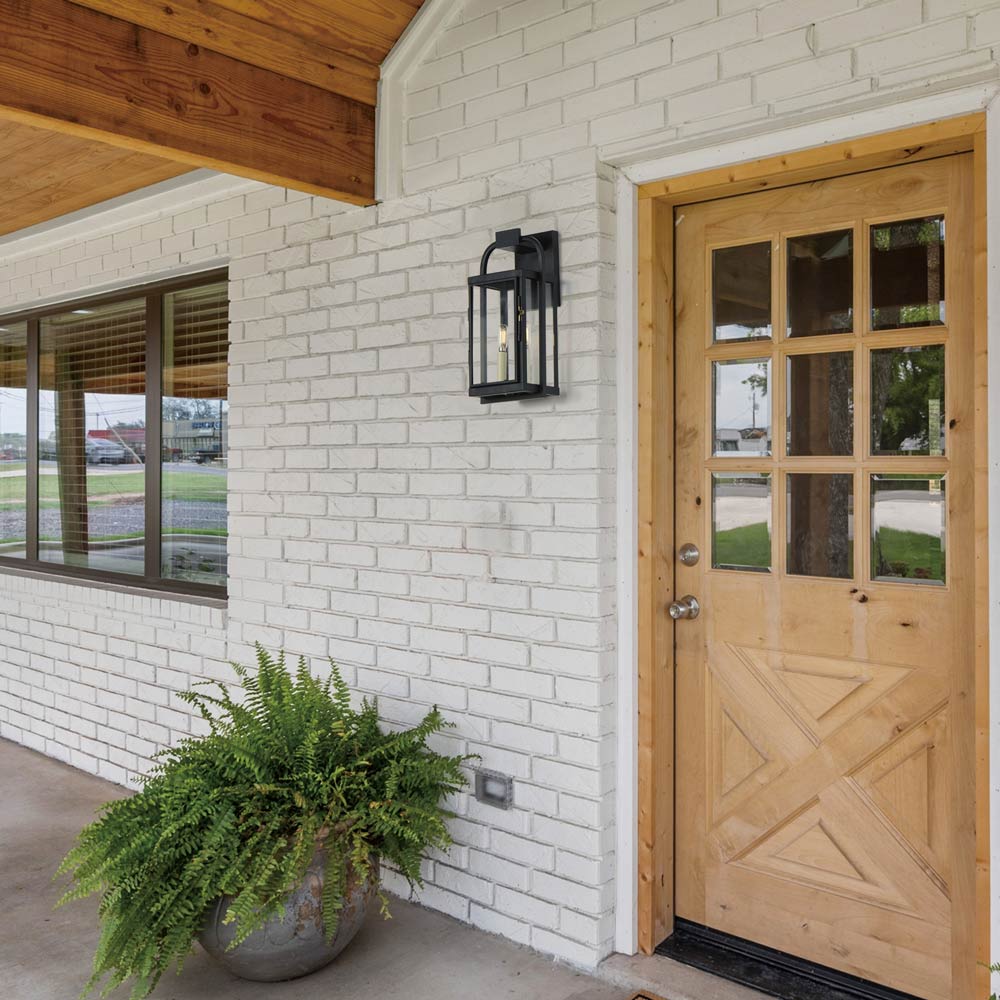 Cage-inspired energy introduces a nuanced look in exterior lighting. The Bonham Outdoor Wall Light from Maxim Lighting mimics a classic lantern design with a boxy frame fashioned of black finish steel and aluminum. Charming light holders sit within glass panels worked into a box that opens for easy bulb changes.