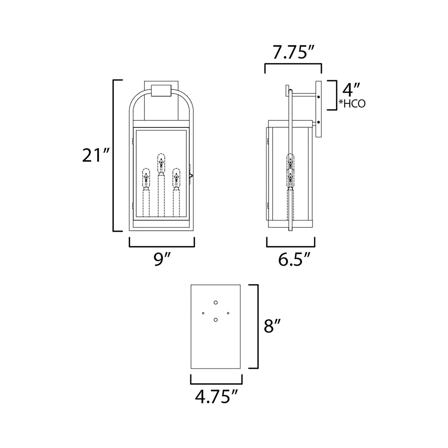 - 21-Inch: 9"W X 21"H; 7.75" Extension