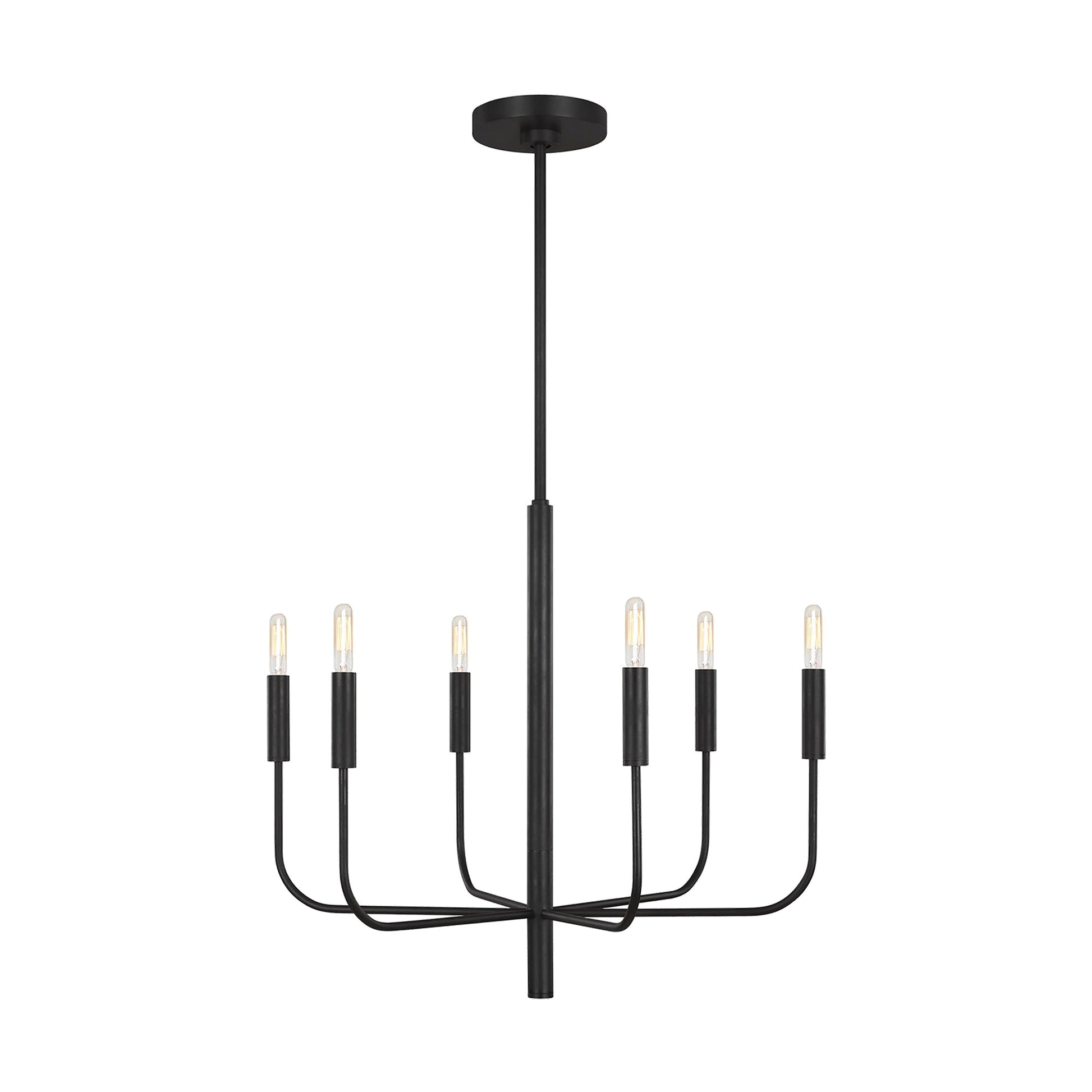 Slim lights evoke the candles that decorated classic chandeliers while adding a modern update to the Brianna Chandelier from Visual Comfort Studio.