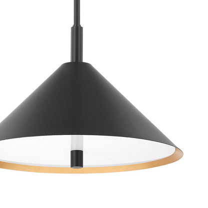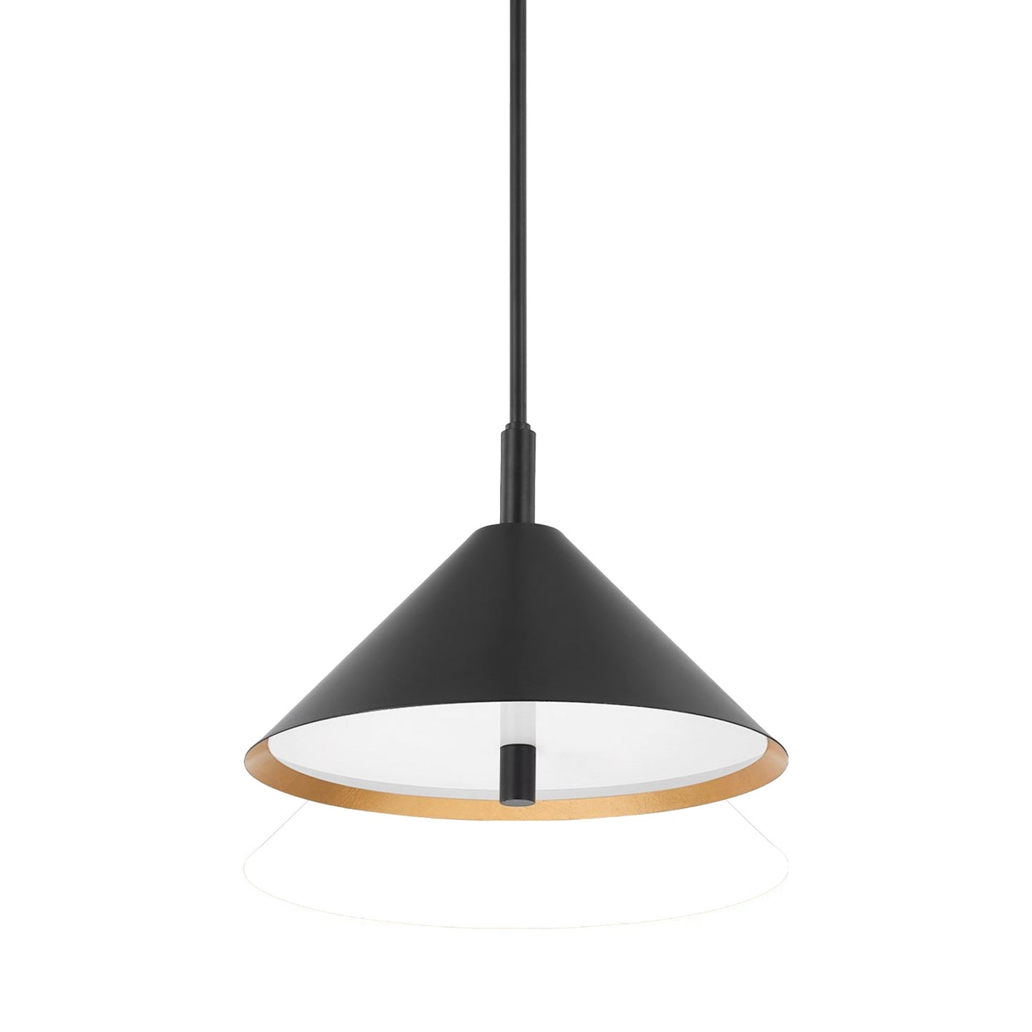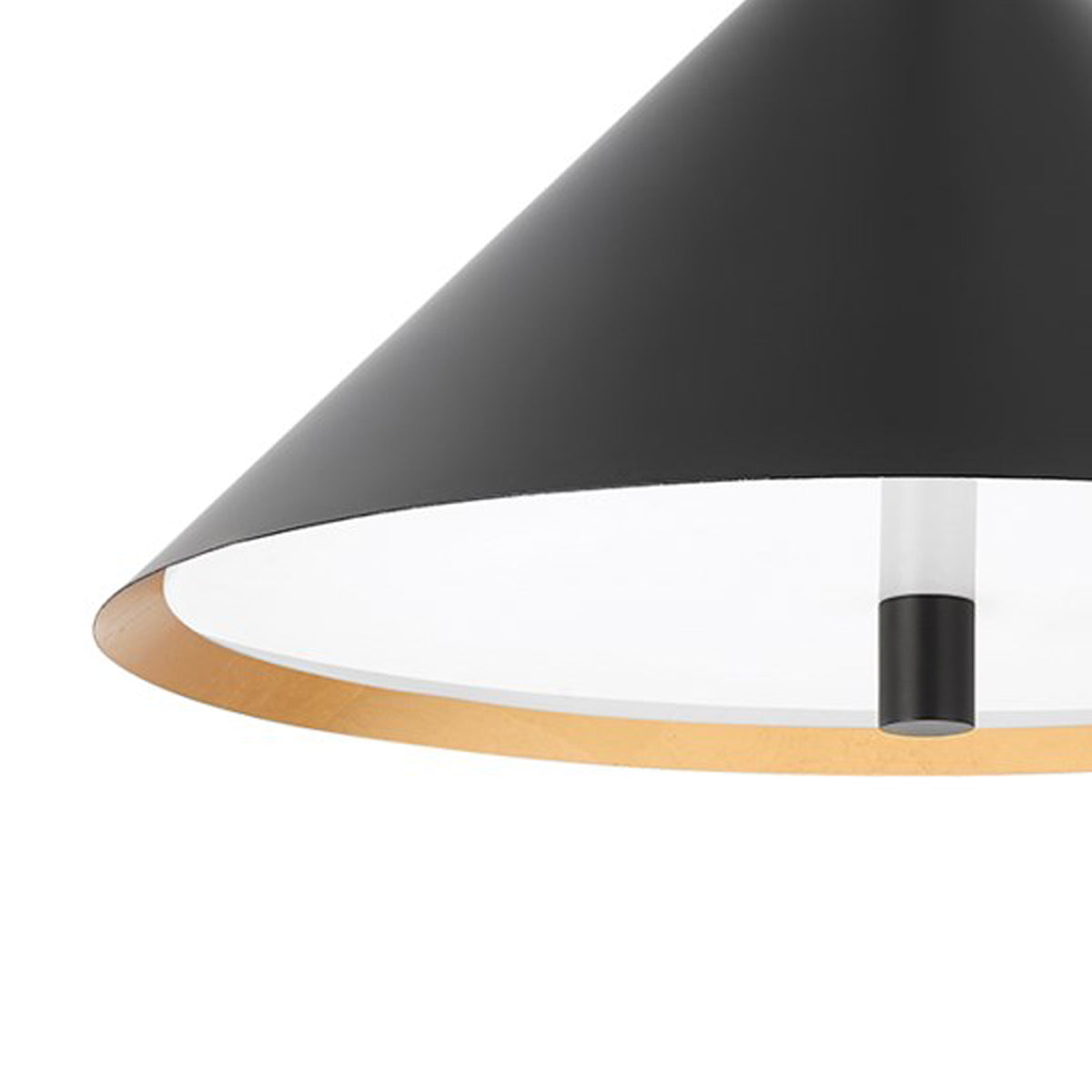 The Brianna Pendant Light from Mitzi repurposes a treasured retro vibe with a compelling conical silhouette and crisp, bold contrast of finishes. This updated fixture tells a story of casual living and offers a blend of metals with soft black and gold leaf finishes, creating ultimate versatility while sending ambient lighting through an opaque diffuser.